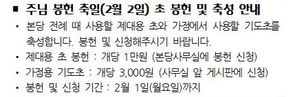 주님봉헌축일(2월2일) 초 봉헌 및 축성 안내