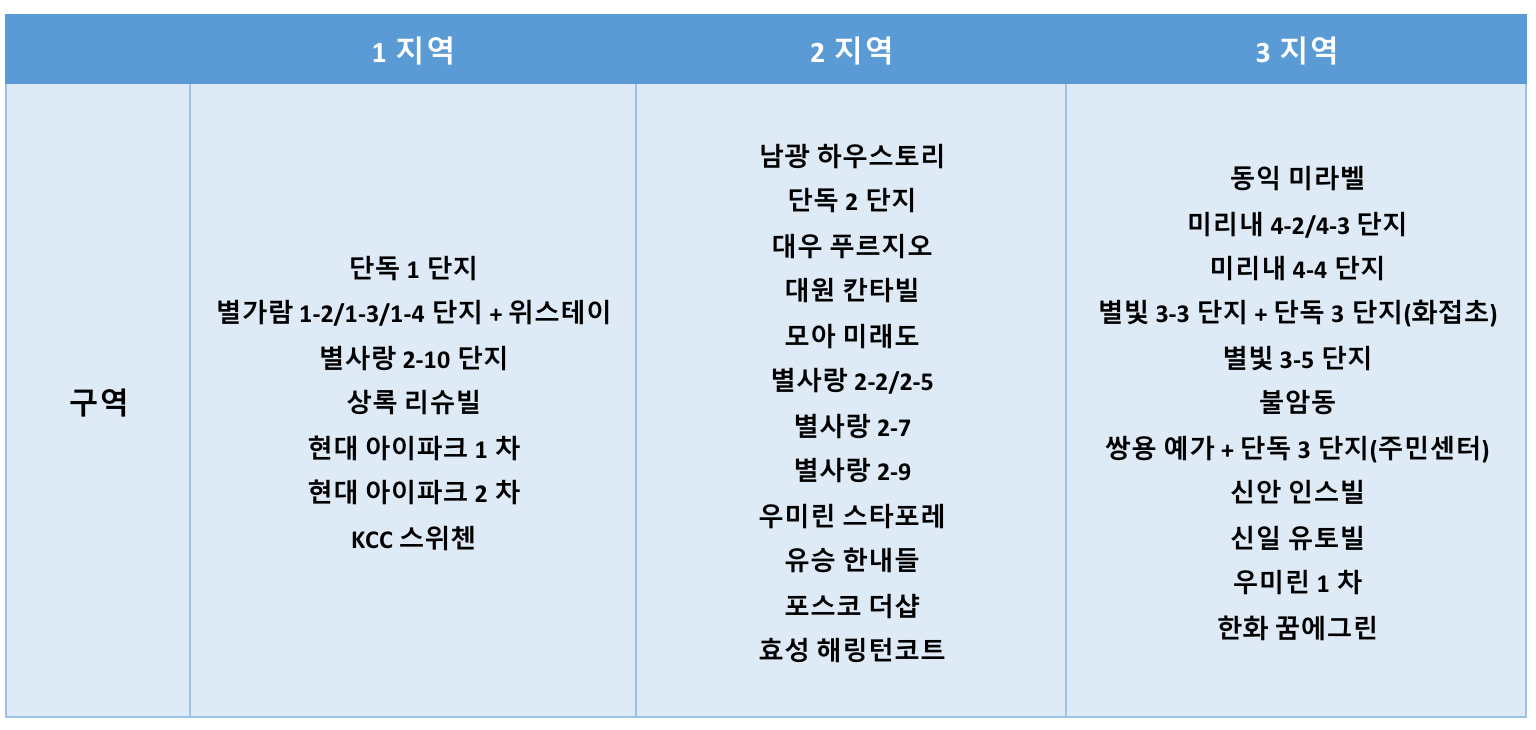 본당 지역과 구역(3개 지역, 30개 구역, 89개 반)