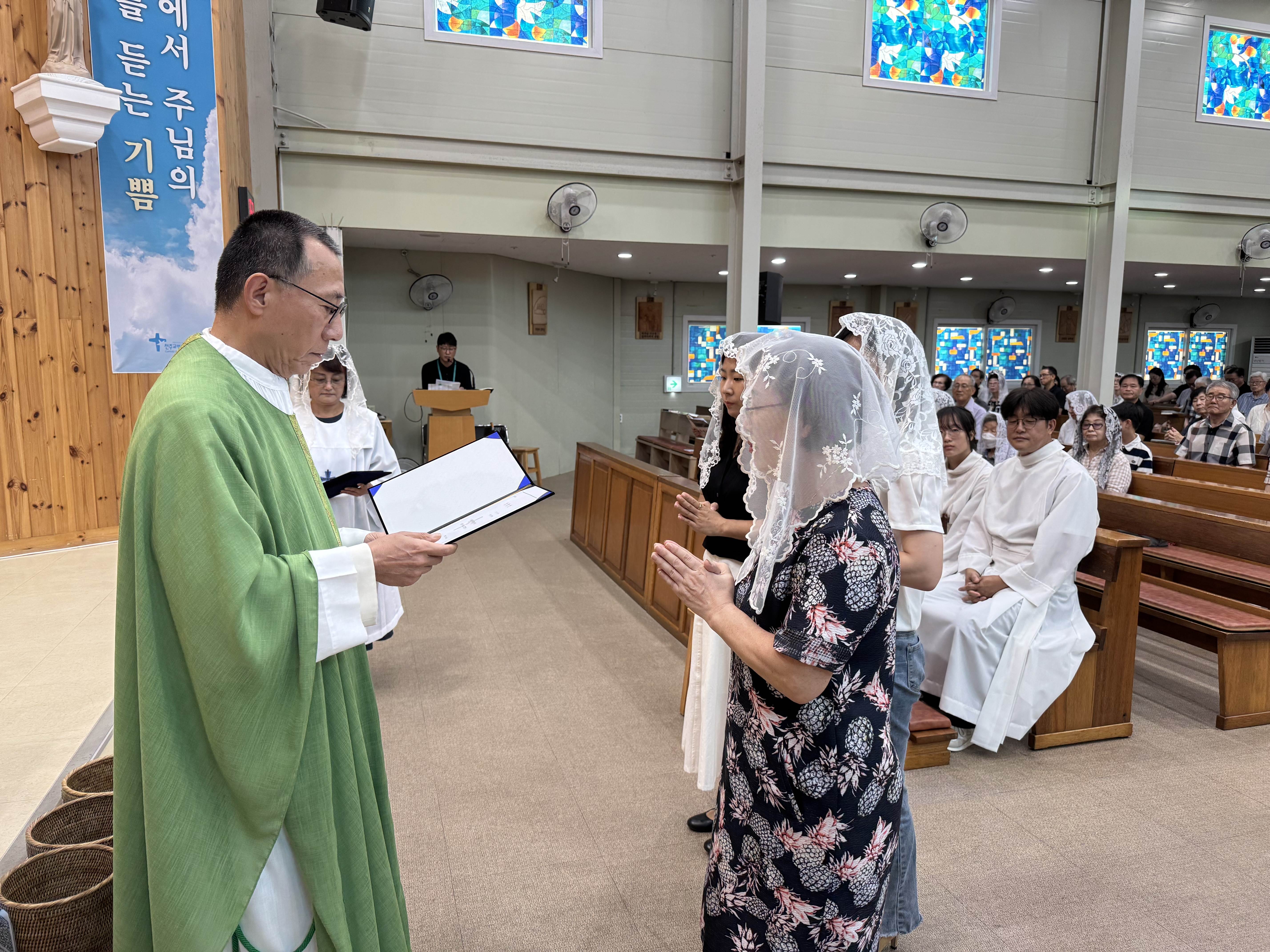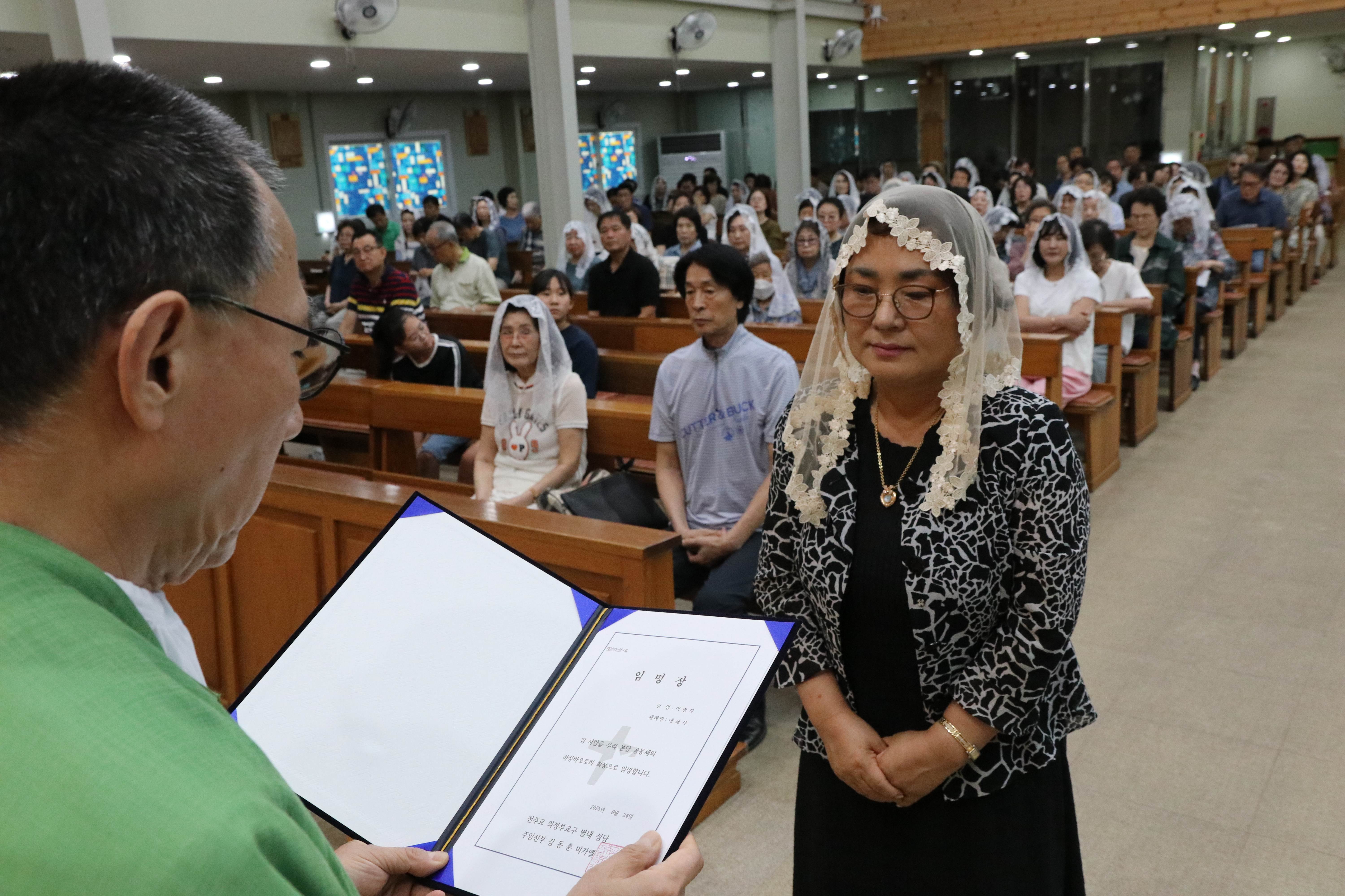 주임 신부님께서 임명장을 수여 하시면서 맡은바 소임을 다해 달라고 부탁하셨습니다.