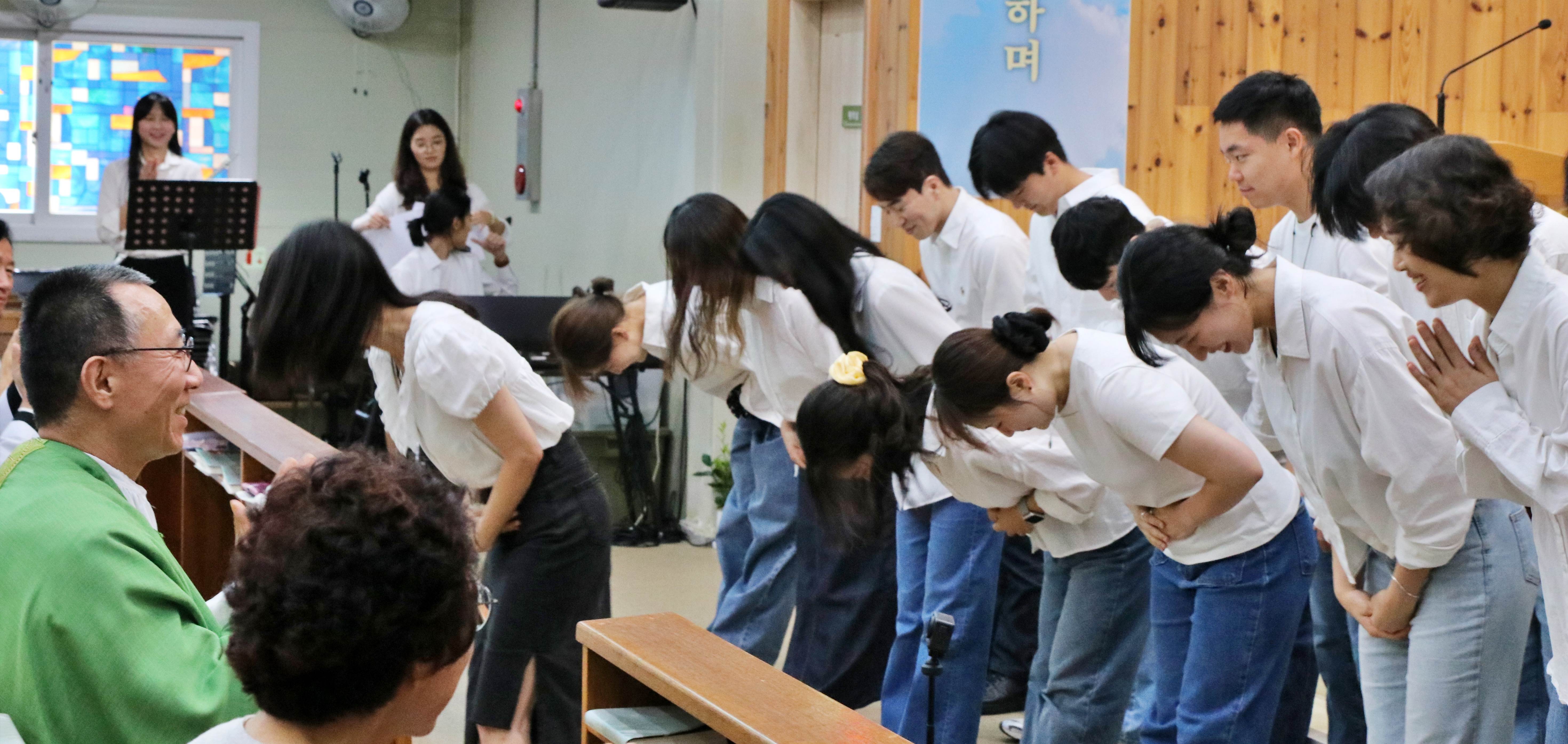 제일 아쉬워하는 어린이와 청소년들은 주임신부님 밉다고 울먹였습니다.