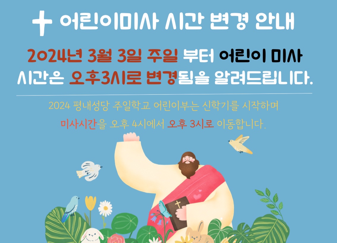 어린이 , 청년 미사 시간 변경 안내(2024.3.3 ~)