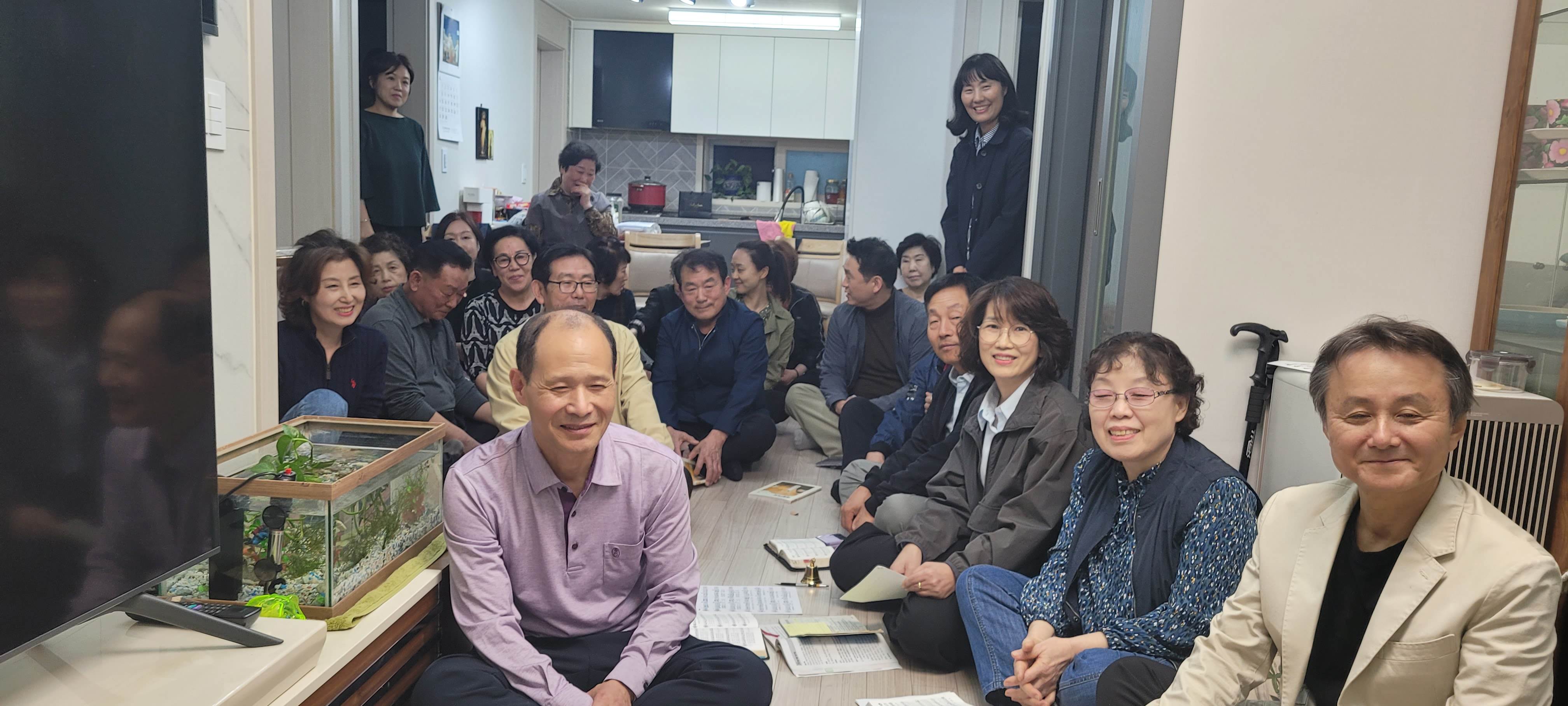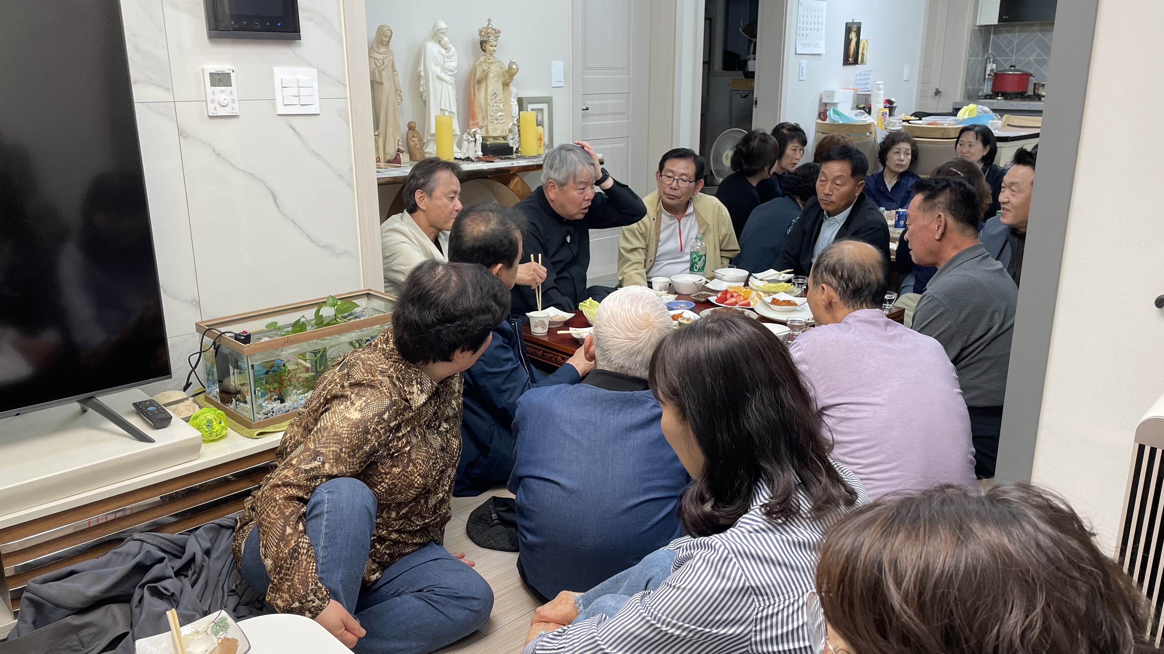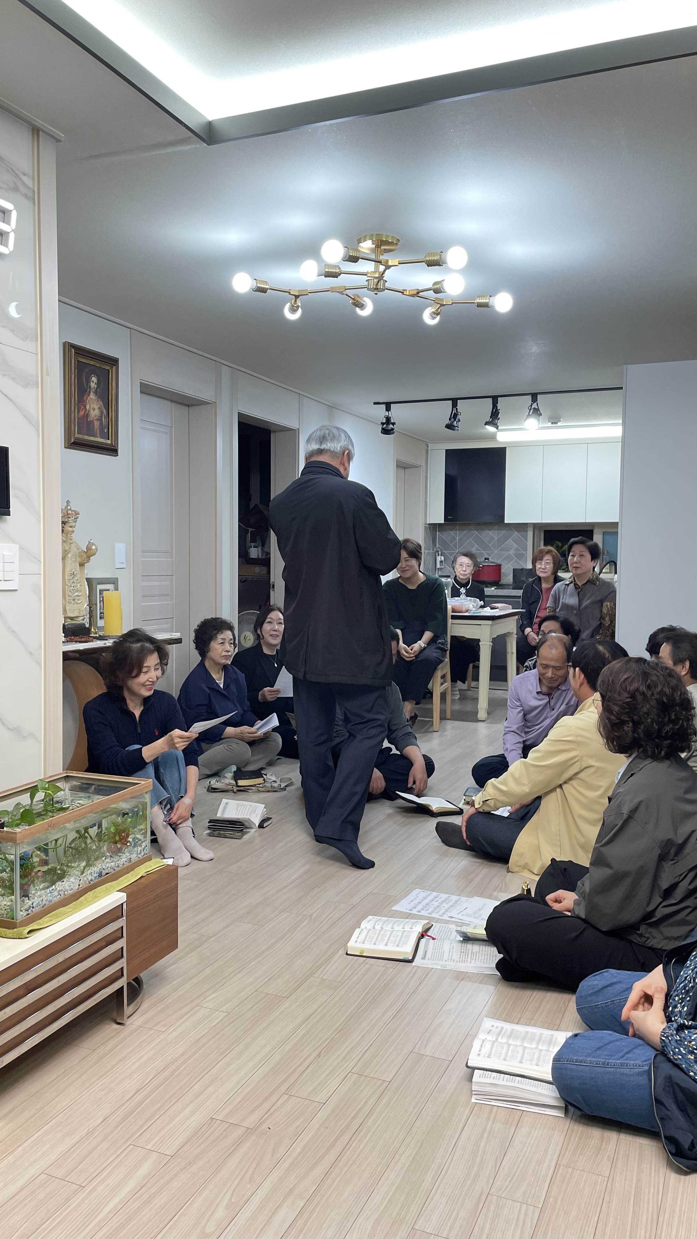 2019년 6구역으로 시작되었던 구역 미사가 코로나로 한 구역만 진행되고 중단되어 너무나도 아쉬웠었는데, 2024년 새로 다시 시작되었습니다. 1구역 레아 구역장님 댁에 다들 모이셨네요. 28분이나 옹기종기(?) 모여서 친밀한 미사와 더불어, 직접 만드신 김밥과 수육, 도토리묵 등 맛있는 음식도 나누셨다고 합니다. 모인 김에 성가대회에서 부를 성가도 연습하셨다고 하네요 ^^. 즐거운 시간 보내셨네요. 다들 우리 구역 미사를 기다리실 법도 합니다. 이번에는 중단없이 잘 진행되기를 바랍니다.