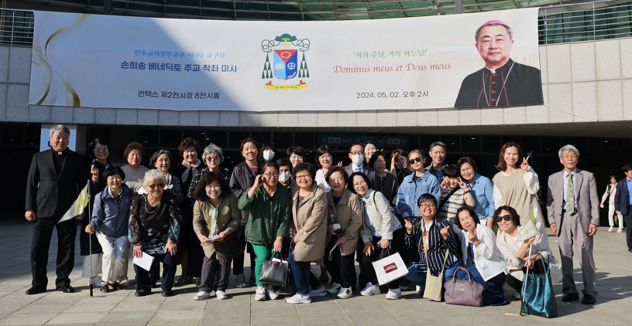 새 교구장으로 임명되신 손희송 베네딕도 주교님의 교구장 착좌식에 우리 본당 교우들이 방문했습니다. 하느님의 부르심에 응답하신 주교님께 감사드리며 은총 가득한 시간을 보내고 오신 분들과 가지는 못했어도 집에서 회사에서 교구장님을 위해 그리고 우리 교구를 위해 기도했을 우리 신자 분들 모두 다시 한 번 교구장님을 위해 기도해주십시요. 또한 오랜 시간동안 의정부교구장으로서 열심히 사목하신 이기헌 베드로 주교님을 위해서도 기도 부탁드립니다.