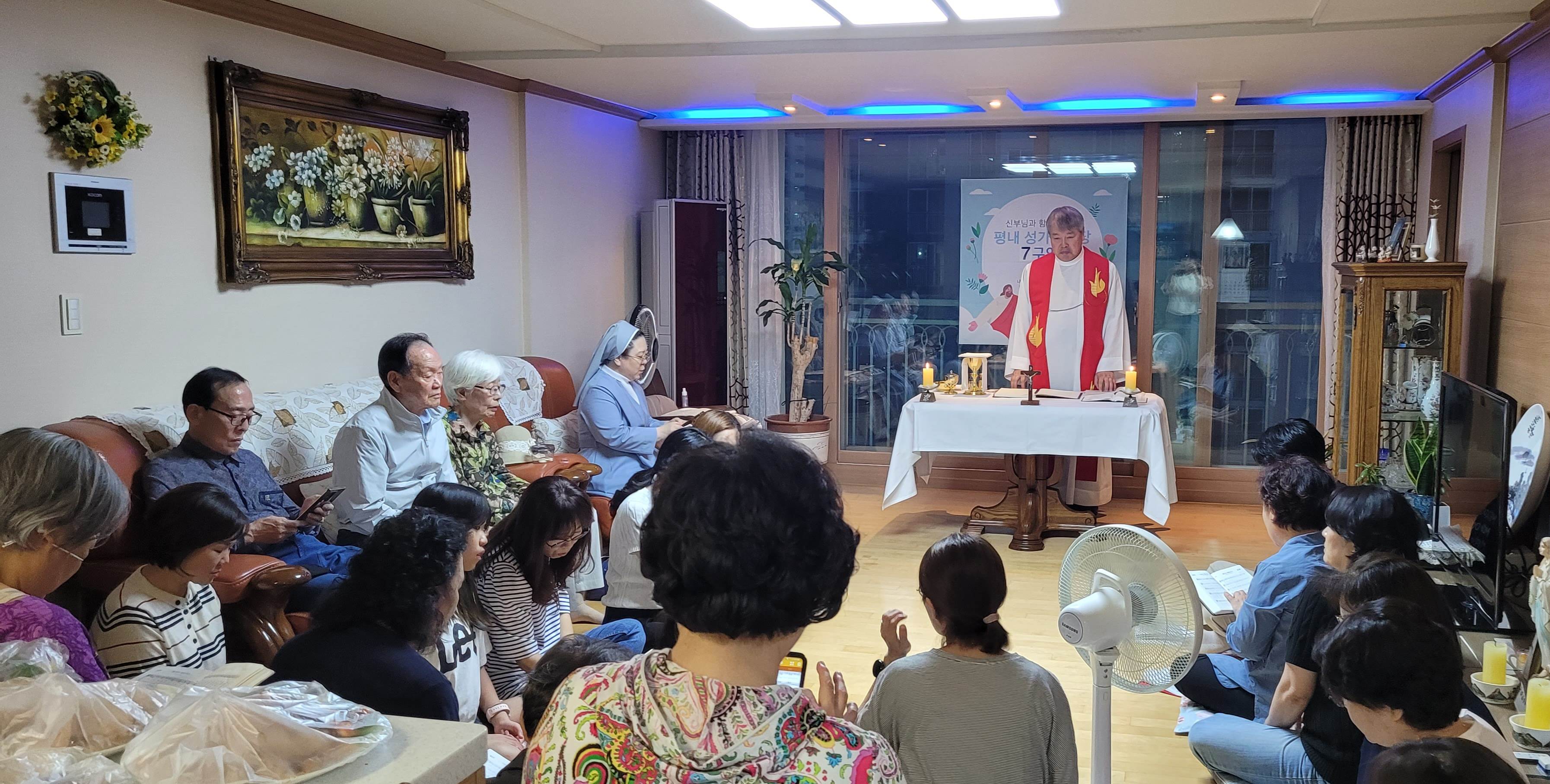 상록, 이편한세상아파트로 구성된 7구역 미사가 수요일 저녁에 있었습니다. 26분의 구역원이 모이셨네요. 얼마 전 70세 이상 구역장 반장님들 시상식때 뵈었던 구역장님이 피아노 반주까지 하셨네요 짝짝짝! 멋지십니다~^^ 처음 뵙는 분들도 많이 보이는 7구역에서 많은 봉사자 분들이 나왔으면 좋겠습니다. 7구역 화이팅입니다!!!