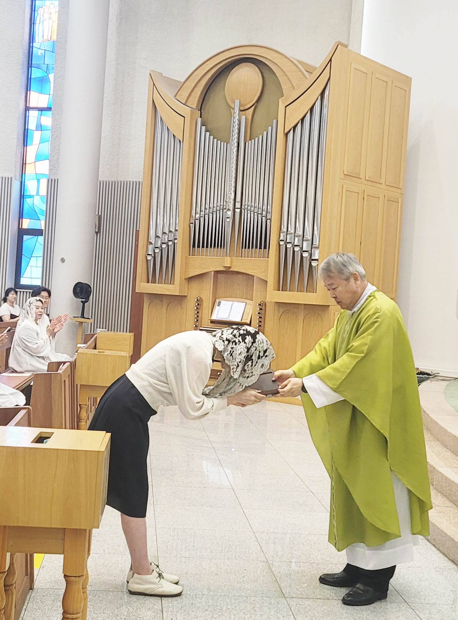 20여년간 평내본당 공동체를 위하여 일하여주신 김 마리아 막달레나 사무장님 감사패 전달식 및 난민활동가 두 분의 수료증 전달식이 있었습니다. 한 본당에서 꾸준히 일하는 것이 쉽지 않으셨을텐데, 긴 시간동안 함께 하시며 본당 신축도 함께 하시고, 모든 희노애락을 함께 하며 애 많이 쓰신 마리아 사무장님께 깊은 감사를 드립니다.