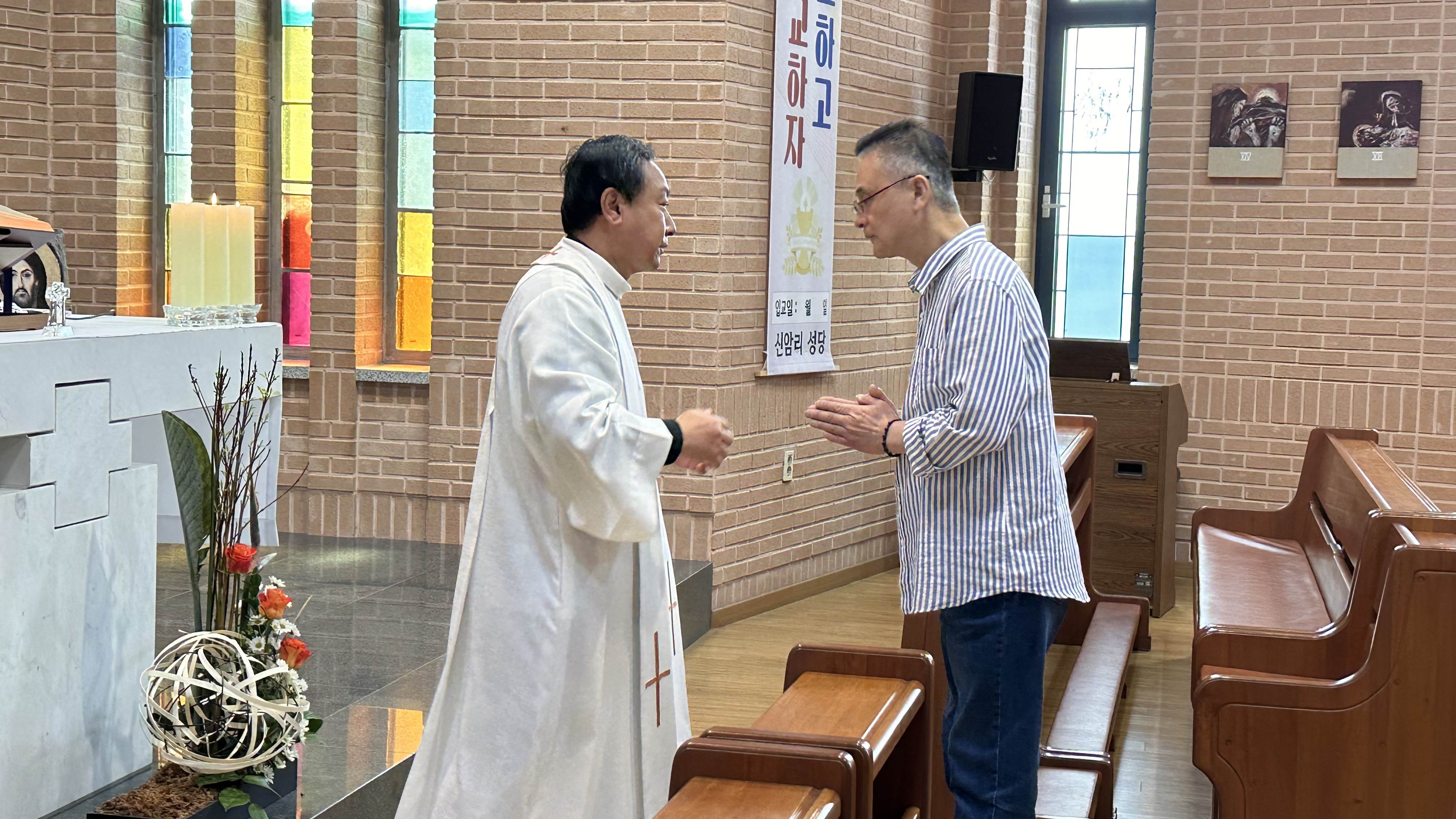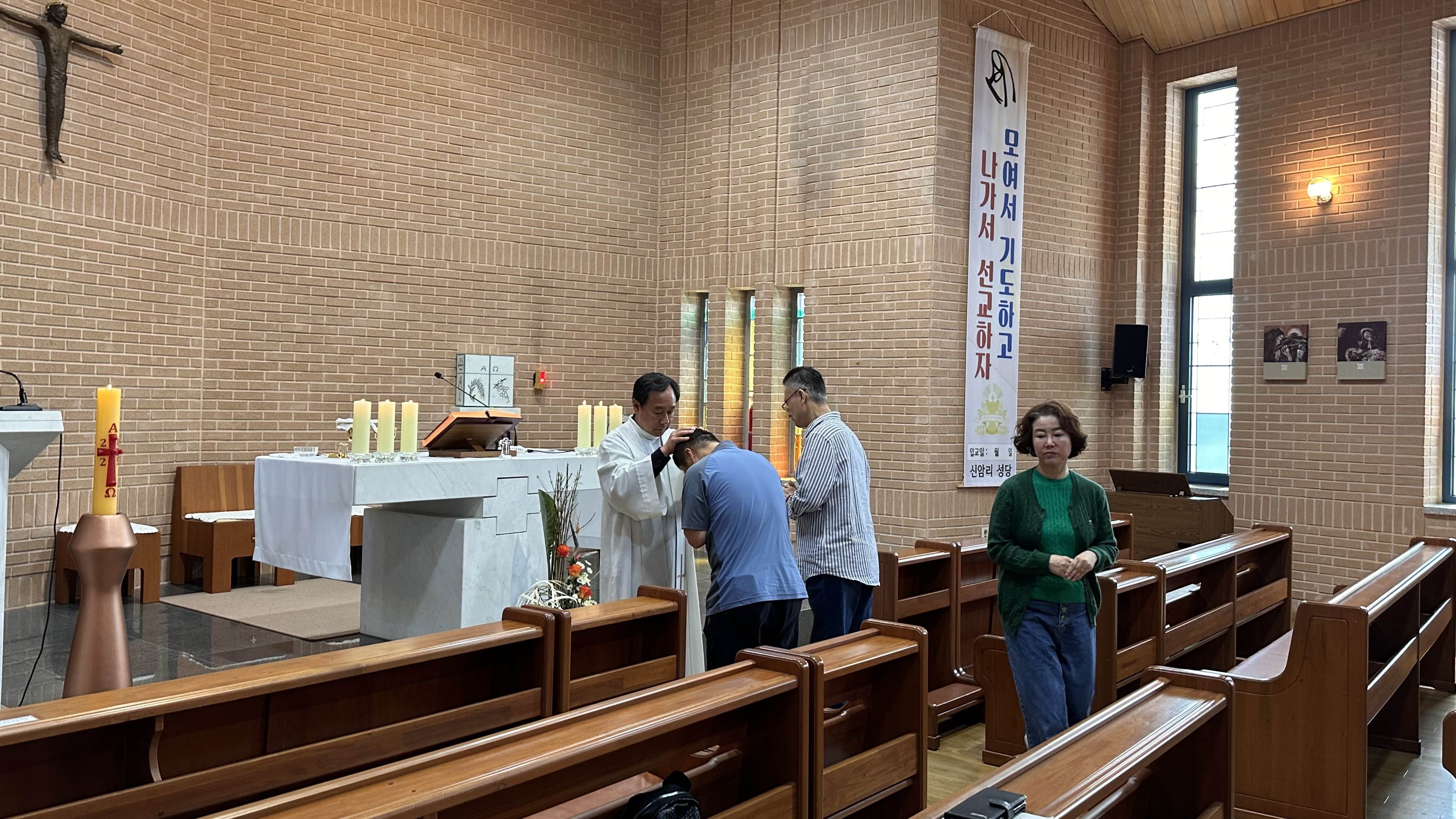 작고 아담한 성당으로 미사 후에는 주임 신부님께서 순례자 안수로 축복해 주셨습니다.