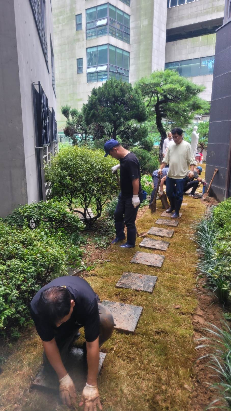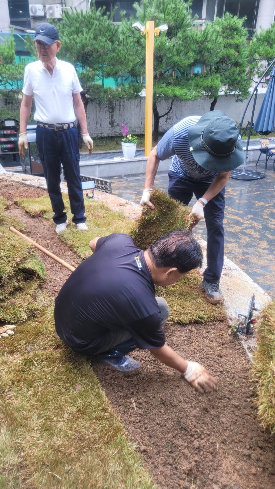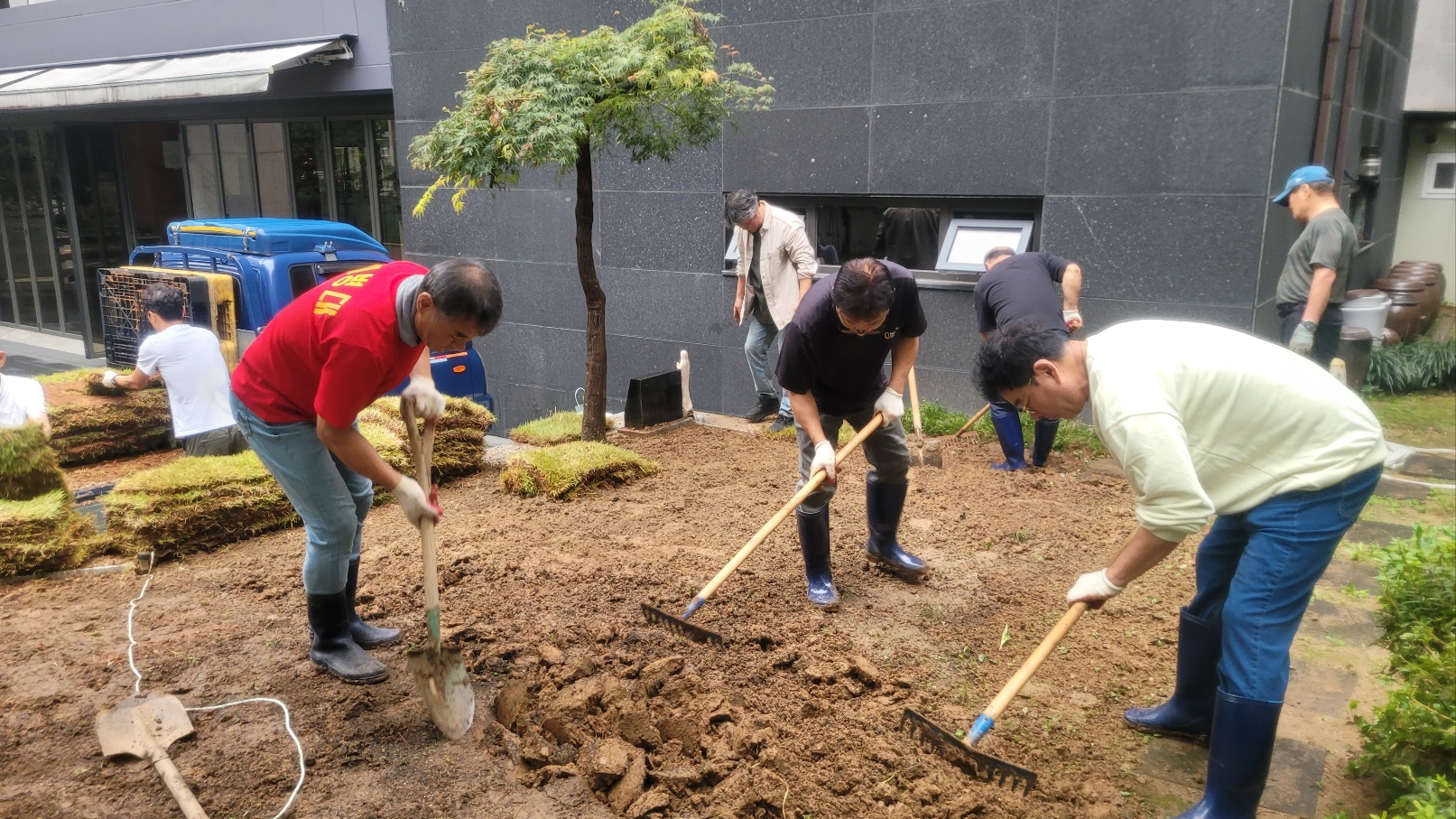 아침부터 정성껏 준비해 오신 도구와 장비로 흙을 고르고 잔디를 옮겨 심는 과정이 이어졌습니다. 손이 많이 가는 작업이었지만 서로 도우며 즐겁게 협력하는 모습 속에서 공동체의 따뜻한 정을 느낄 수 있었습니다.