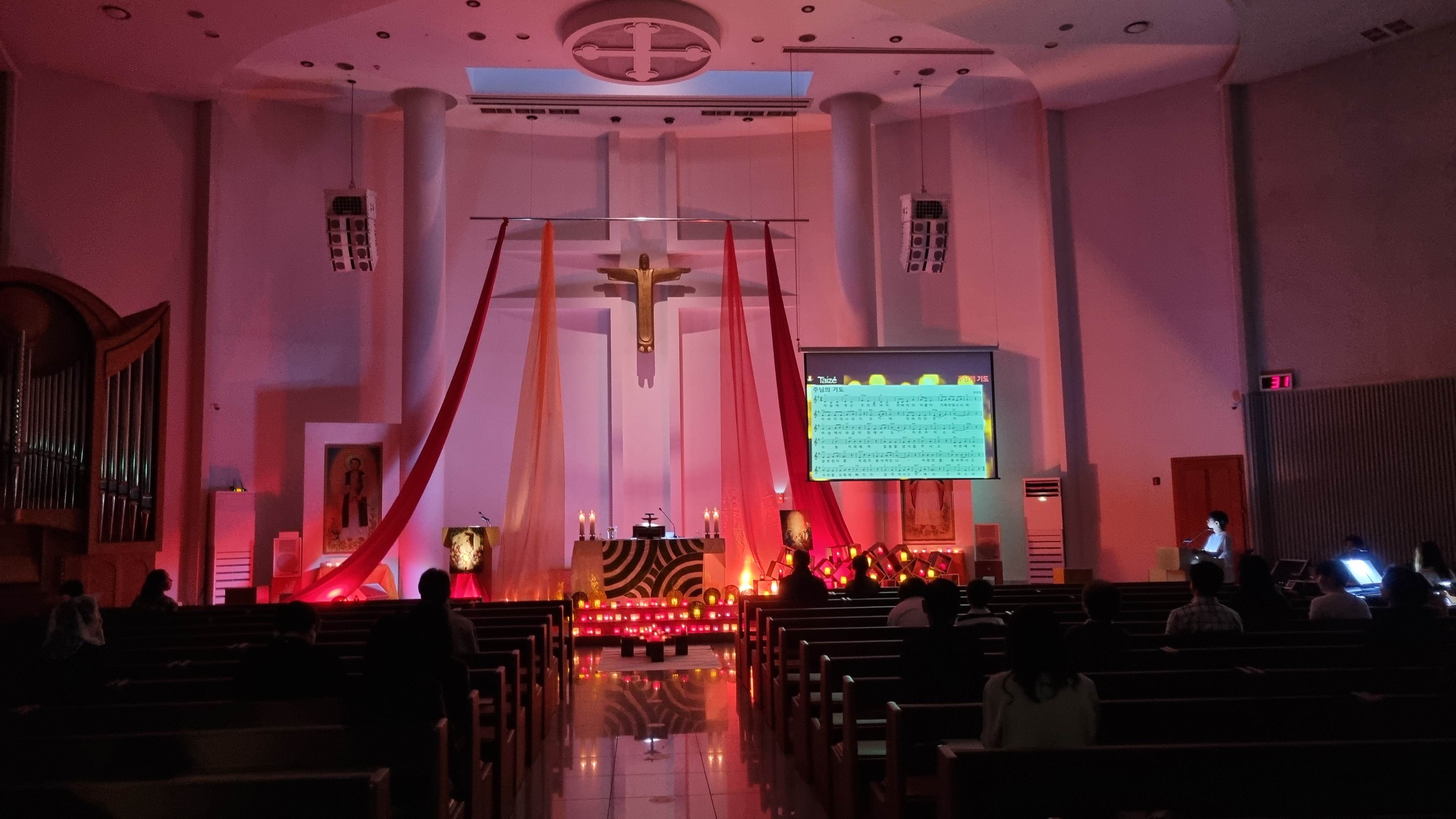 본당에서는 매월 둘째 주 18시 청년 미사에 떼제곡으로 봉헌하는 미사를 합니다.