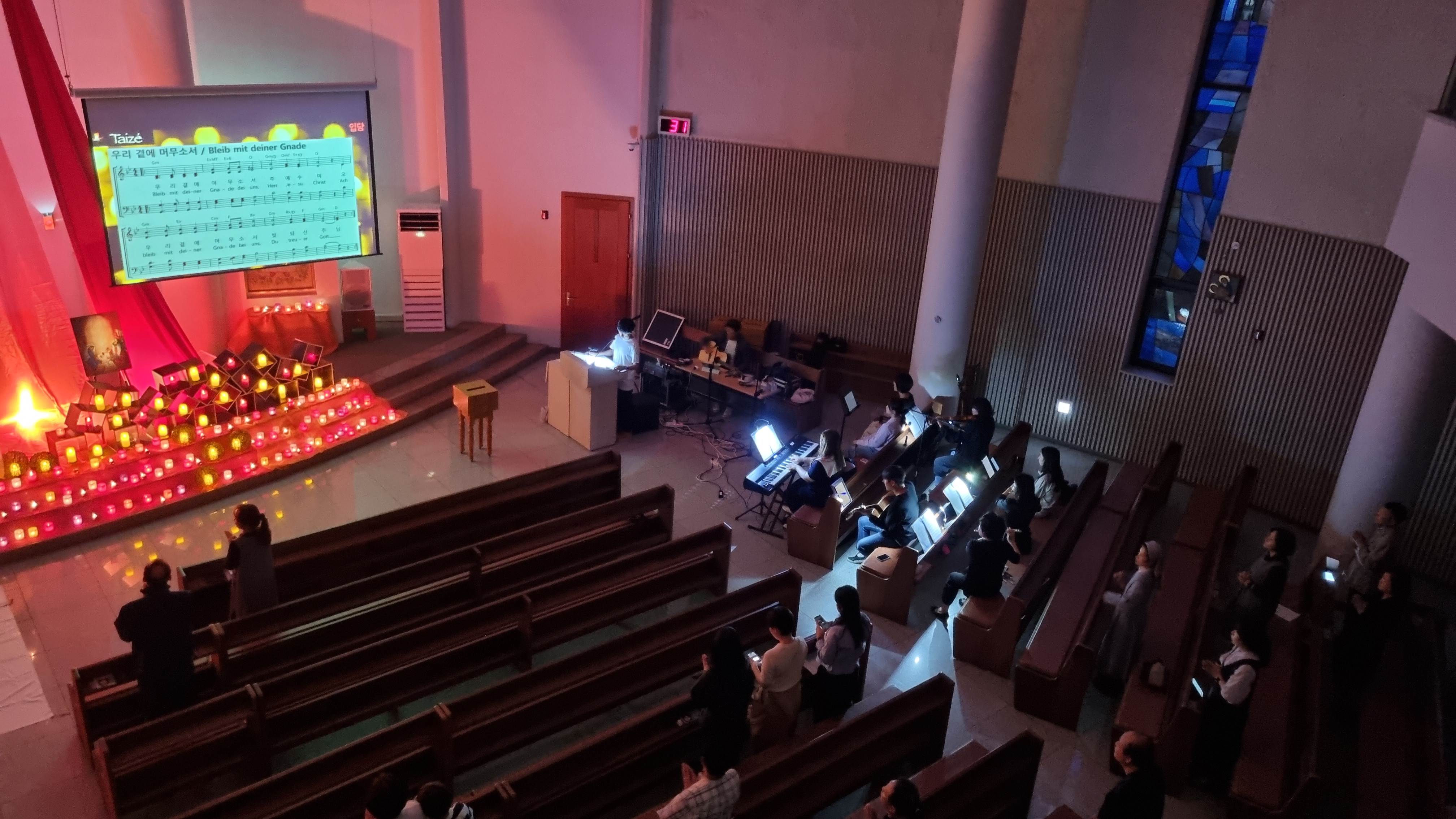 떼제곡 반주단과 제대 꾸미는 수고로음을 통하여 참으로 감동적이고 아름다운 미사를 봉헌할 수 있었습니다.