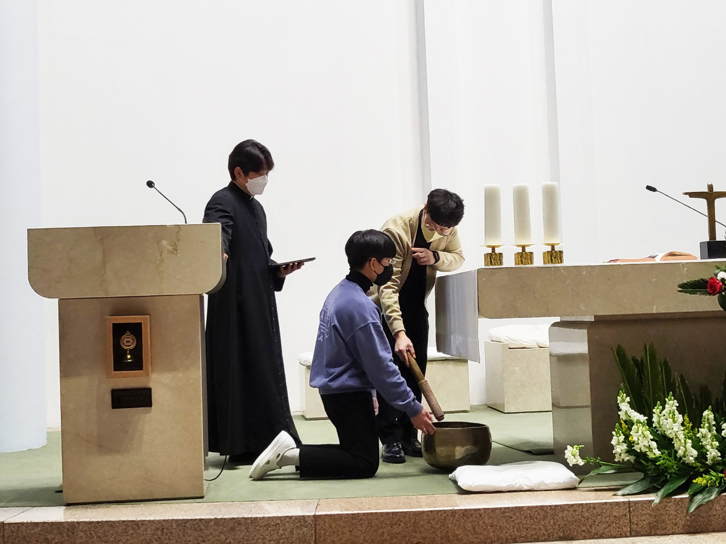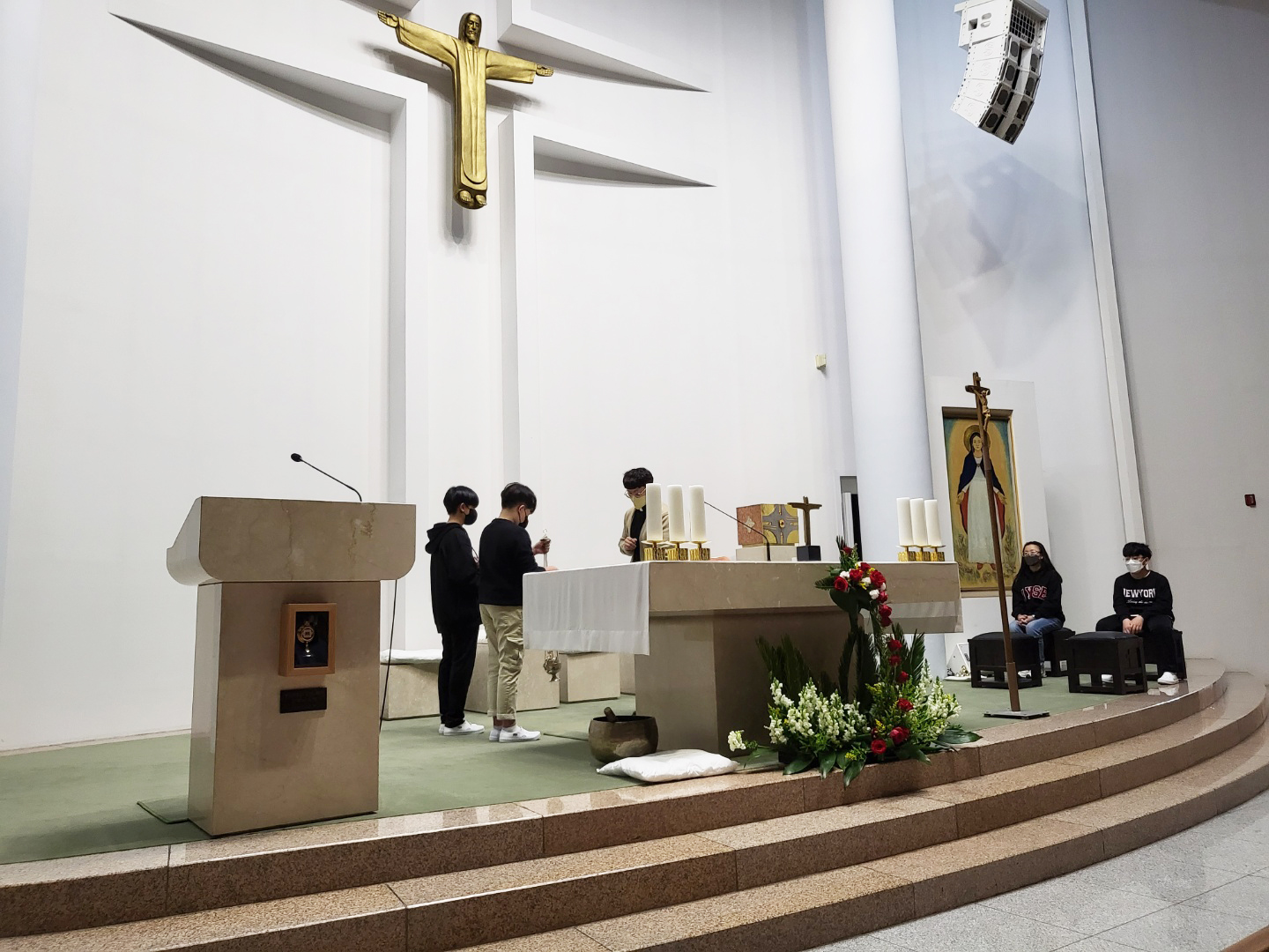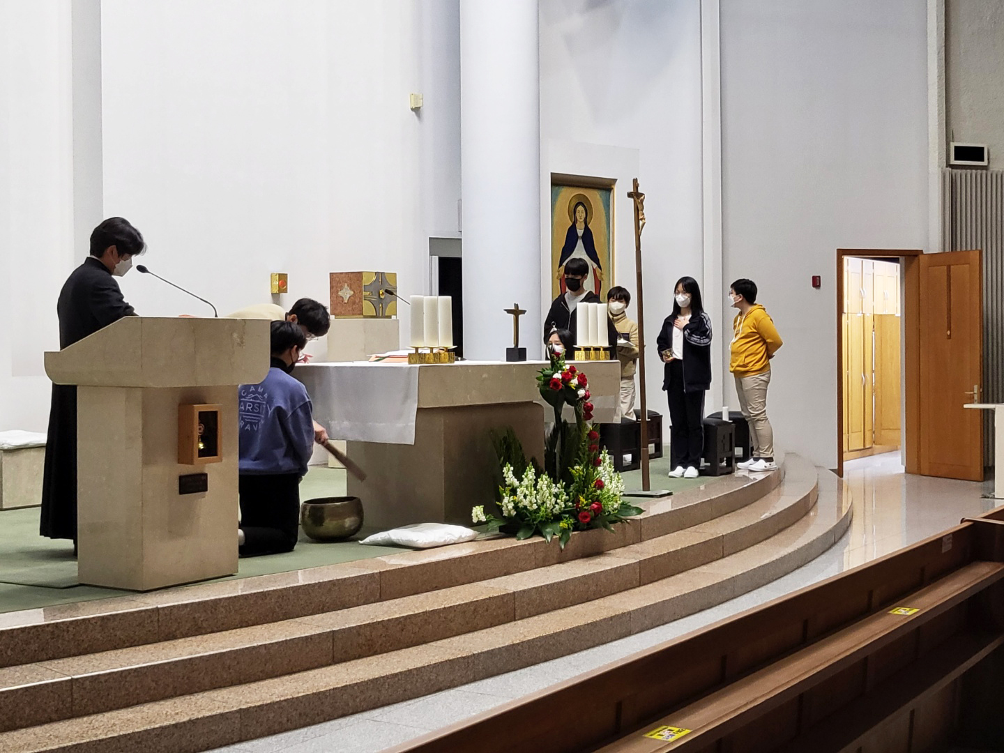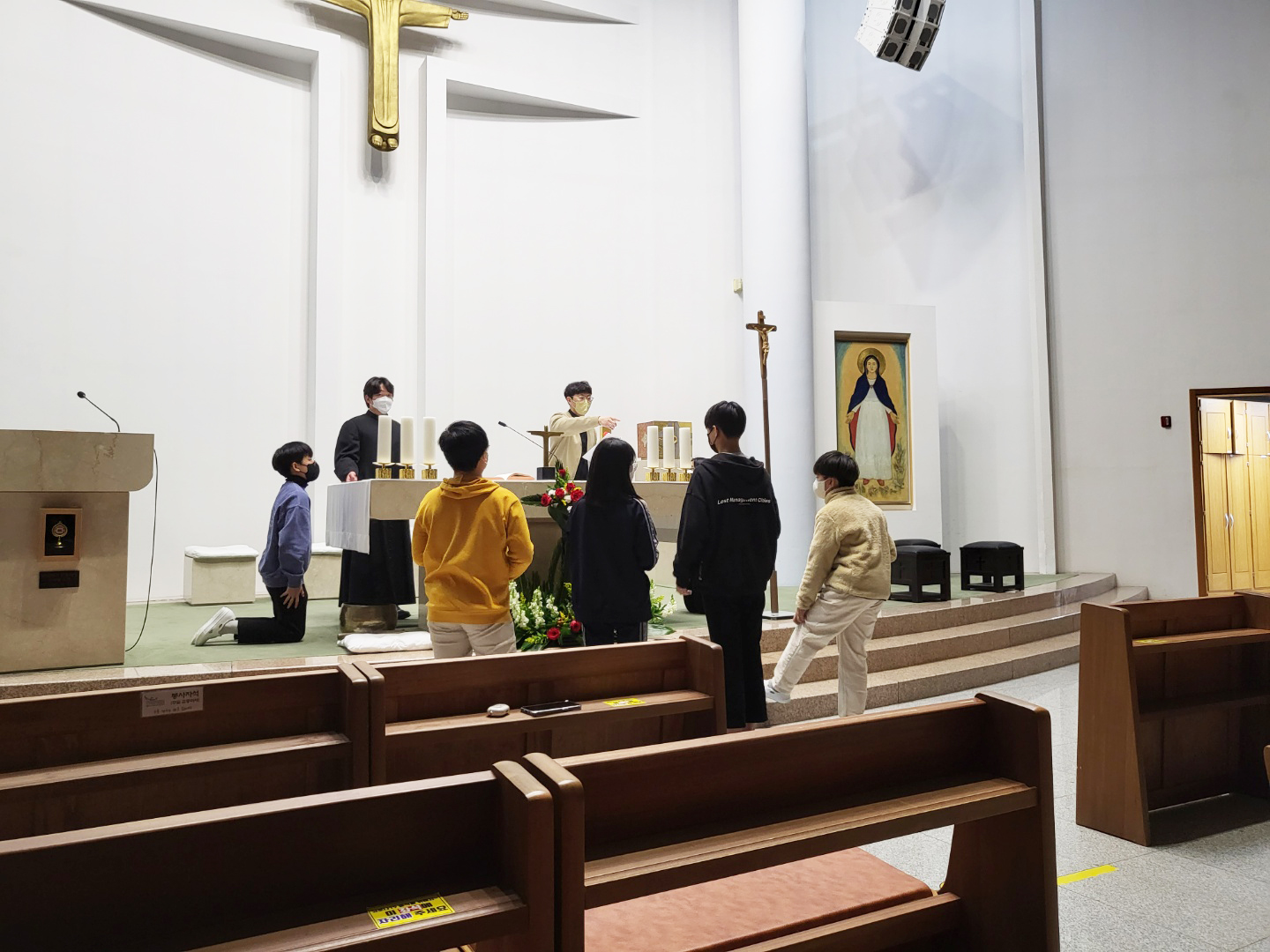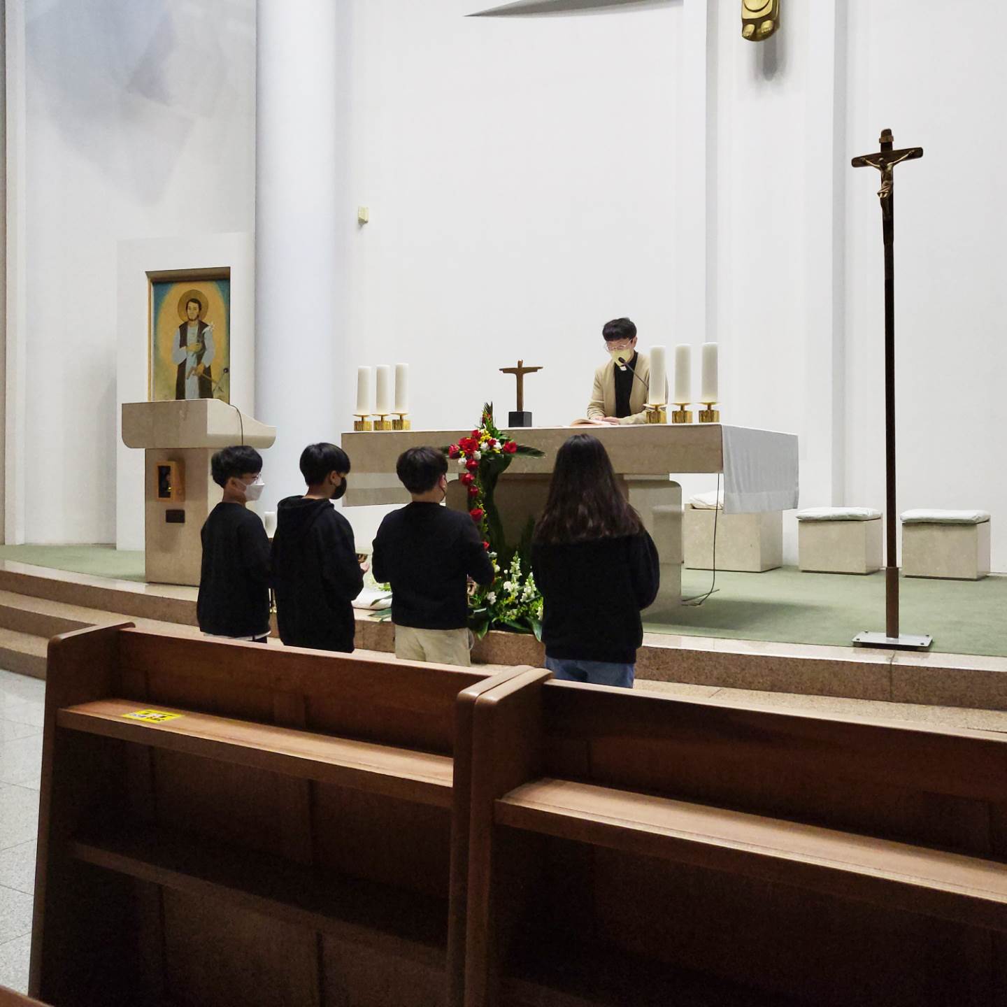 긴 코로나 기간동안 활동하지 못했던 복사단이 성주간과 부활 미사 준비를 위해 모였습니다. 긴 시간동안 하느님을 떠나지 않고 부르심에 다시 모여준 여러분에게 하느님의 은총이 더욱 가득하시길 빕니다.