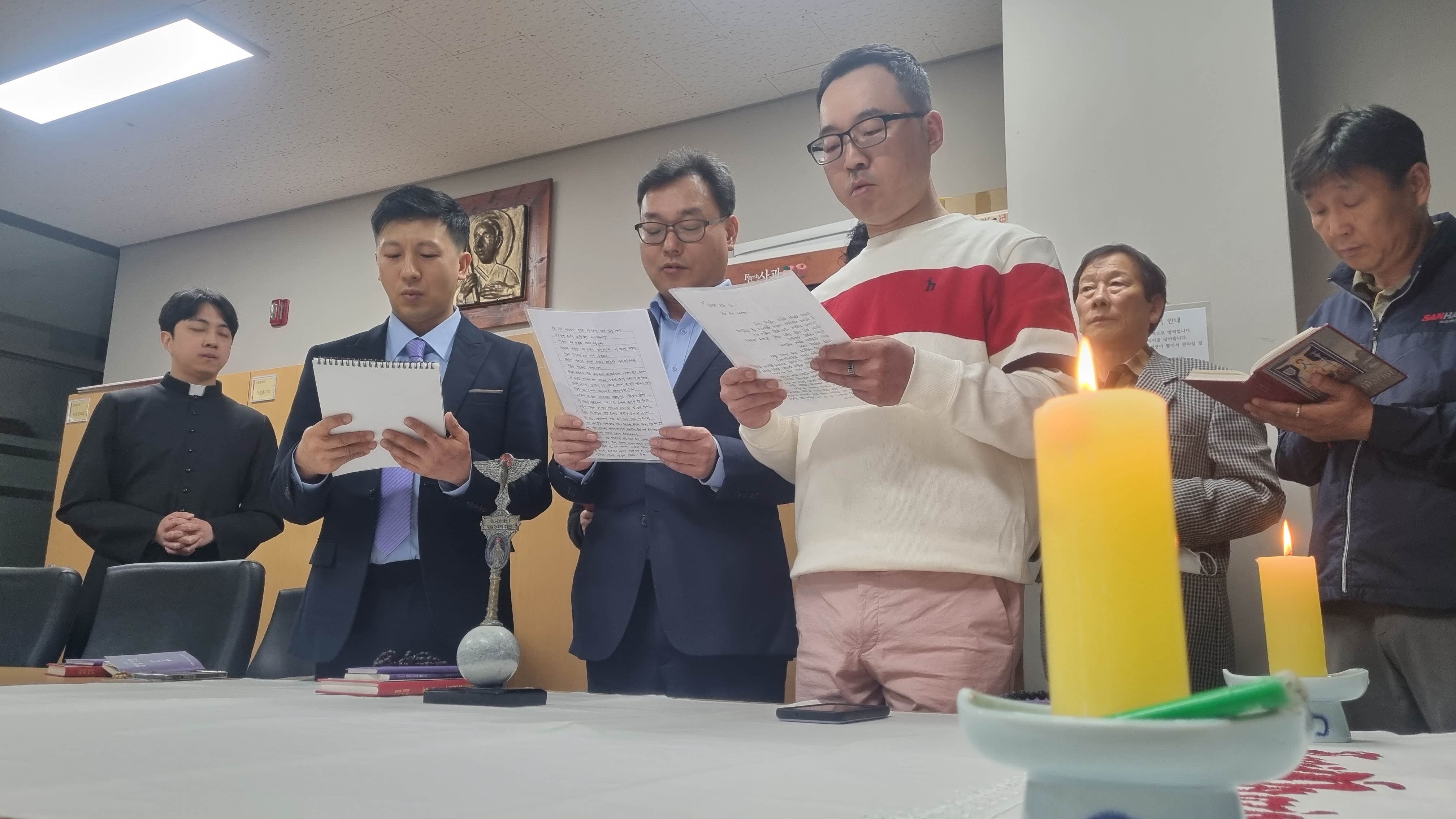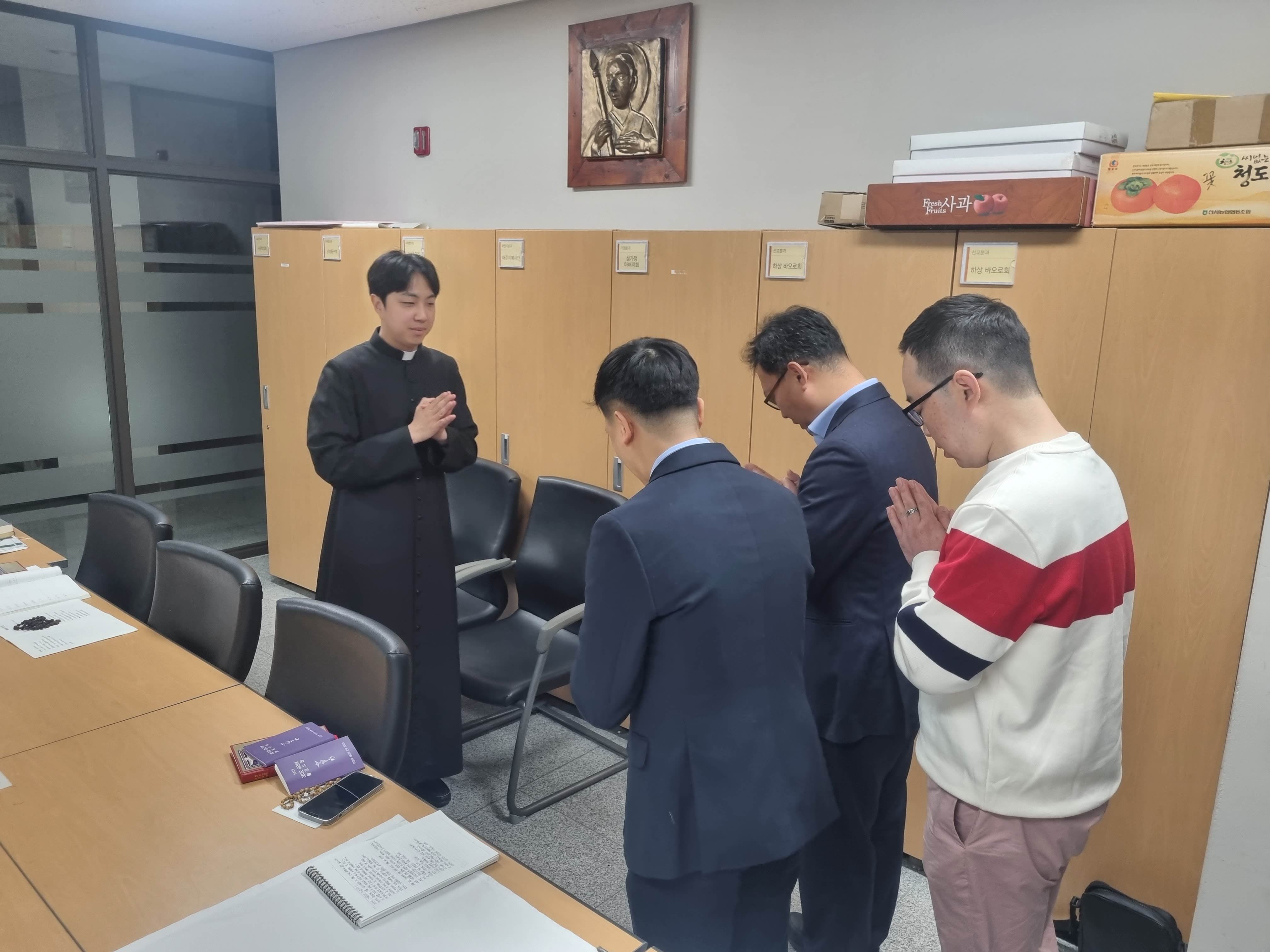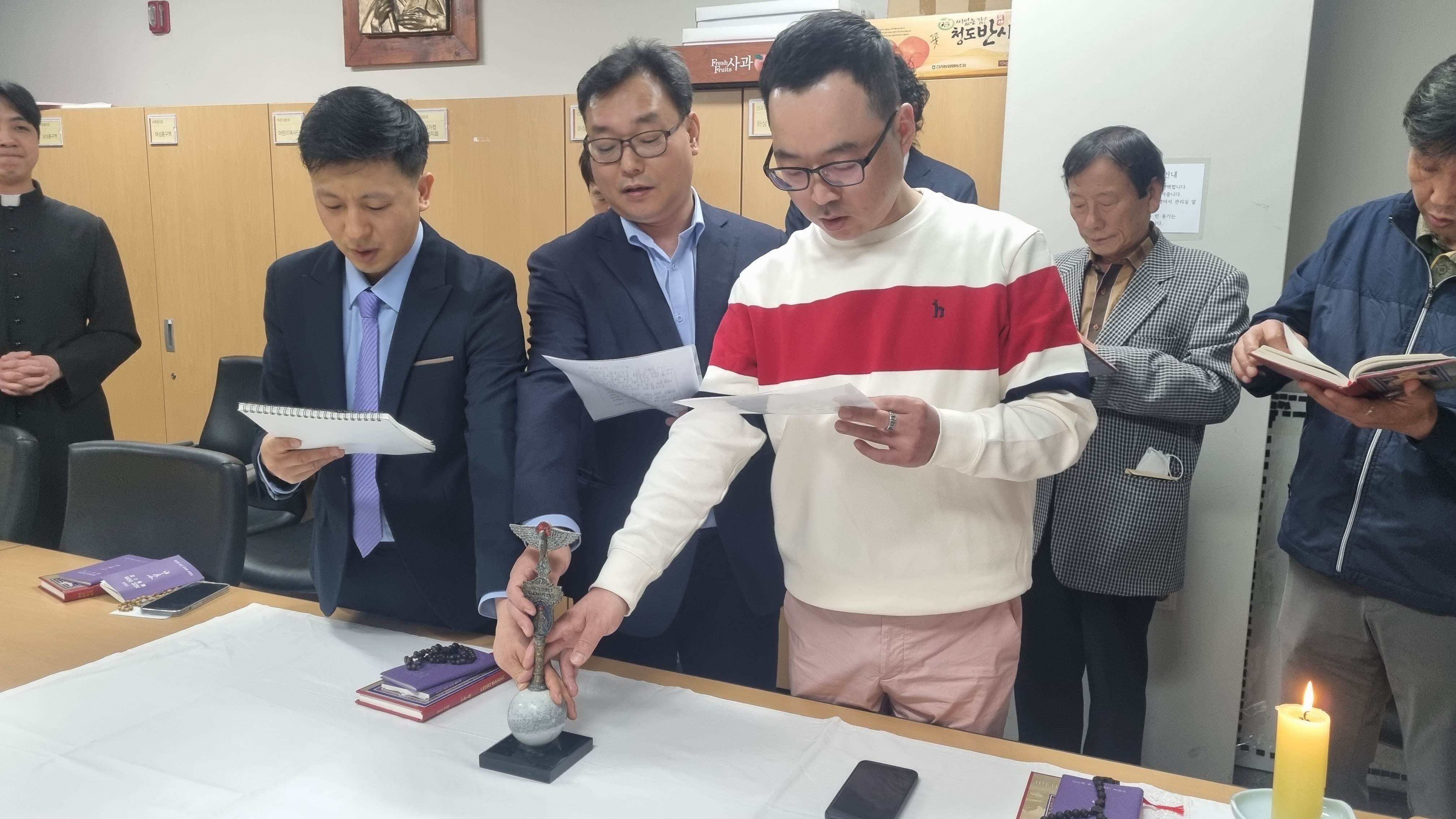 은총의 모후 쁘레시디움의 새 단원 입단식이 9일 저녁에 있었습니다. 새로 입단하신 스테파노, 요셉, 바르톨로메오 형제님 축하드리며, 레지오 활동으로 더욱 깊어진 신심과 섬김, 나눔의 삶을 실천하시기를 바랍니다.