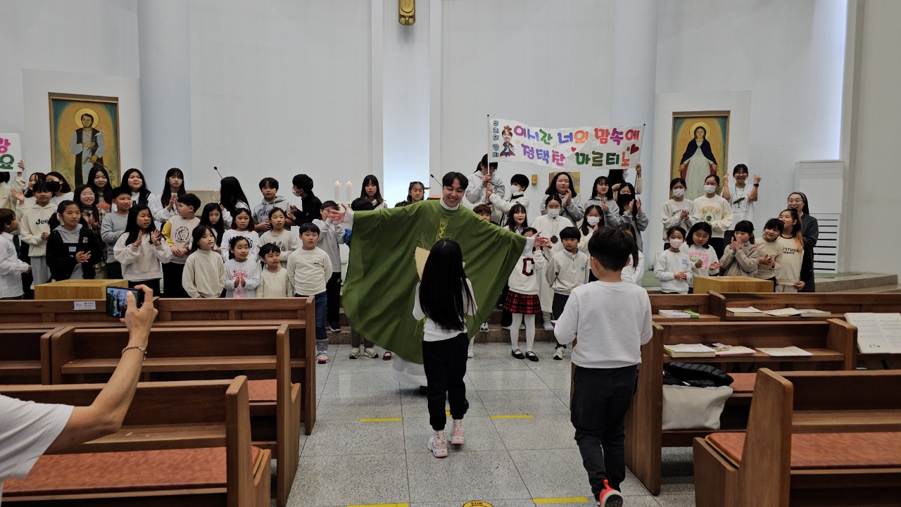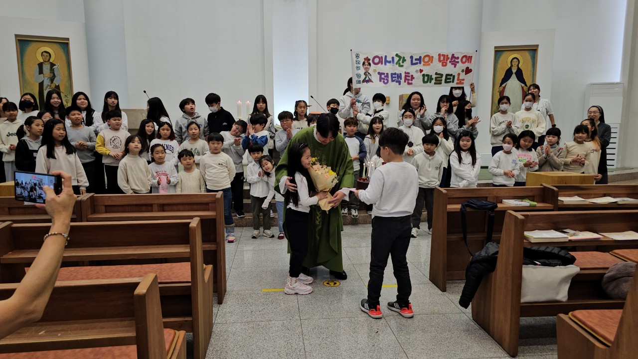 늘 소년같으신 마르티노 신부님의 축일 축하식이 다양한 곳에서 있었네요. 교중 미사 중에, 어린이 미사 중에, 그리고 친교실에서... 여러 번 새로 태어나신 신부님, 축일 축하드립니다. 항상 건강하시고 또 건강하시고 아프지 마세요~ 주님의 평화를 빕니다.