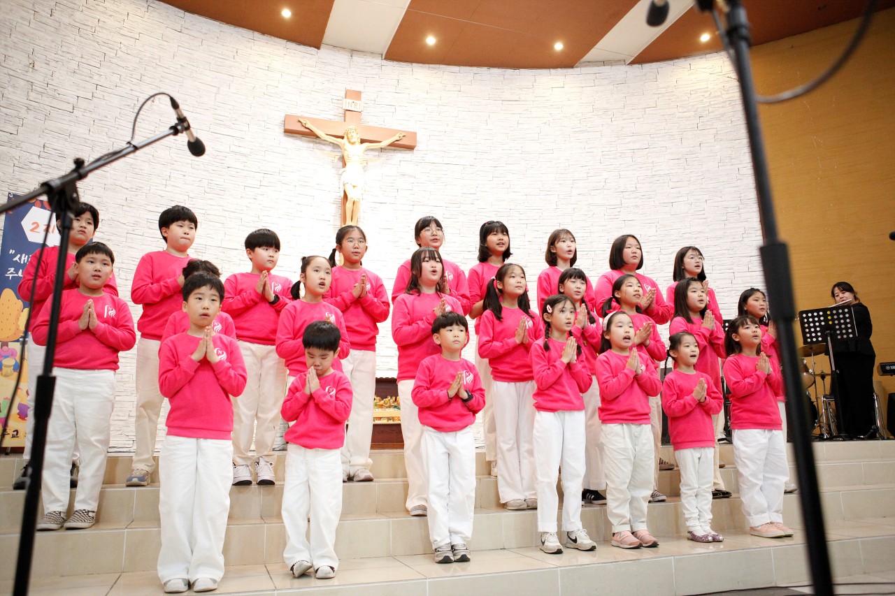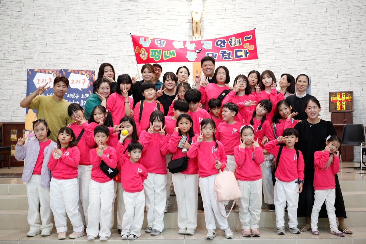 24명의 어린이가 1,2지구 어린이부 주일학교 연합 성가 잔치에서 소리 높여 찬양을 하고 왔습니다.  평내 어린이부 성가대는 저력이 있지요~~ 12개 본당이 참여한 이번 성가잔치에서도 역시 멋지게 공연을 했답니다. 엄마들의 열띤 공연도 한 몫 했겠지요^^ 모두모두 참 잘했어요~~^^ 좋은 기억으로 남기를 바래요~~