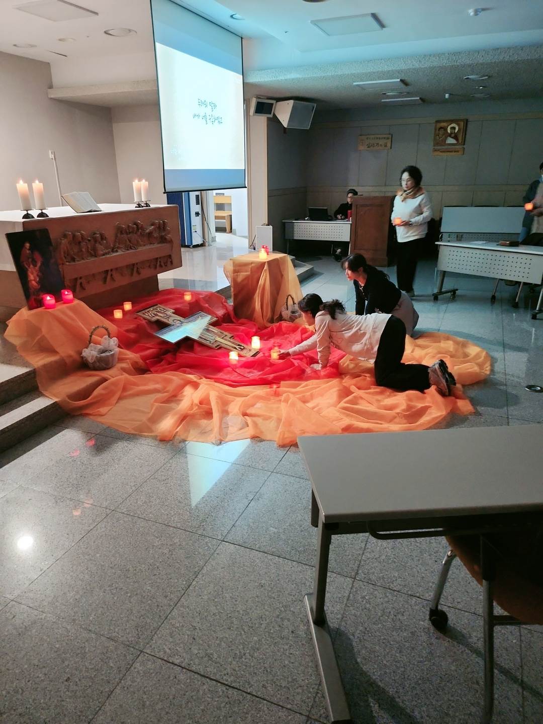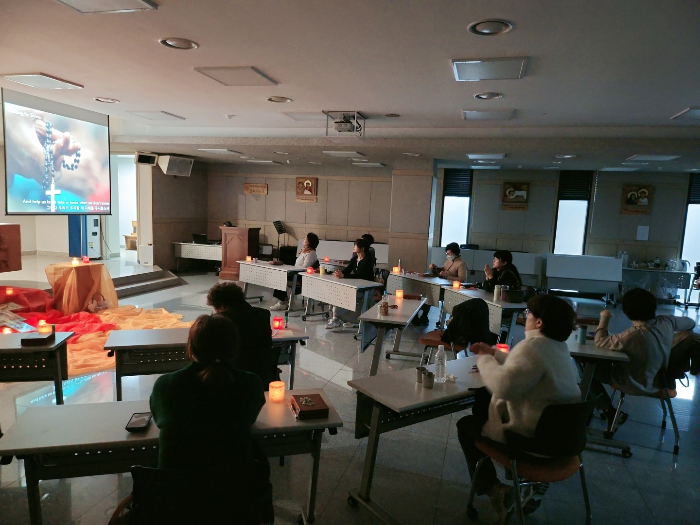 대입 시험이 한창일 때, 마음을 다스릴길 없는 가족들이 모여 하느님께 의지하며 아이들을 위해 그리고 부모님들과 그 가족들을 위해 기도를 했습니다. 오딜이아 수녀님께서 지도해 주셨습니다. 아이들 모두 시험 결과의 여부와 상관없이, 하느님께 감사드리는 마음이 생겼으면 좋겠습니다.