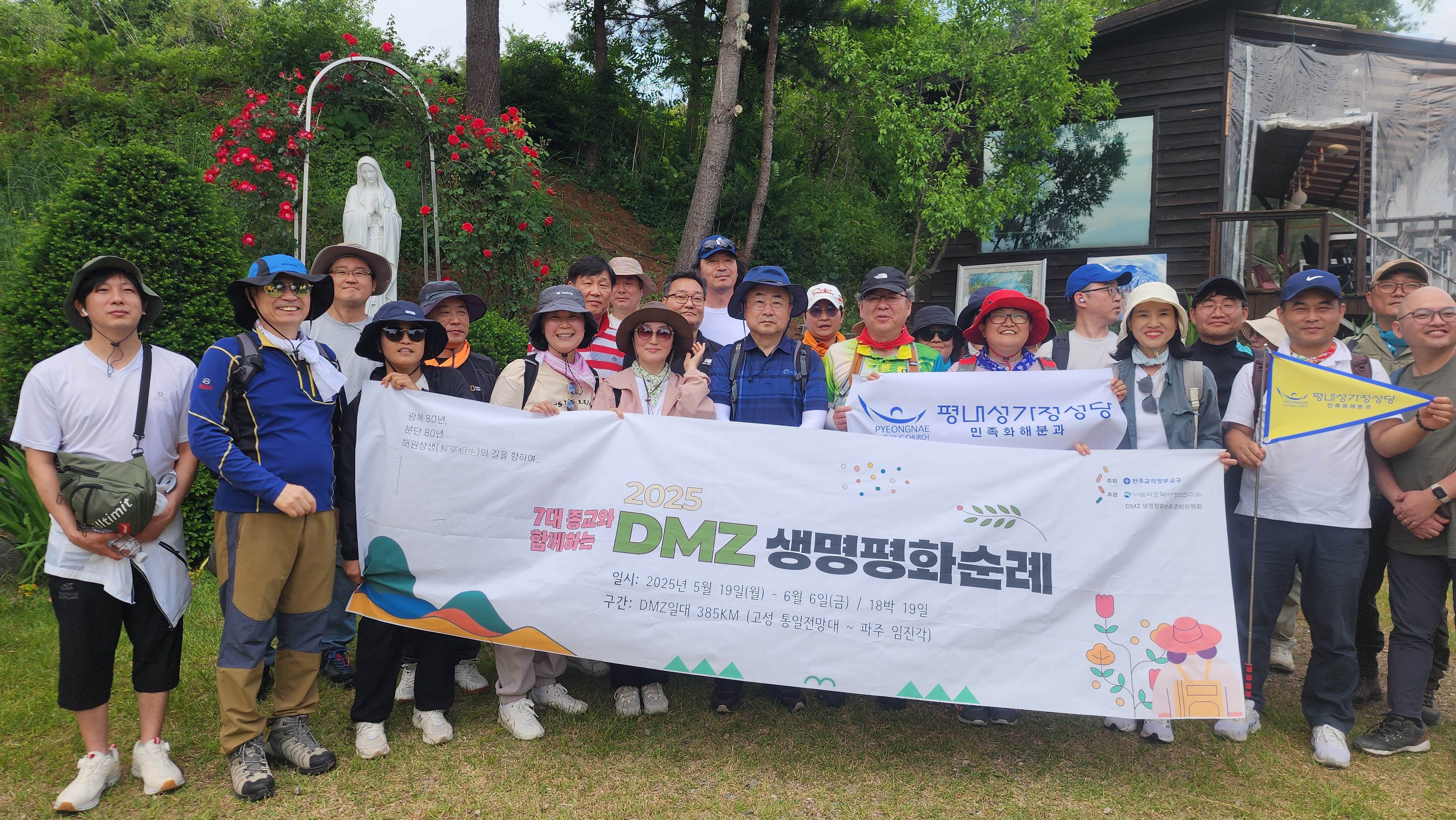 2025년 6월 3일, 민족화해분과 주관으로 평내성당 주임신부님을 포함한 27명이 7대 종교가 함께하는 ‘2025 DMZ 생명평화순례’ 중 징파나루에서 백학공소까지 하루 도보순례에 동행하고, UN군 화장장 및 북한군 묘지를 방문하며 한반도 평화와 생명, 화해의 의미를 되새기는 시간을 가졌습니다.