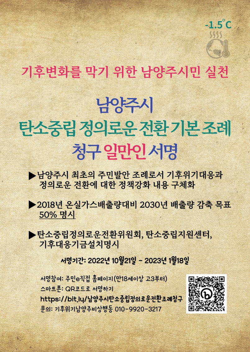 남양주시 탄소중립 정의로운 전환 기본조례 청구 일만인 서명