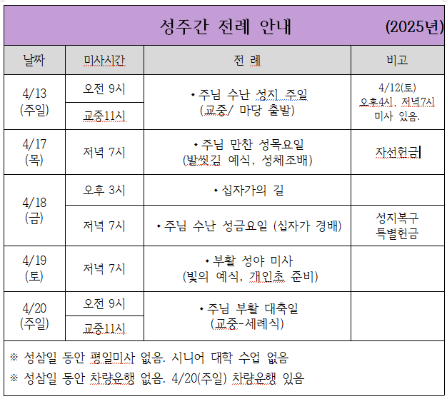 성주간 전례 안내