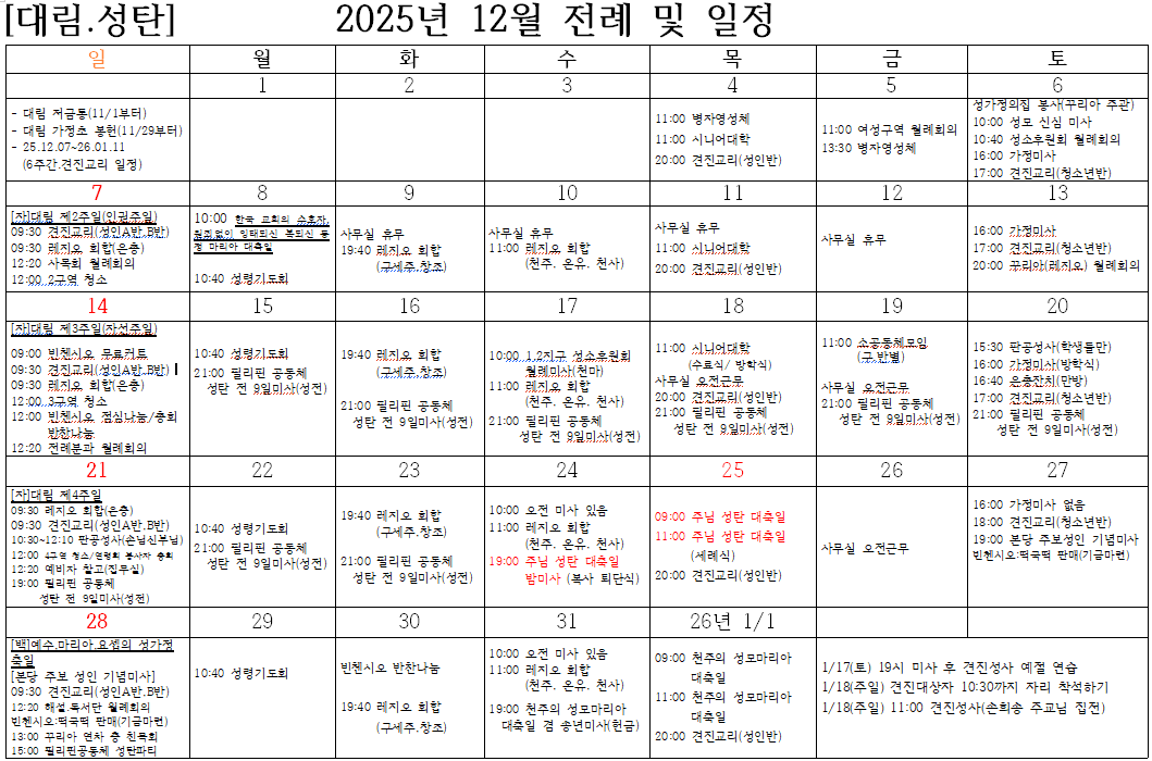 12월 전례 및 일정표