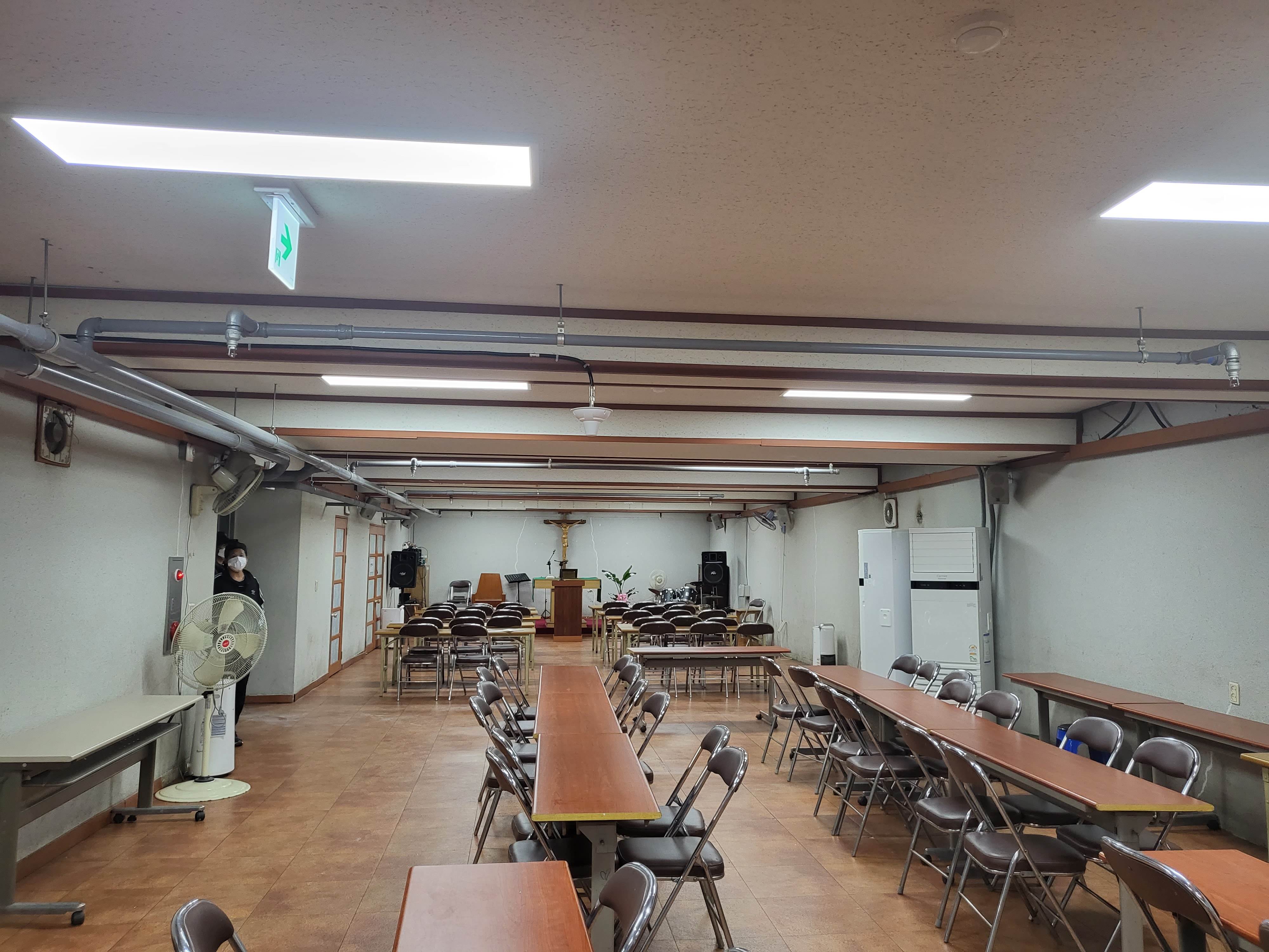 천마성당 대성전, 만남의방, 지하강당 전구를 2달에 걸쳐 LED로 교체하였습니다.