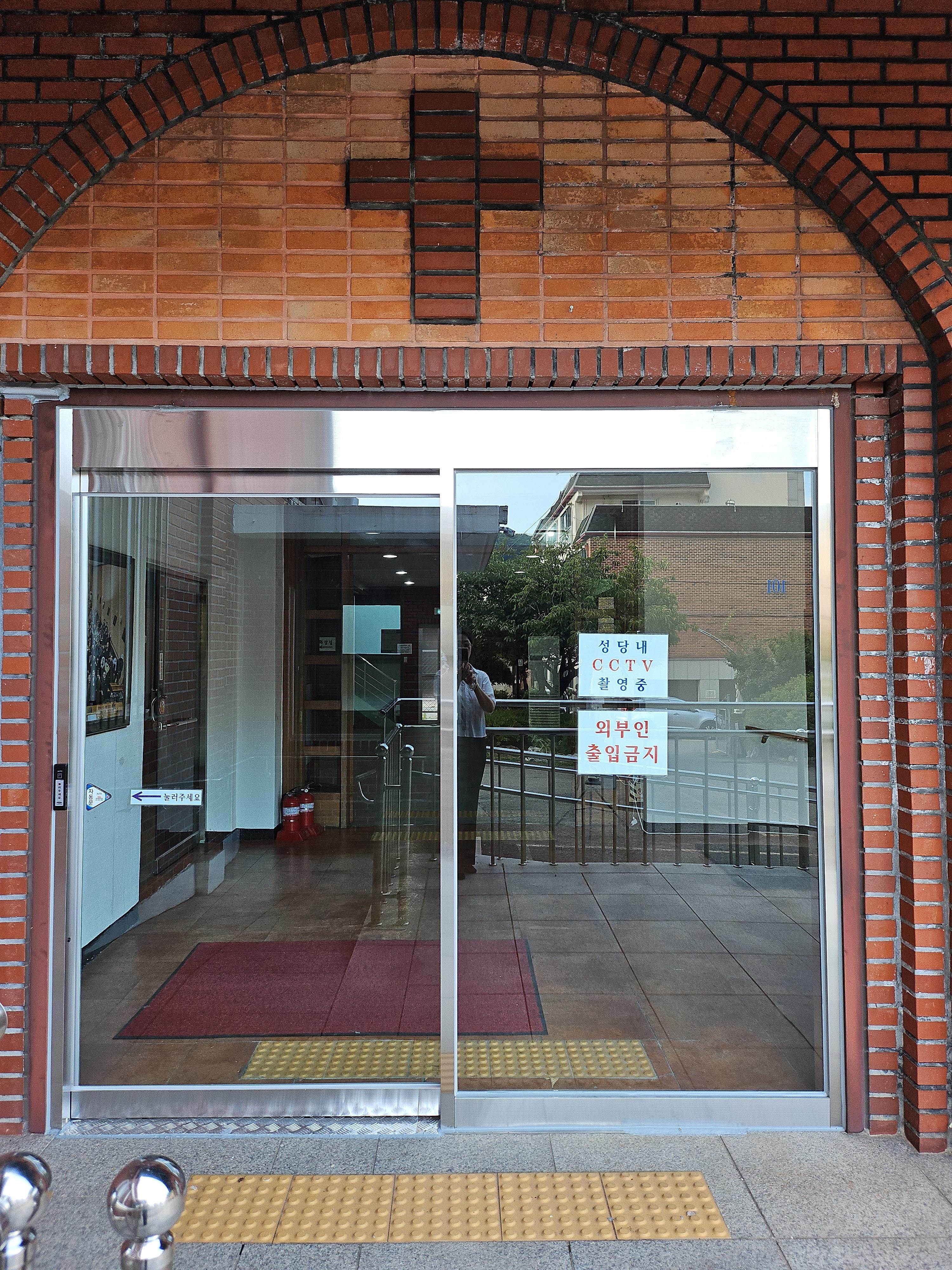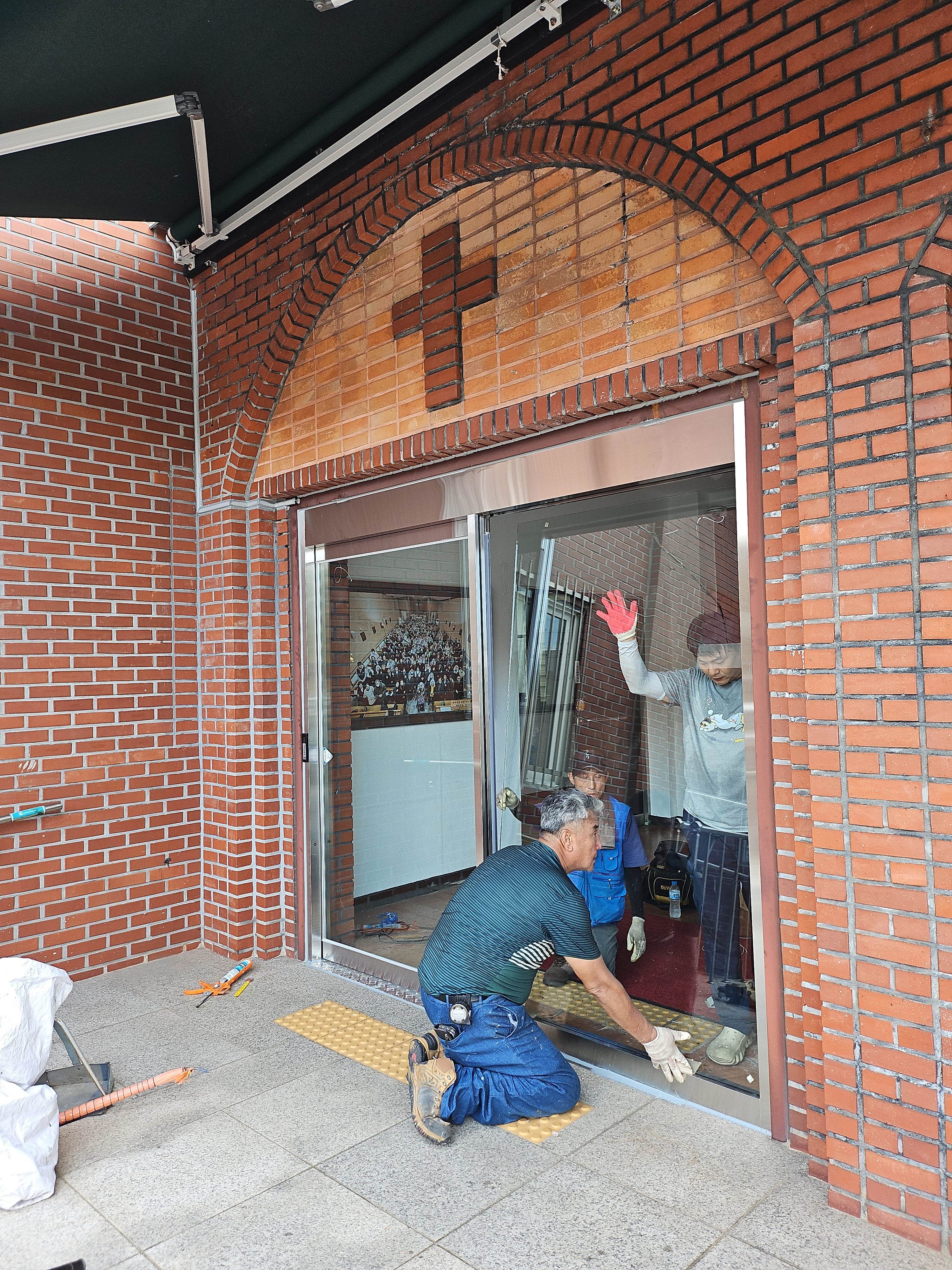 1.성당 입구 일반 유리문을 자동문으로 교체