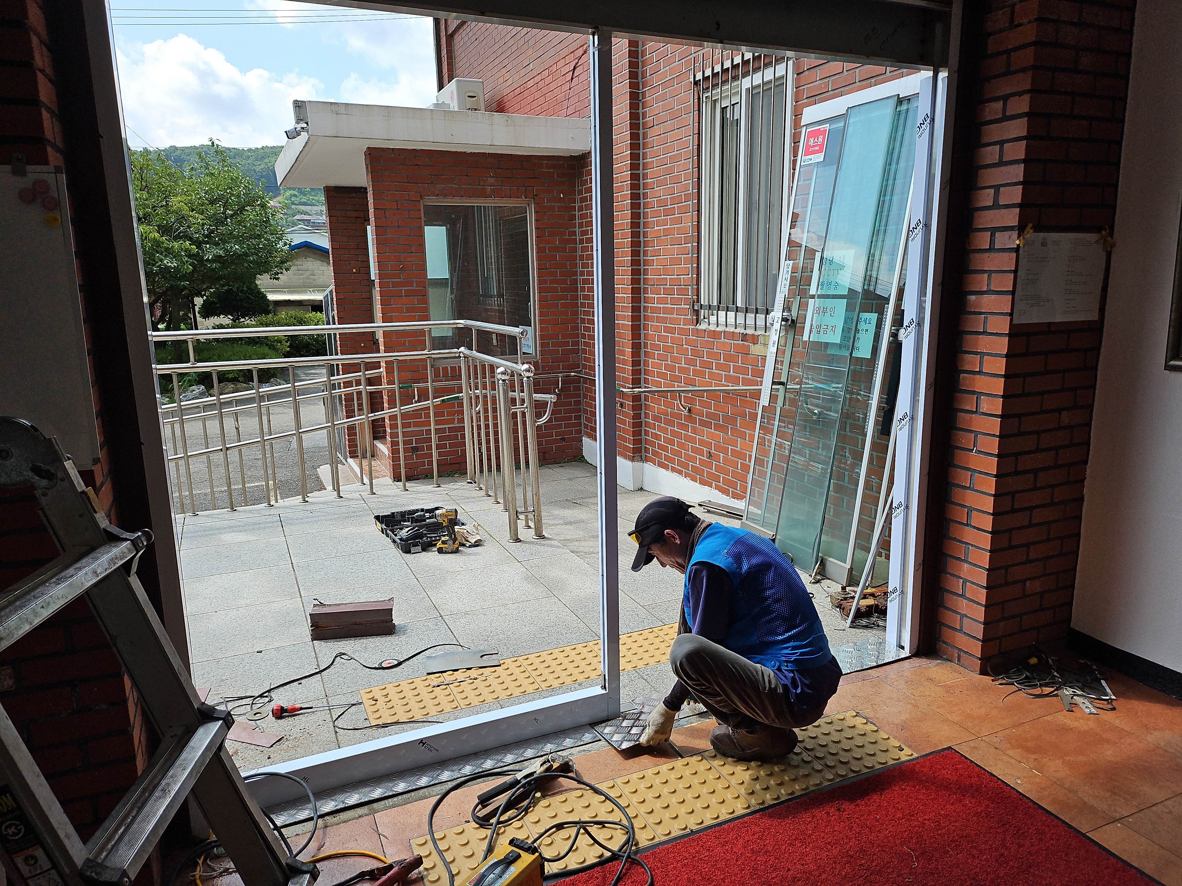 성당 입구 자동문으로 교체, 수도계량기 뚜껑 교체 외 작업