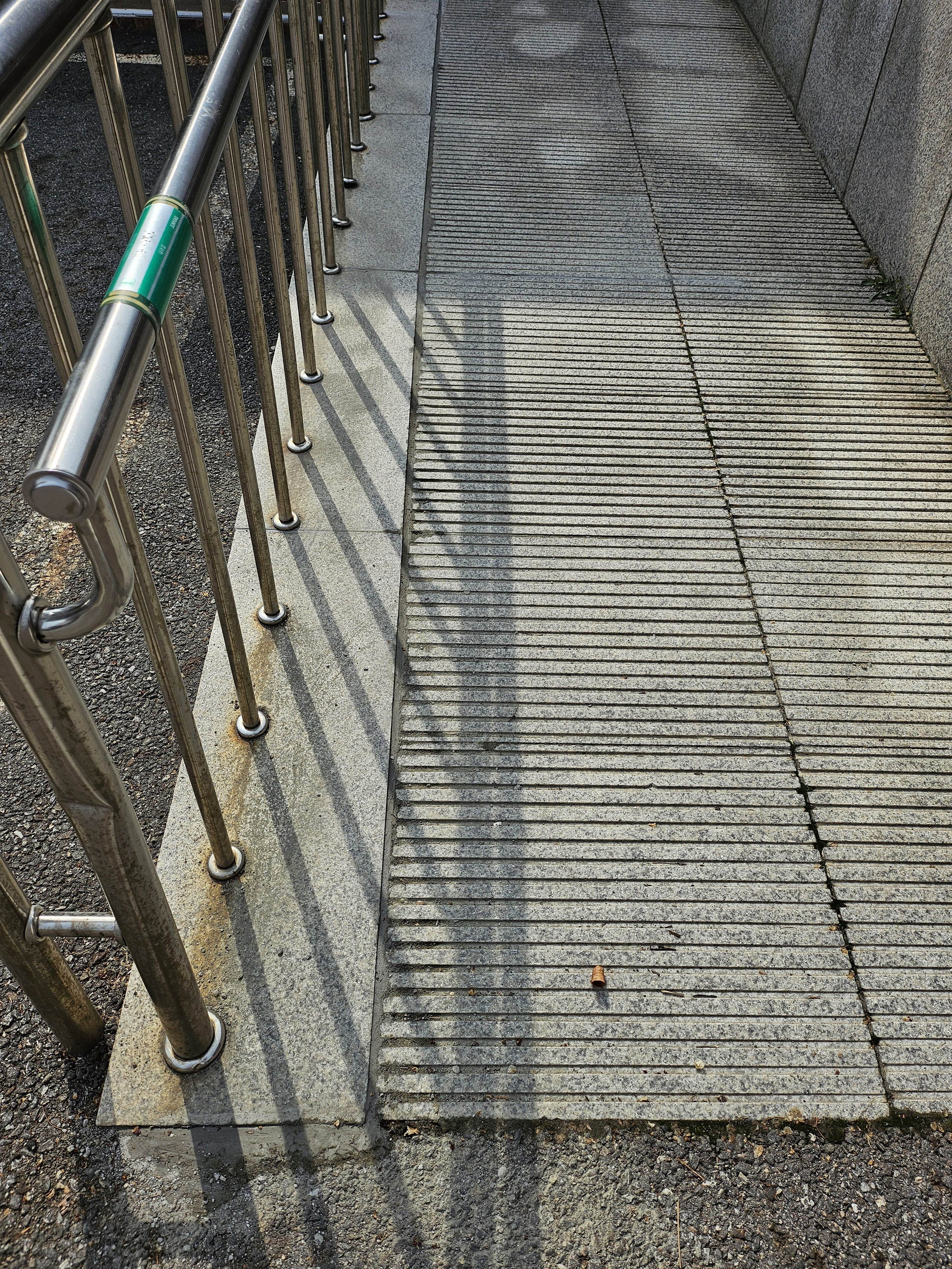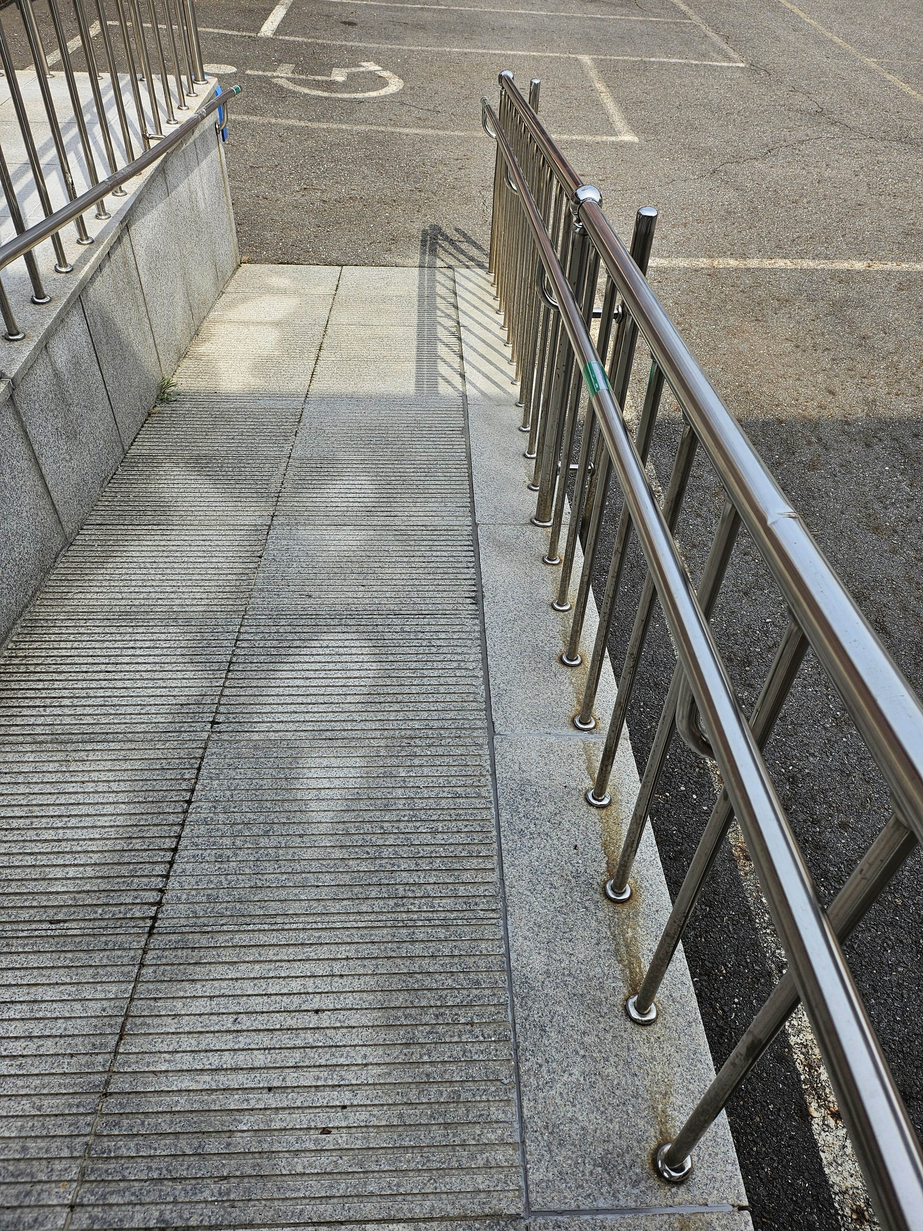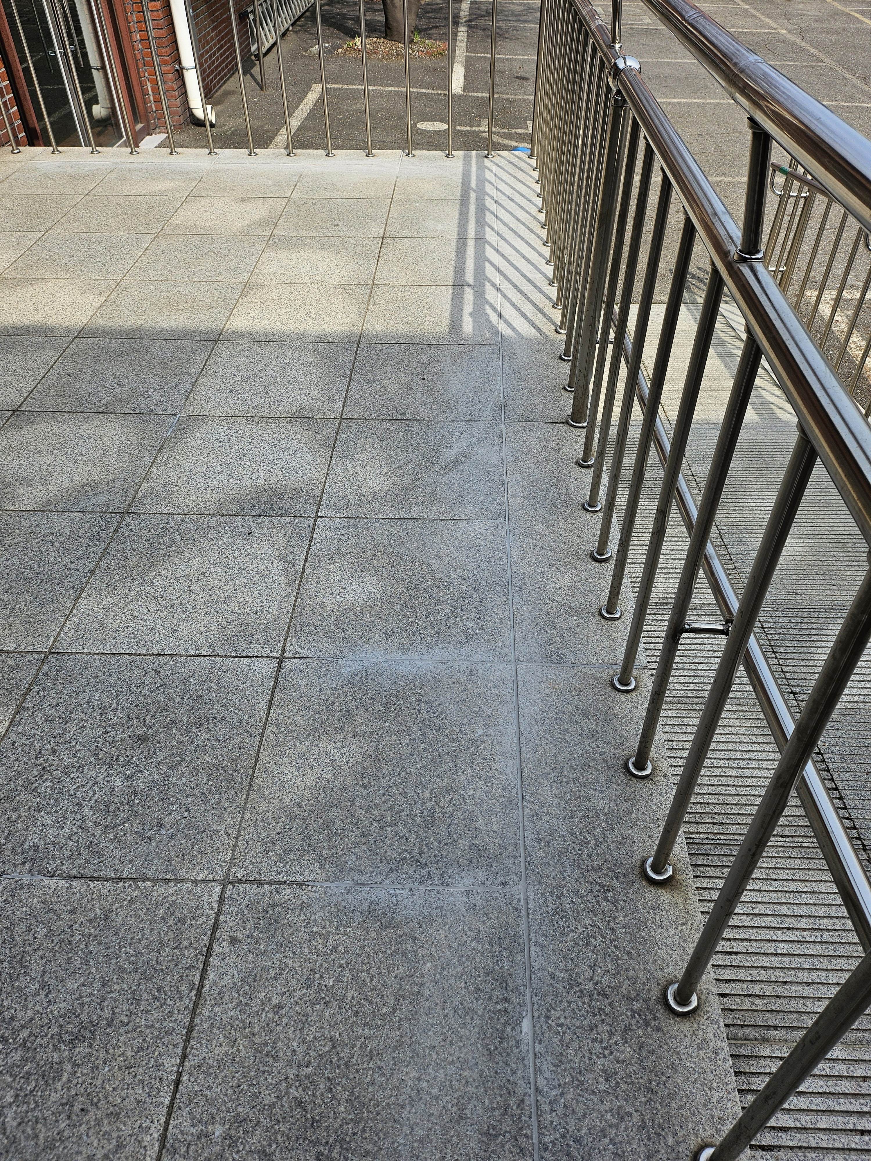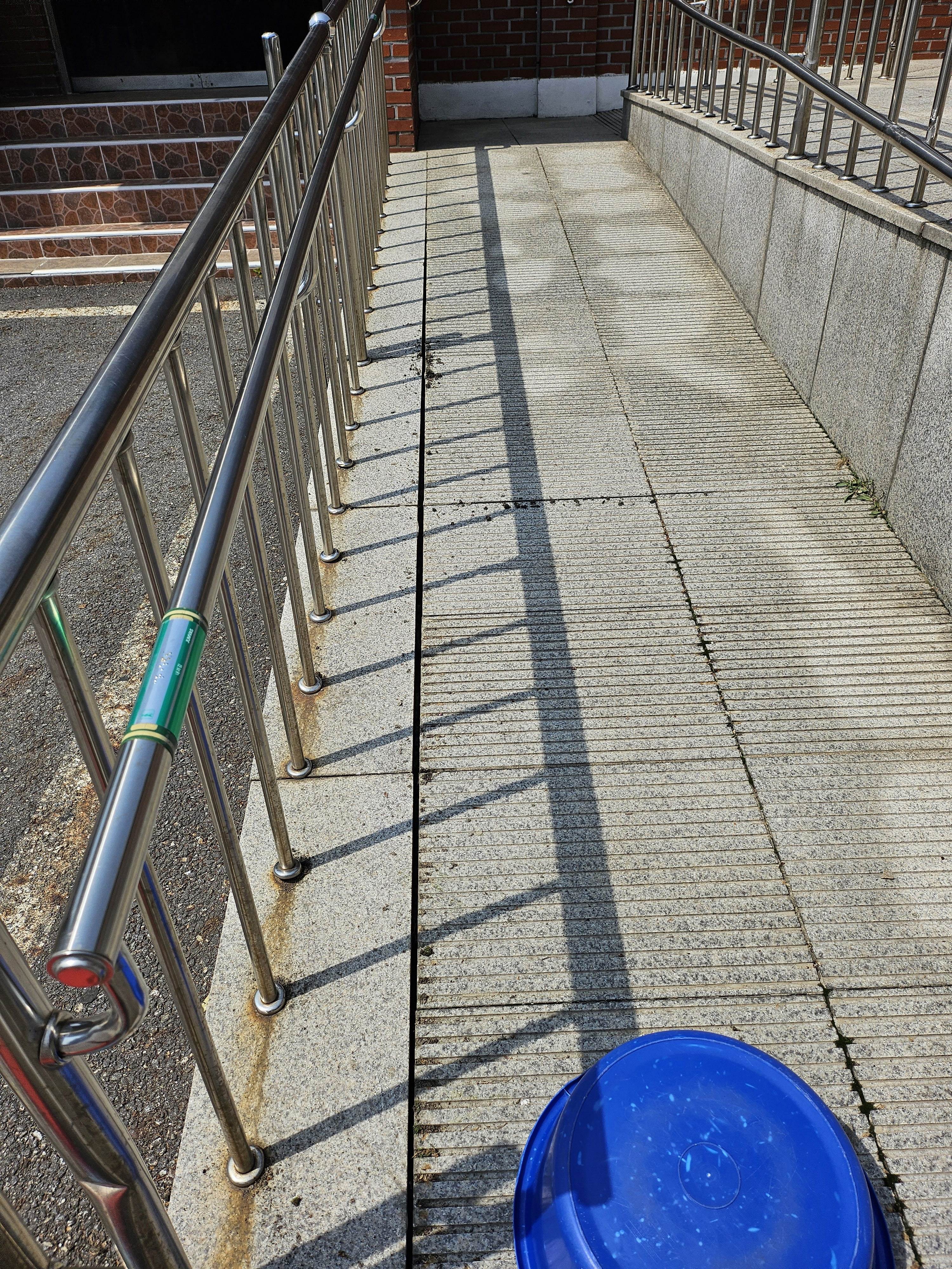 장애인 내려가는 곳 시멘트 바닥 틈 메우기
