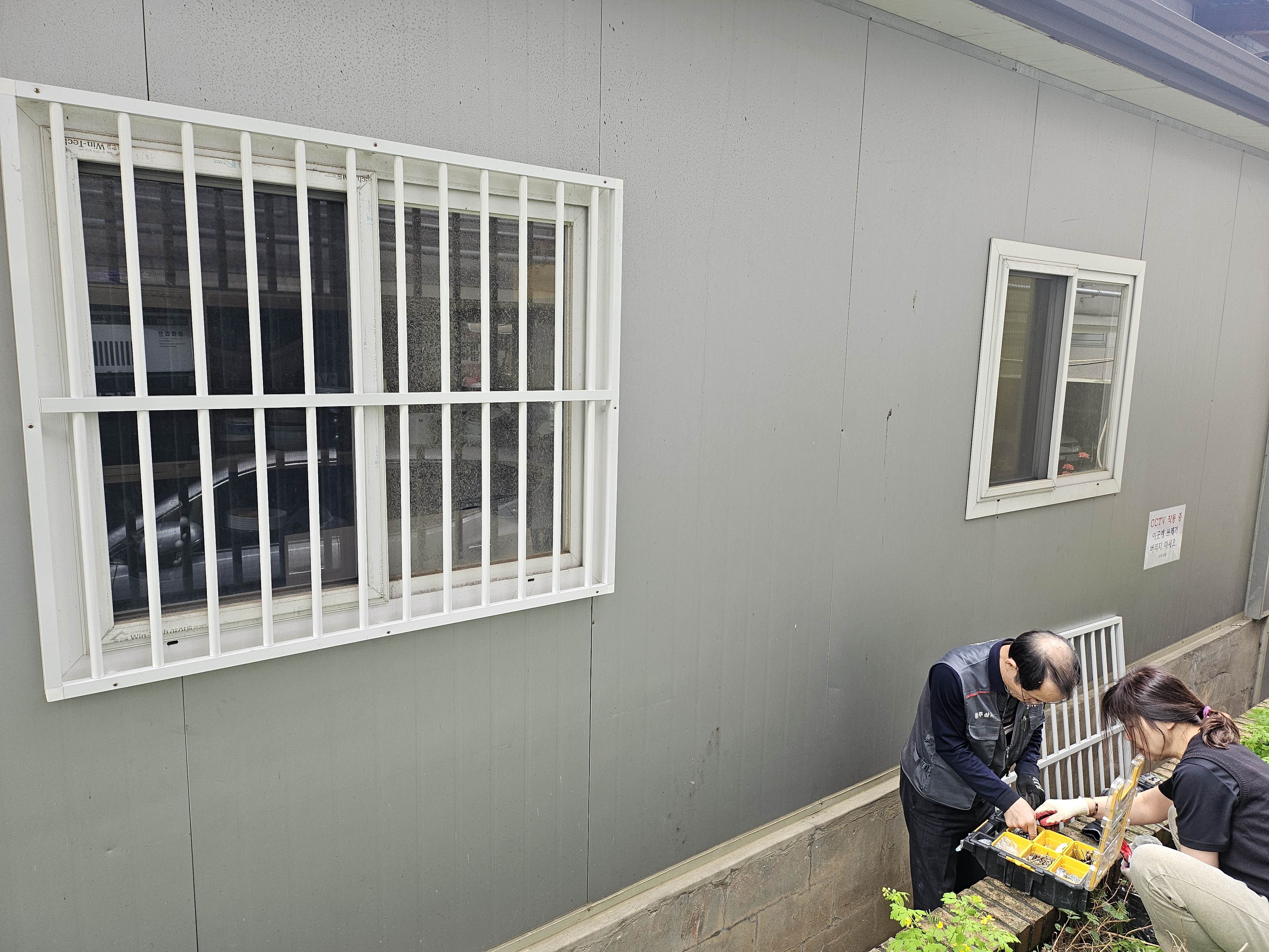 방범창 설치 (헌화회, 미용실, 교사실, 201호 1개 ) - 총4개, 방충망 망만 교체(헌화회, 미용실, 교사실, 201호, 지하내려가는 곳) 총 5개.