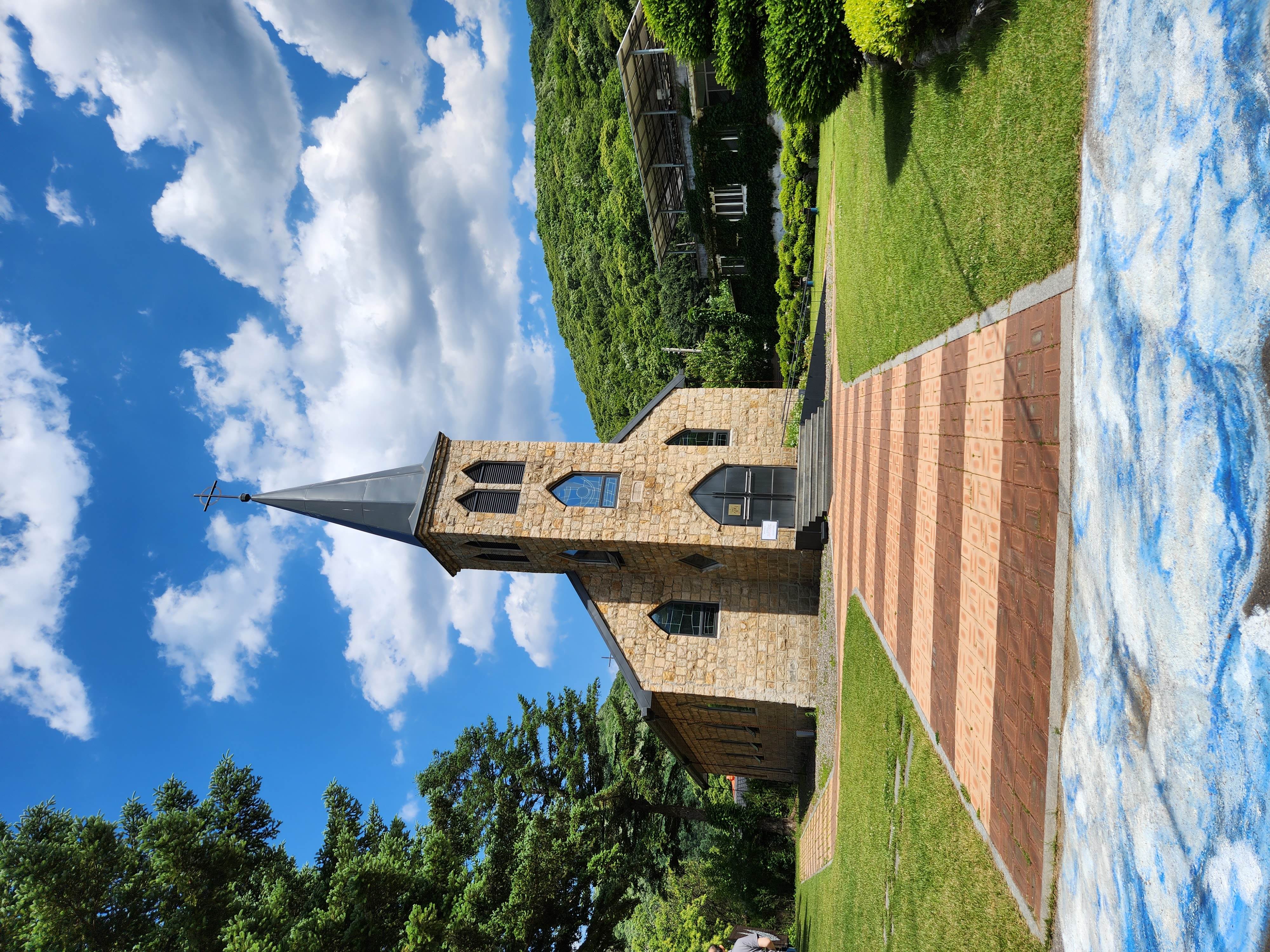 성당 입구까지 들어서는 길 앞에 구름 위에 선 듯한 구름과