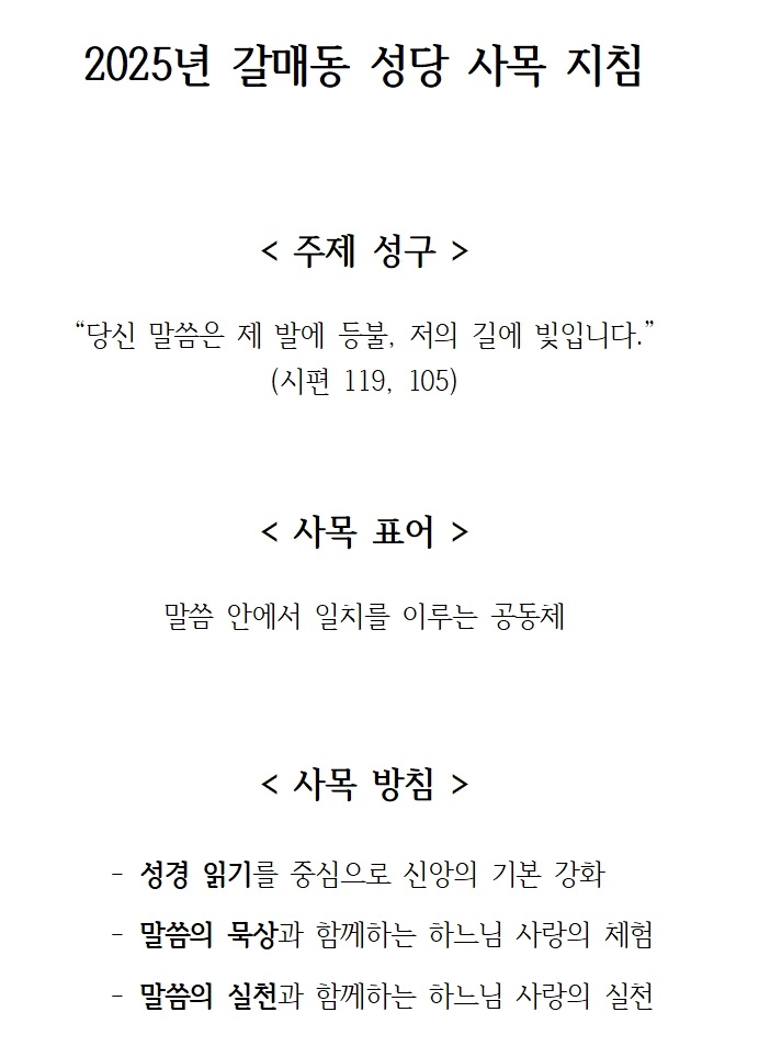 2025년 갈매동 성당 사목 지침