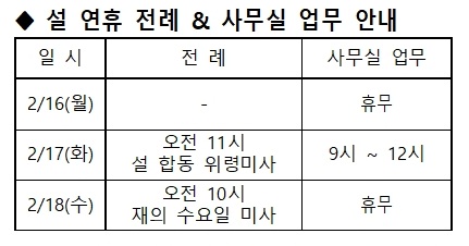 설 연휴 전례 및 사무실 업무