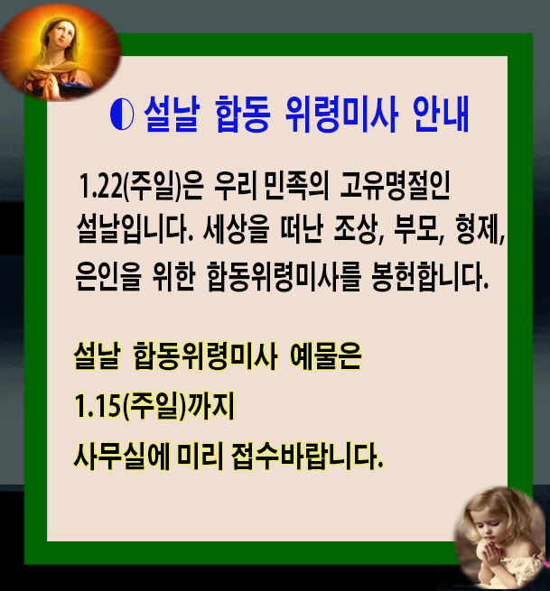 설날 합동 위령미사 안내