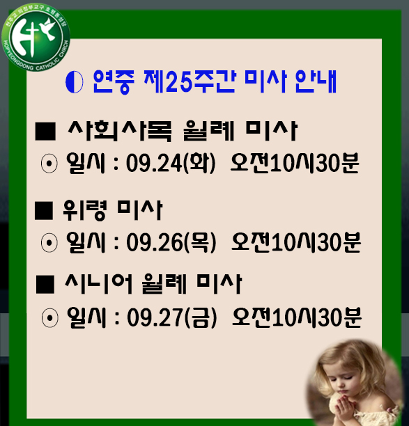 연중 제25주간 미사 일정