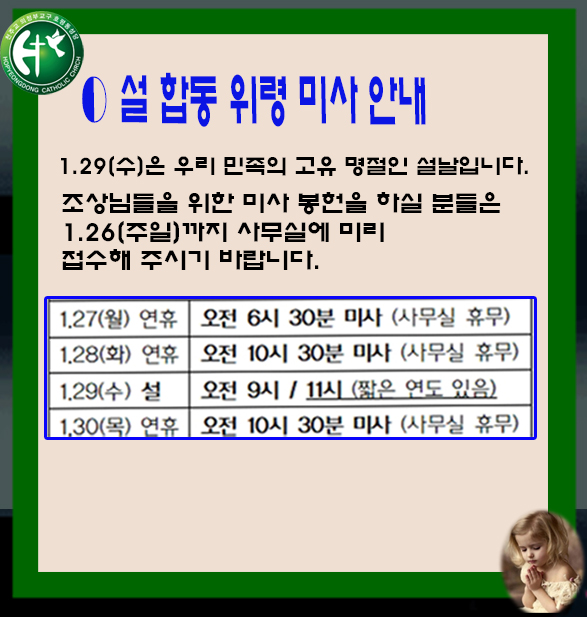 설 합동 위령미사 안내