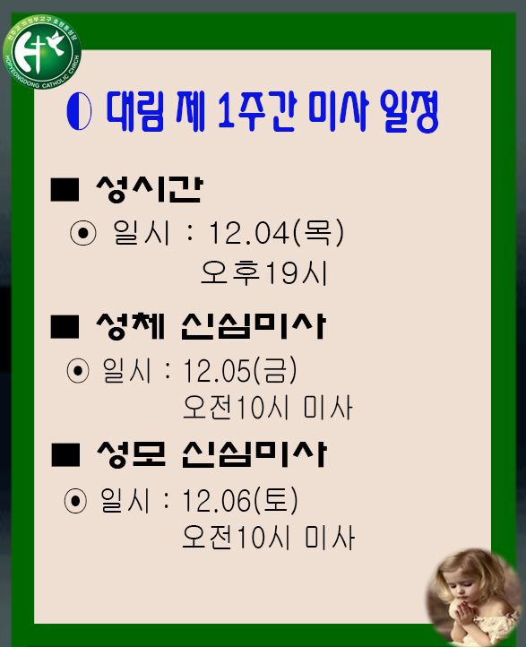 대림 제1주간 미사 일정