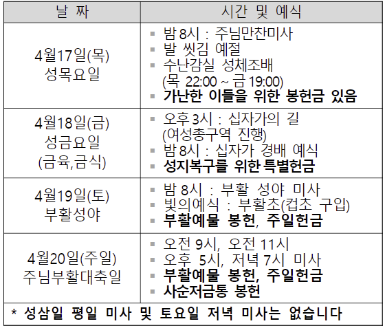 성삼일과 부활대축일 전례 안내