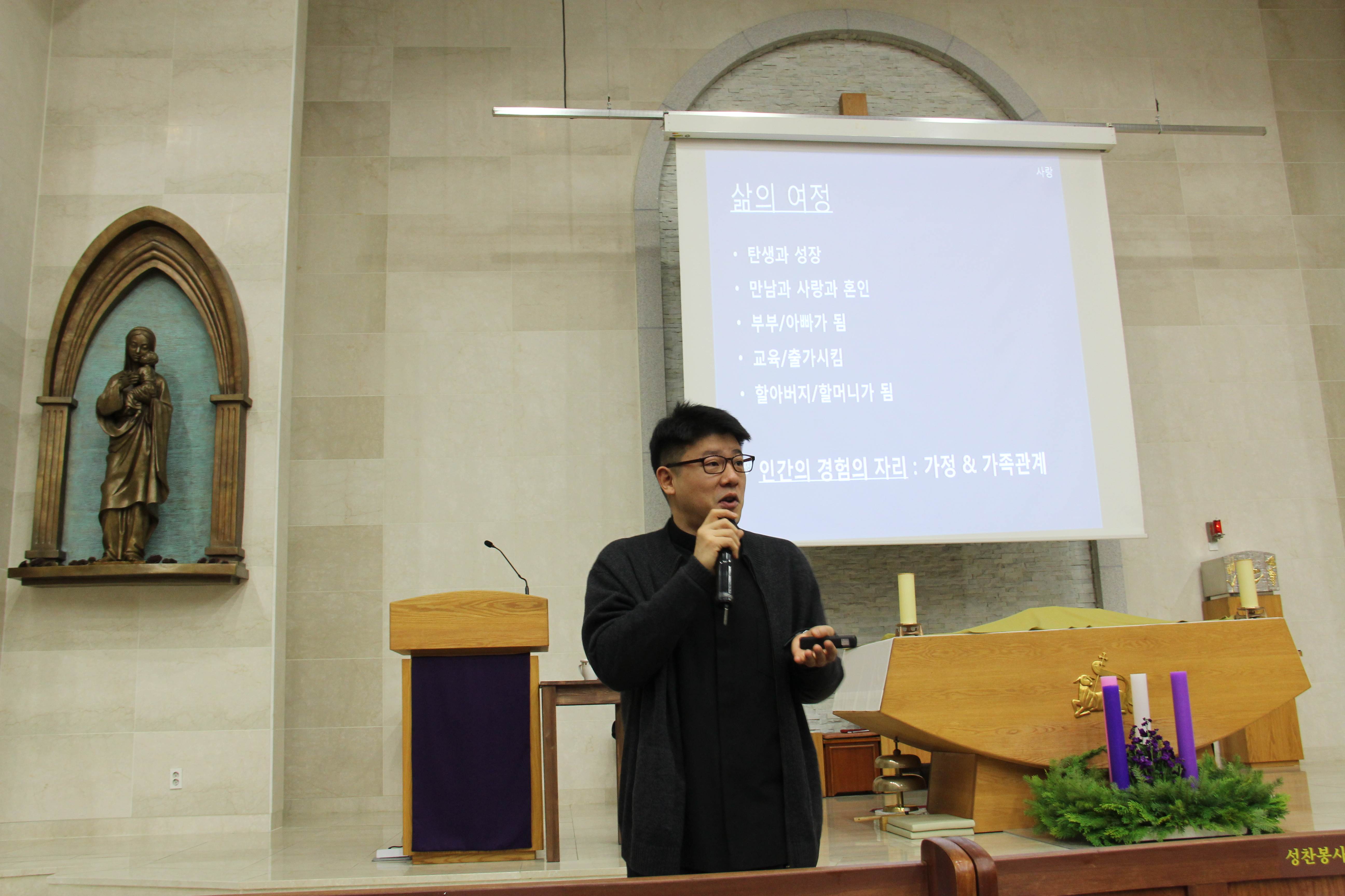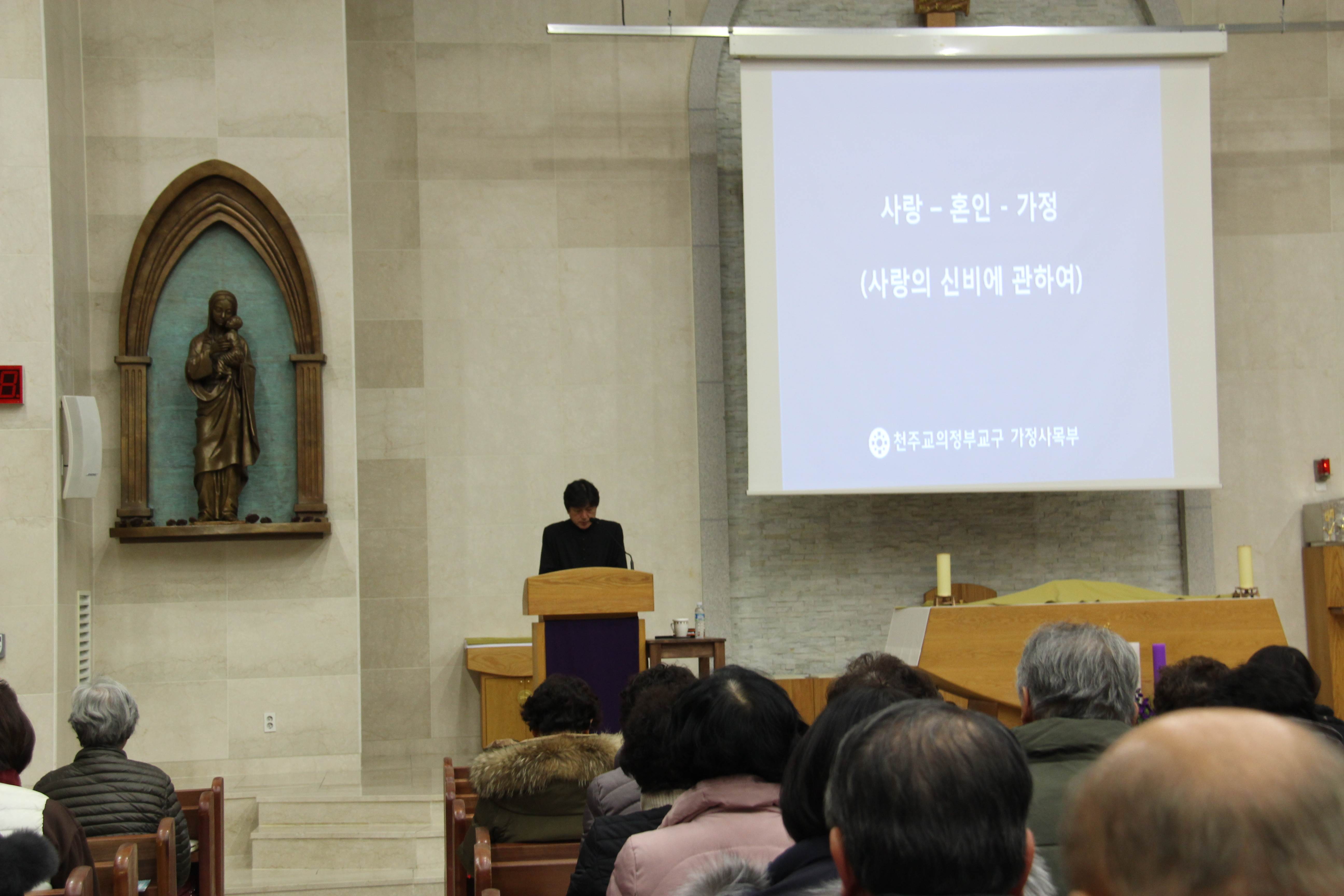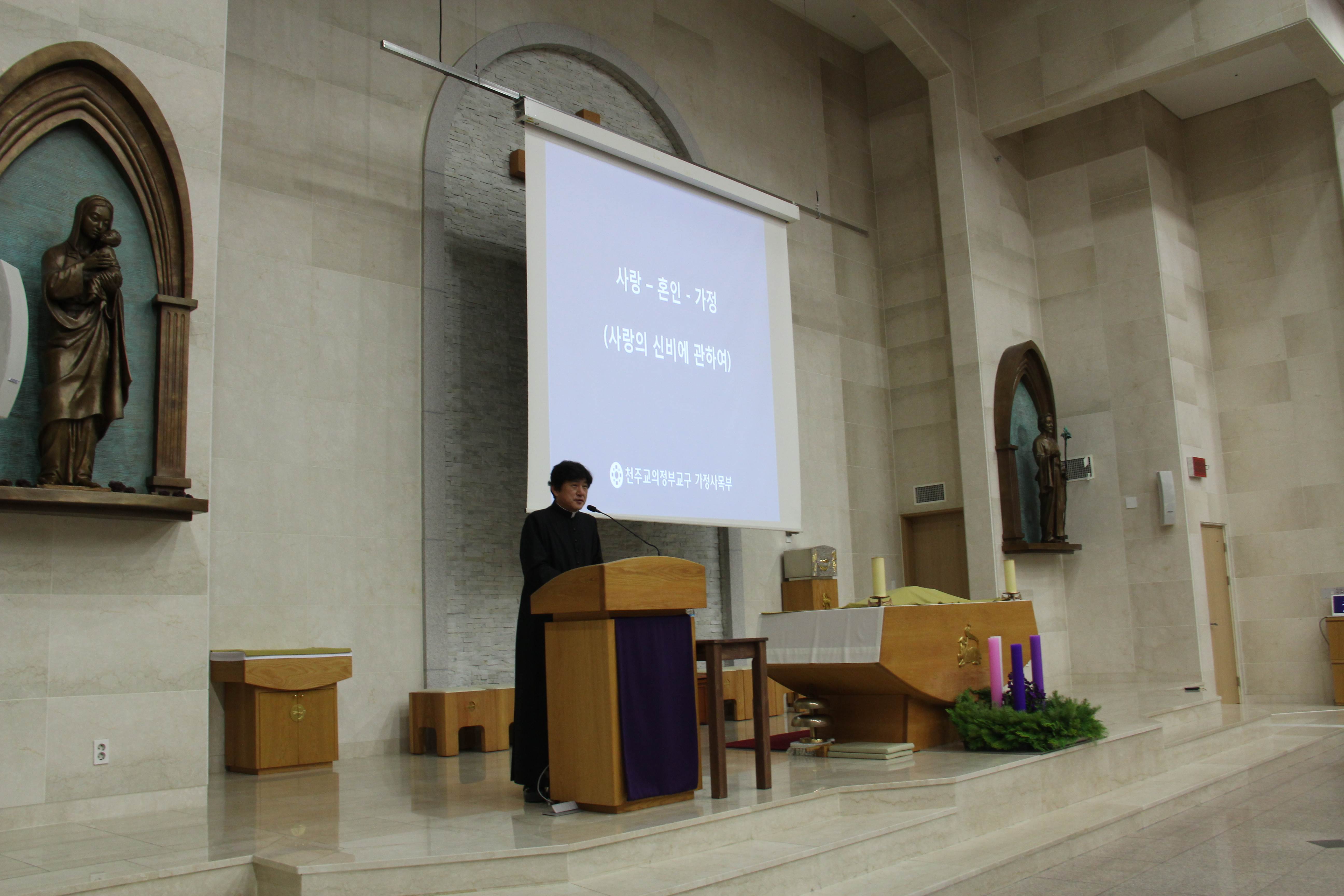 2019년 12월 4일 본당에서 의정부교구 가정사목부의 이현승 다미아노 신부님의 강의로 '신앙인의 가정생활 -사랑,혼인성사,가정' 을 주제로한 대림특강이 있었습니다.