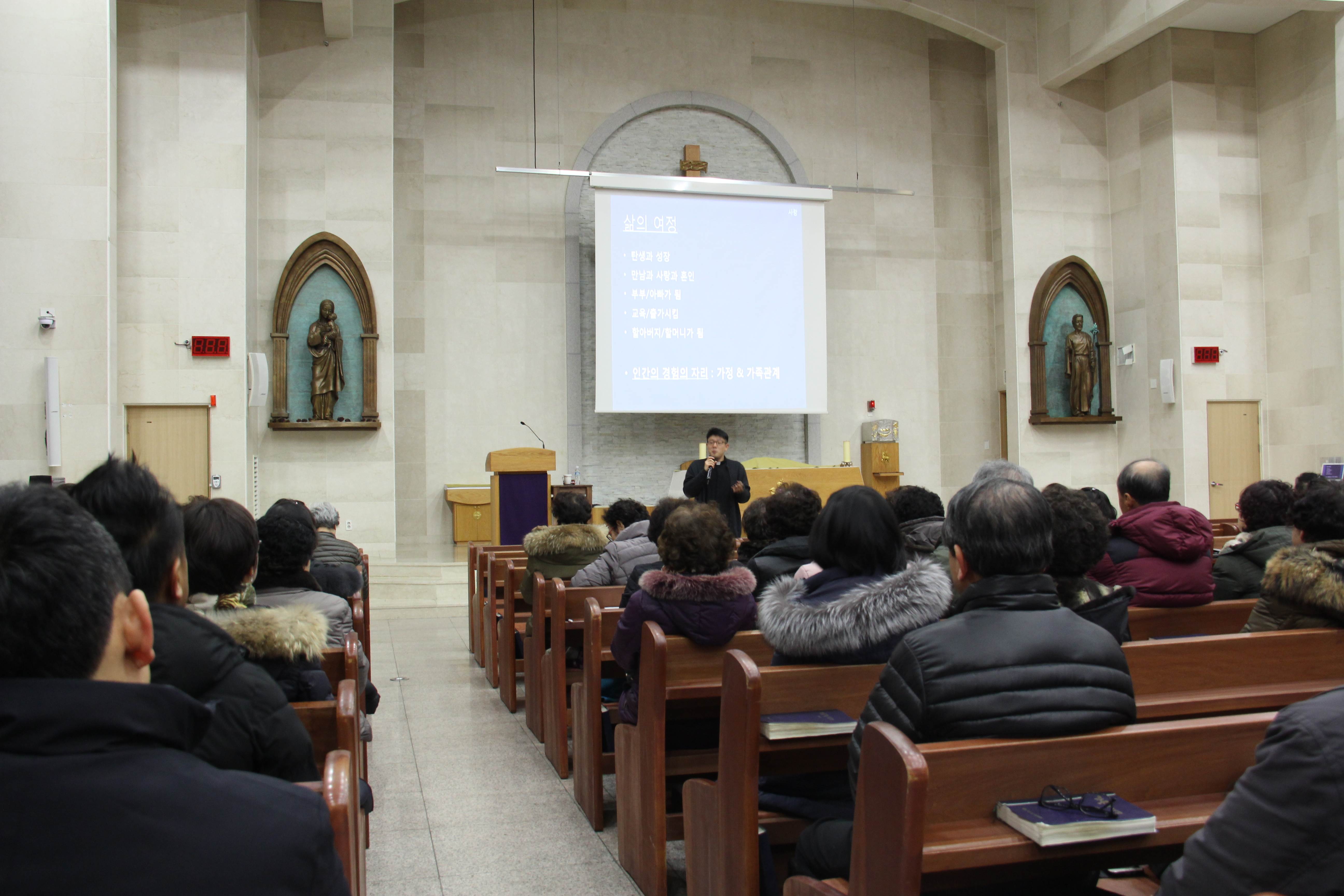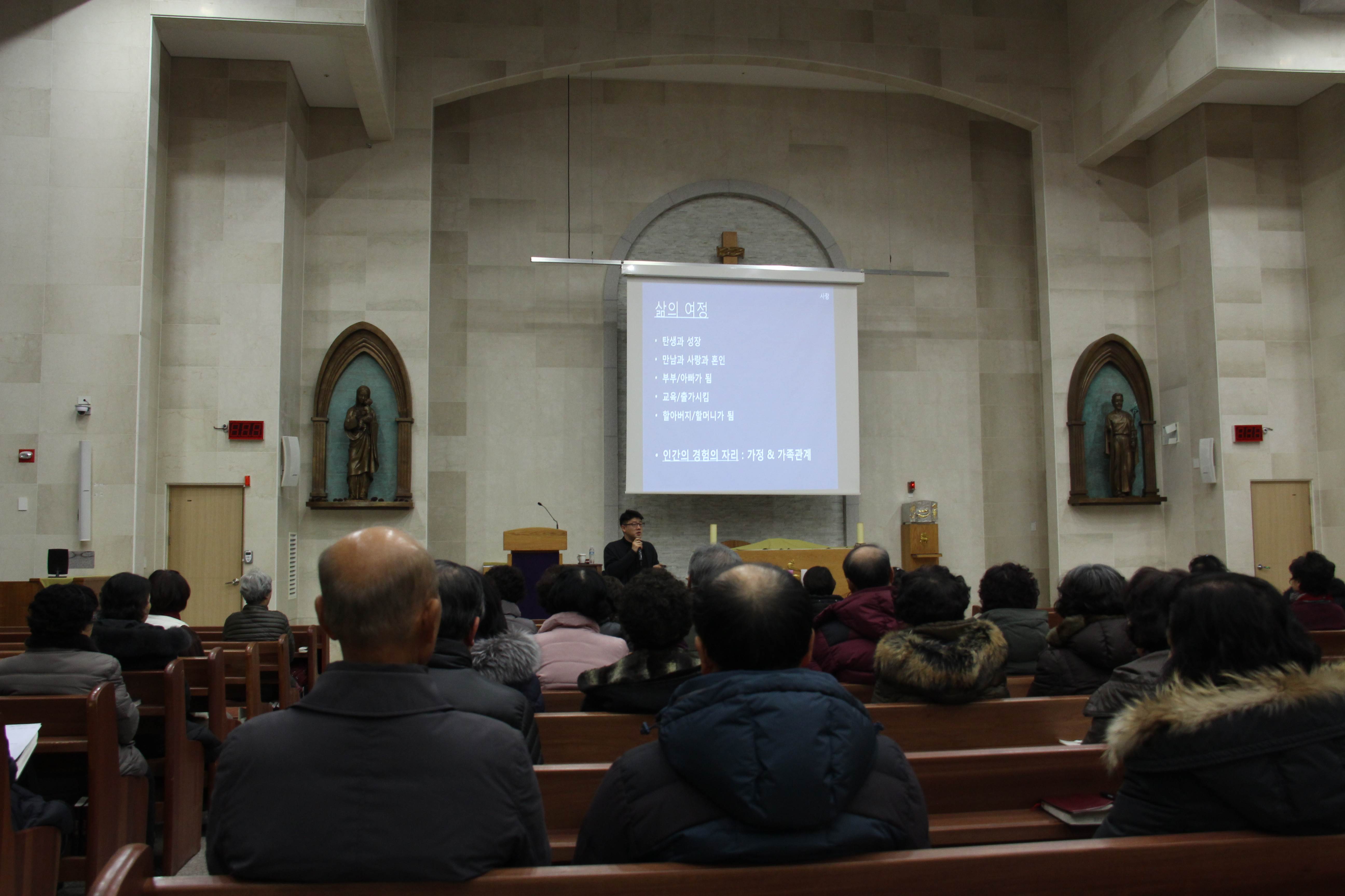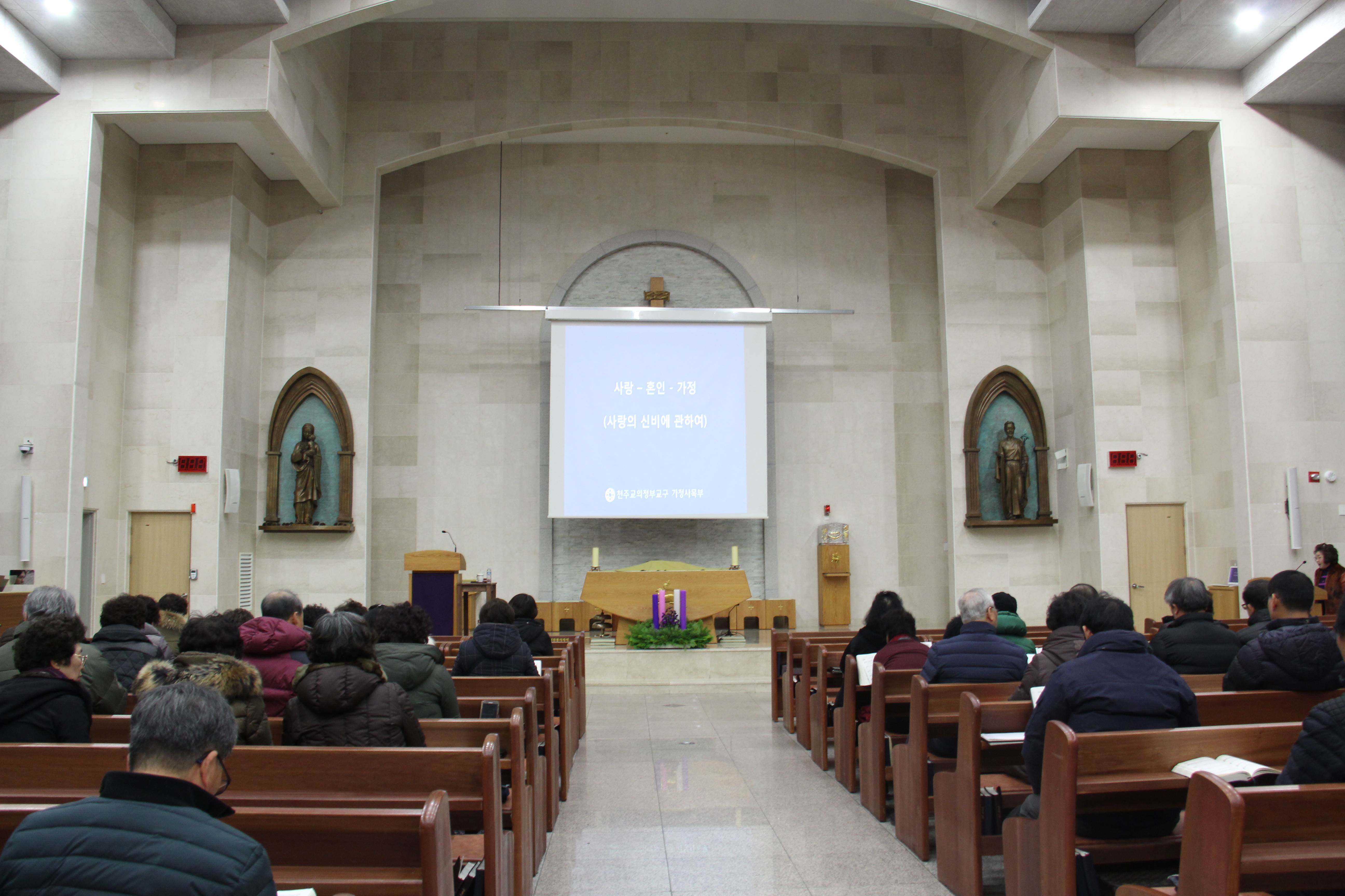 2019년 12월 4일 본당에서 의정부교구 가정사목부의 이현승 다미아노 신부님의 강의로 '신앙인의 가정생활 -사랑,혼인성사,가정' 을 주제로한 대림특강이 있었습니다.