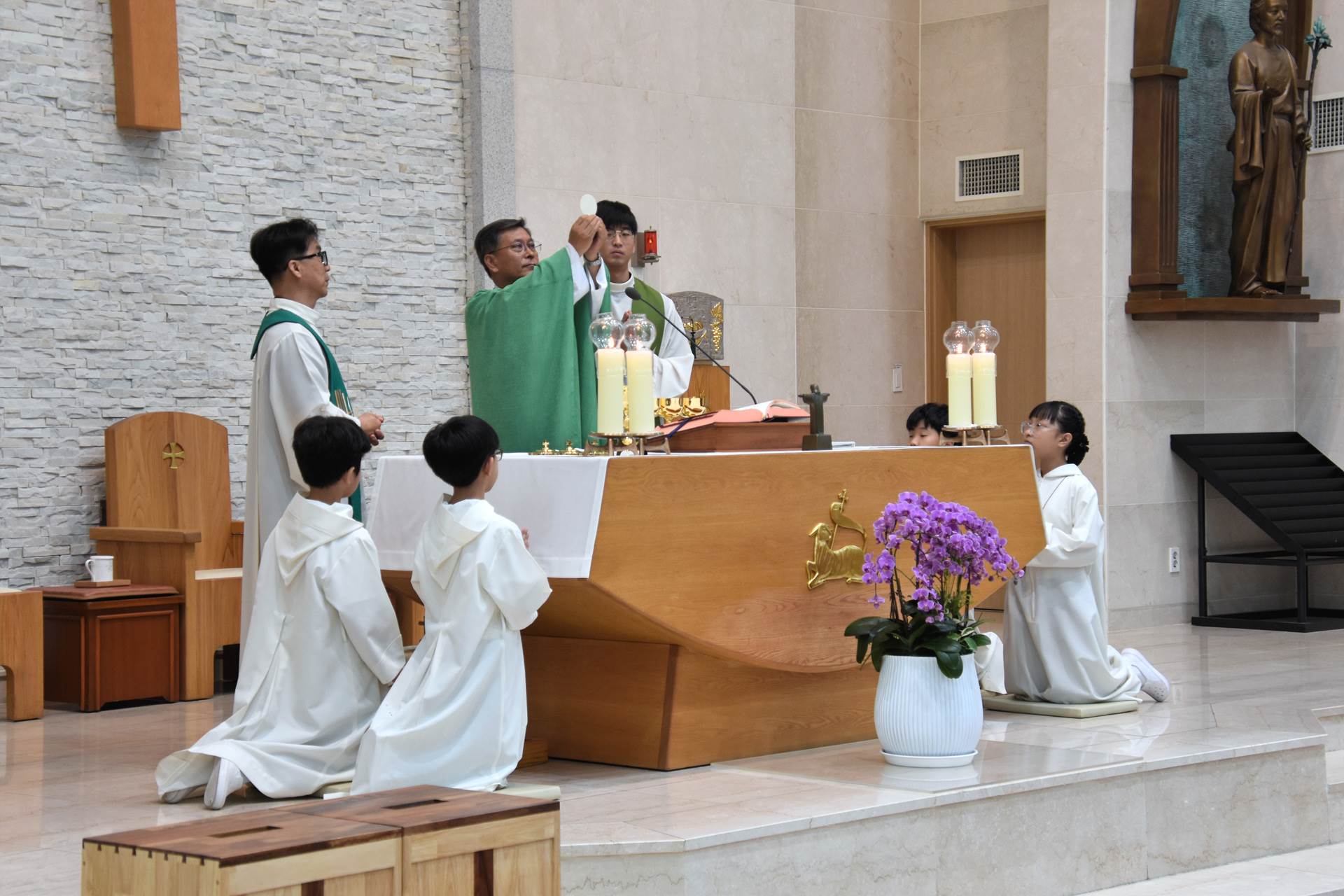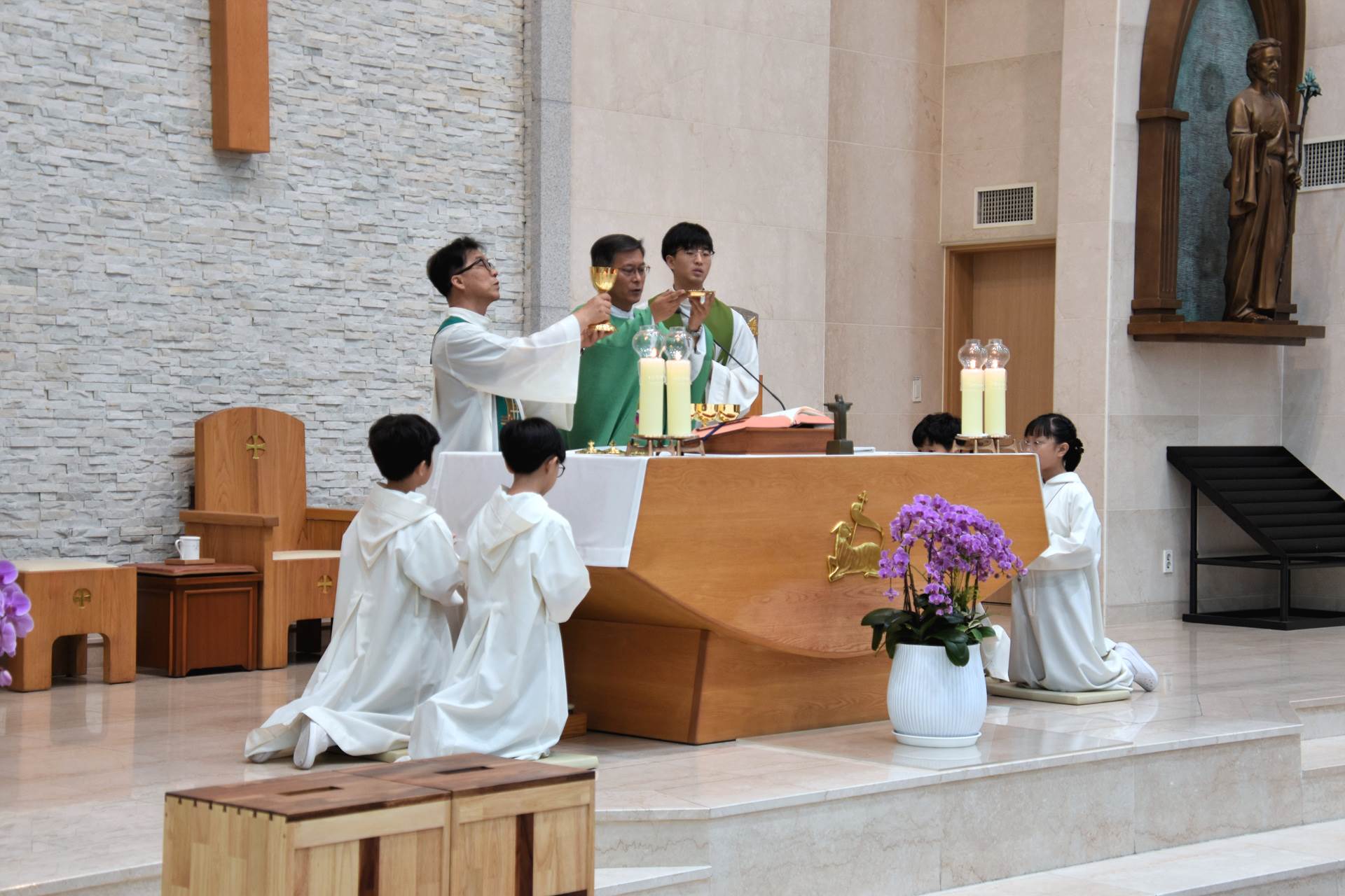 2024년 6월 23일 교중미사 중 최종환 베드로 협력사목 신부님 영명축일 축하식 행사가 진행되었습니다.