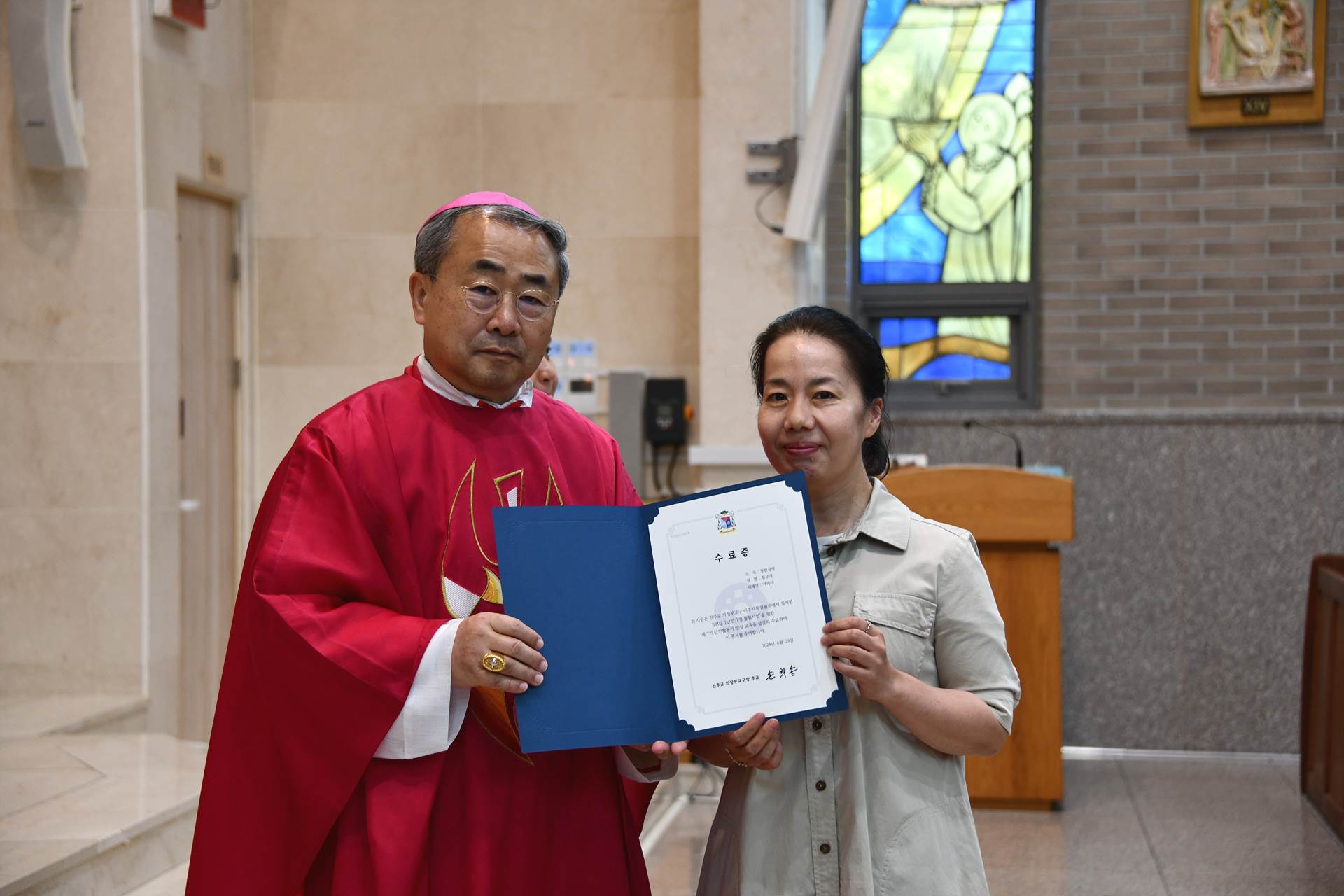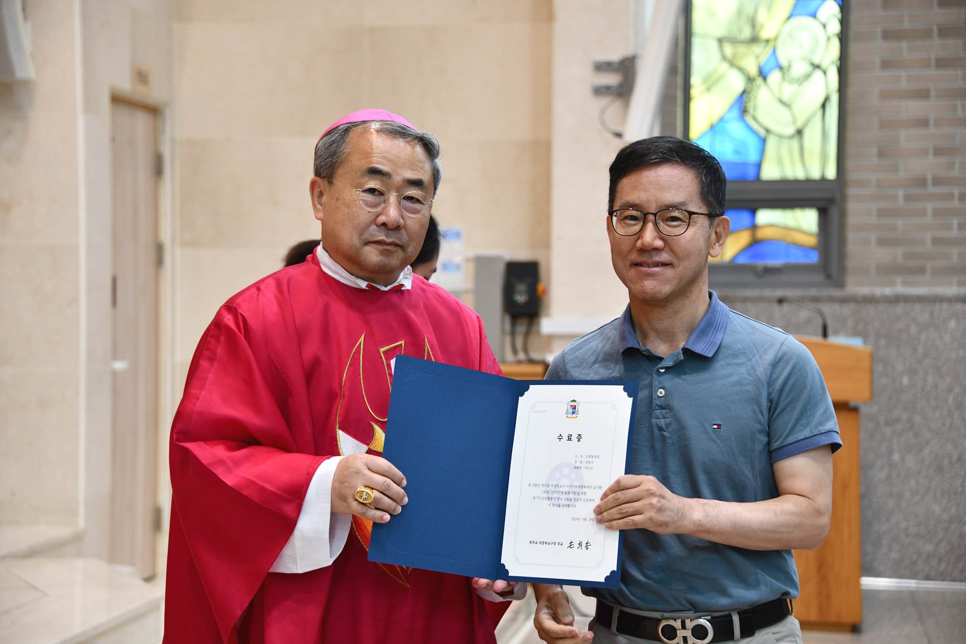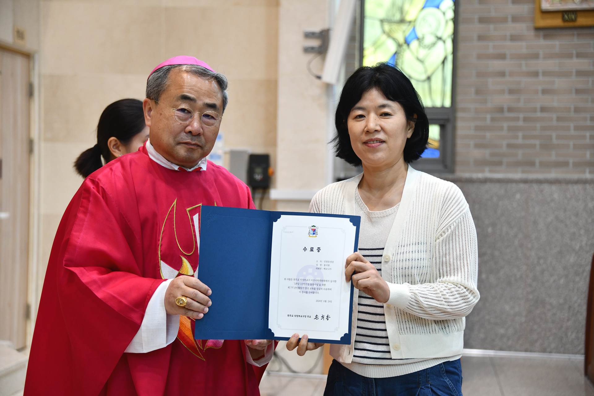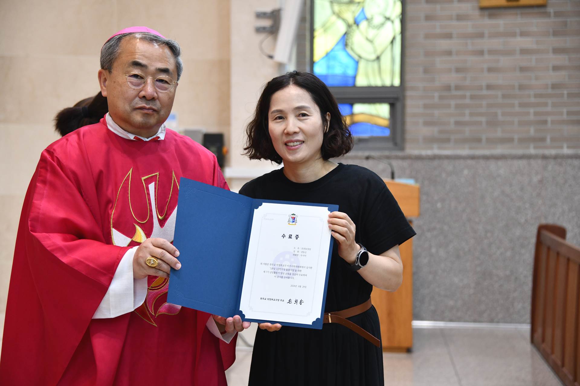 2024년 6월 29일 손희송 베네딕토 주교님 집전으로 11시에 이주사목미사 및 봉사자 수료식이 진행되었습니다.