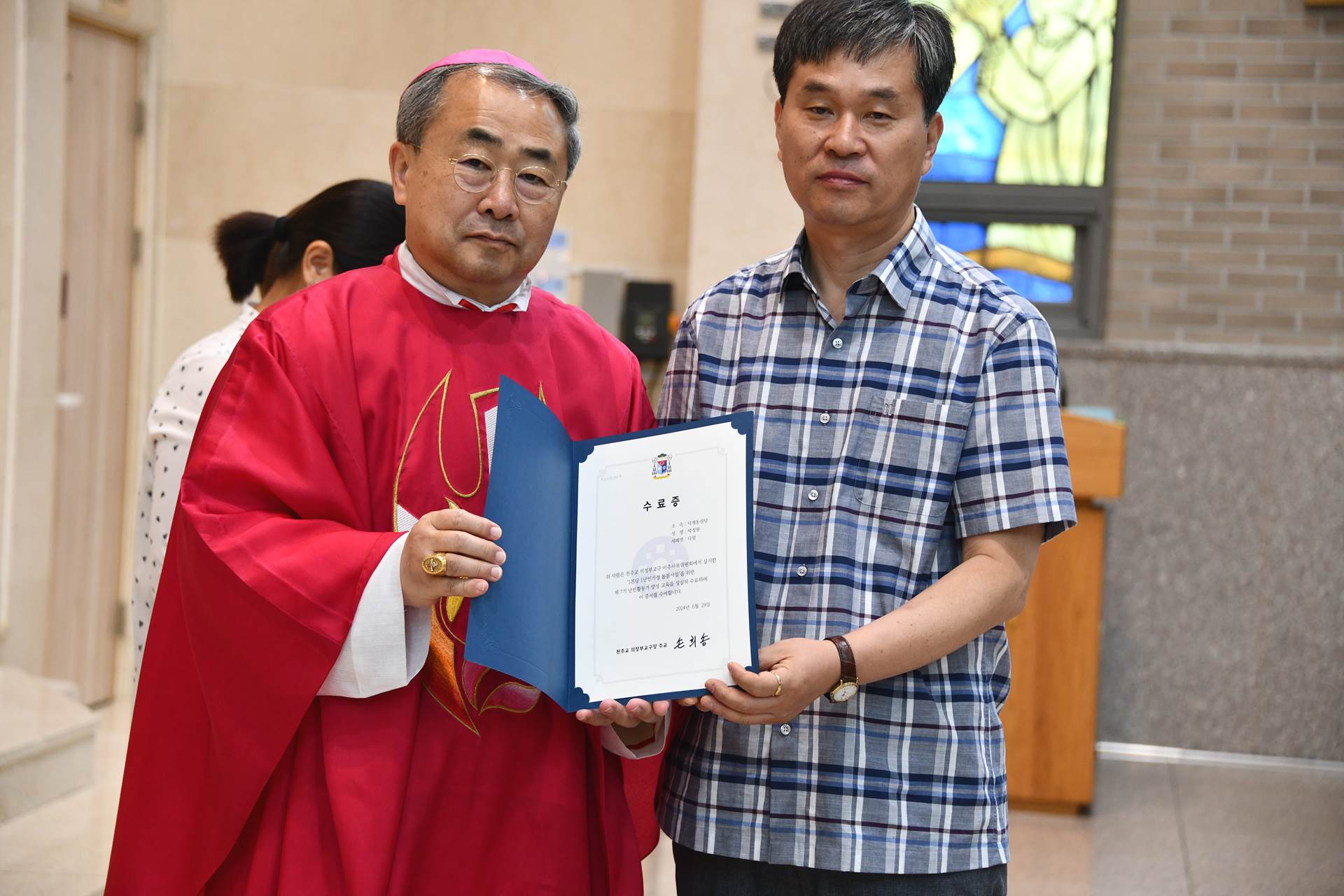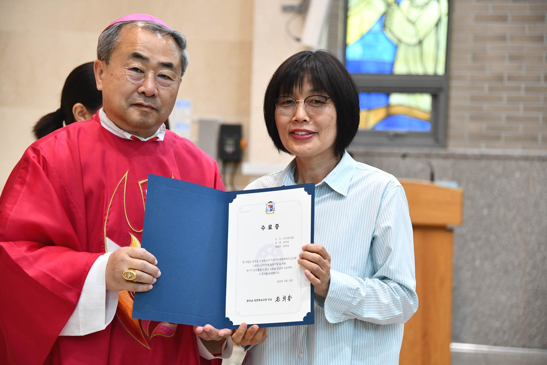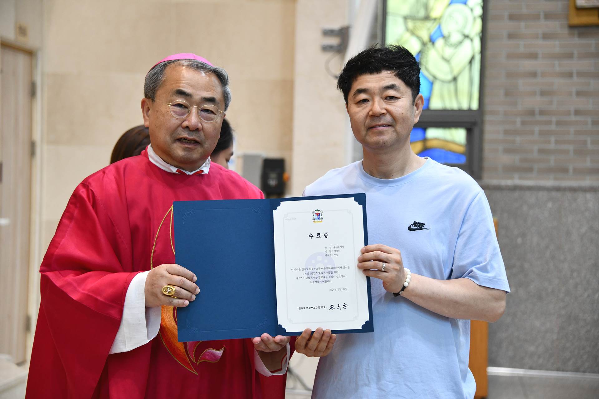 2024년 6월 29일 손희송 베네딕토 주교님 집전으로 11시에 이주사목미사 및 봉사자 수료식이 진행되었습니다.
