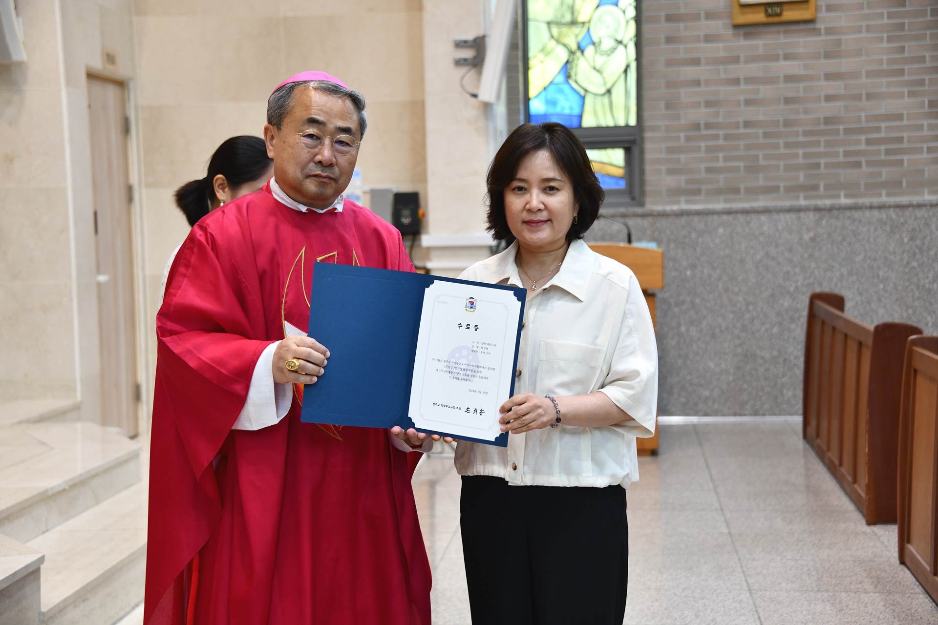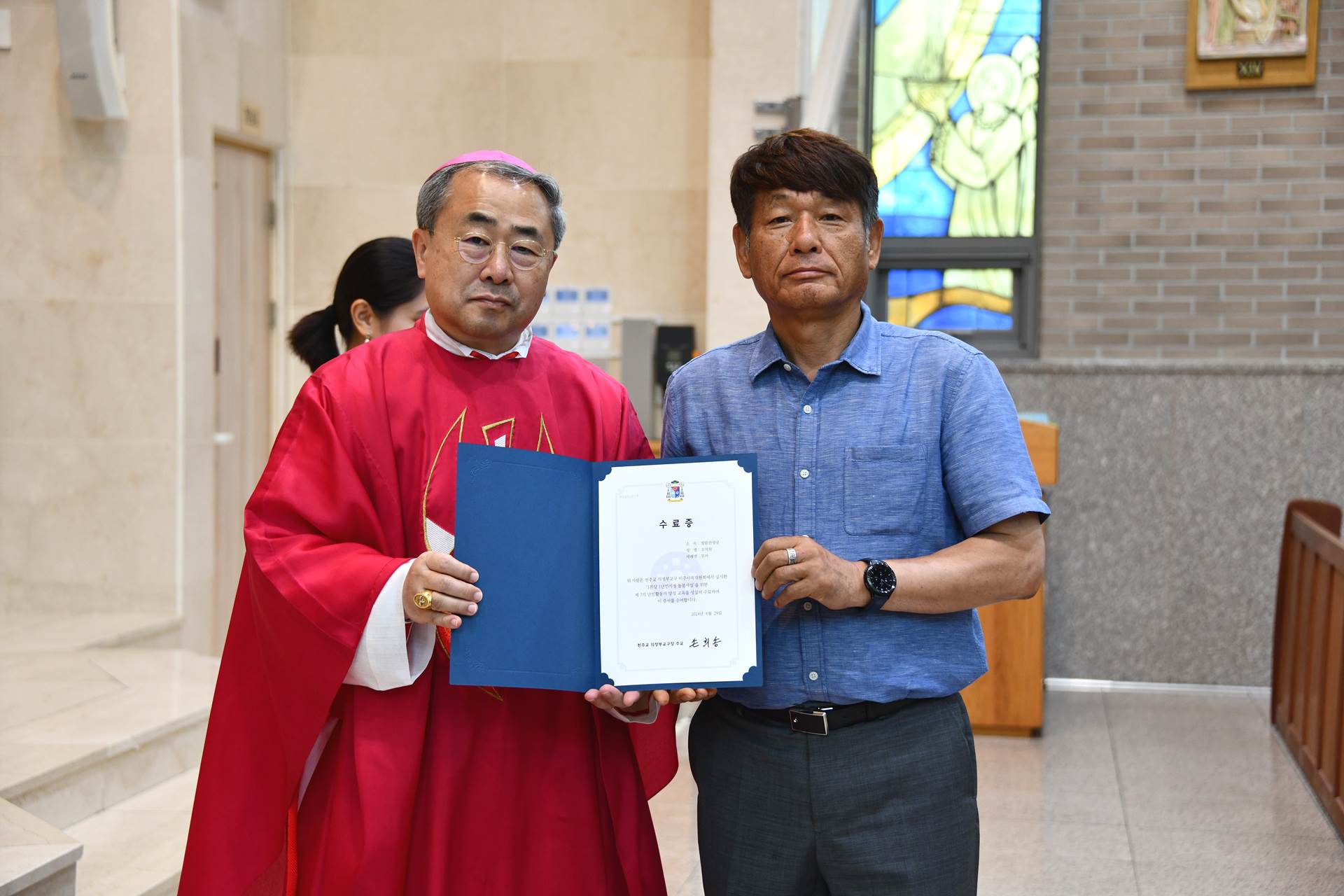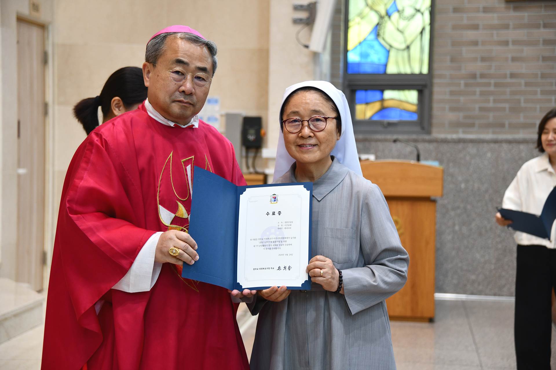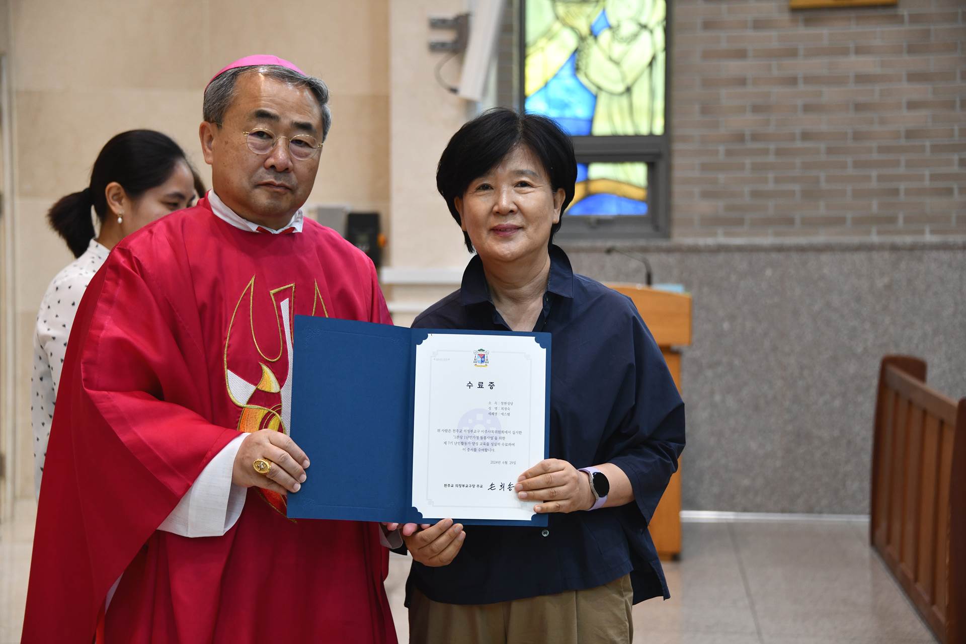 2024년 6월 29일 손희송 베네딕토 주교님 집전으로 11시에 이주사목미사 및 봉사자 수료식이 진행되었습니다.