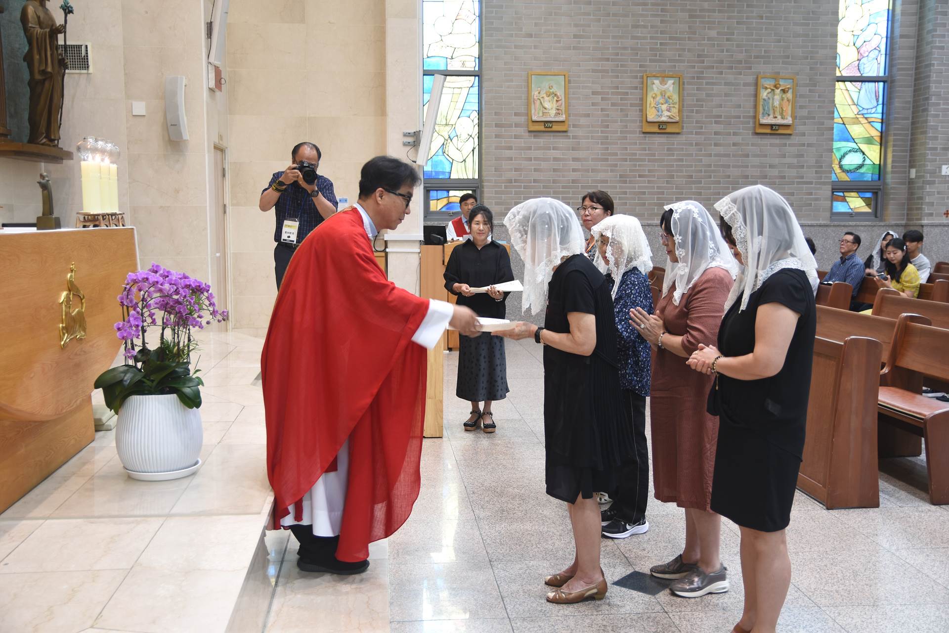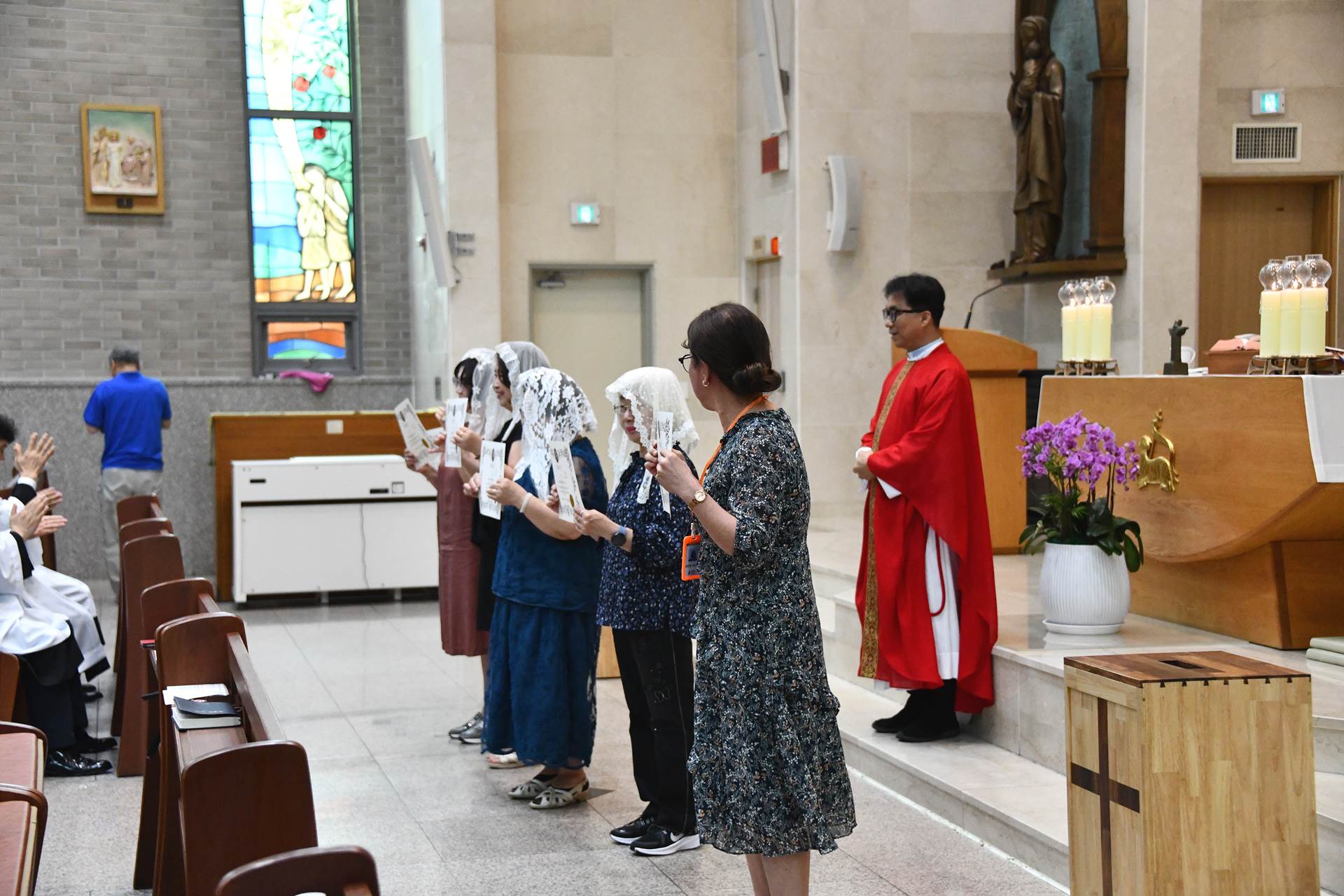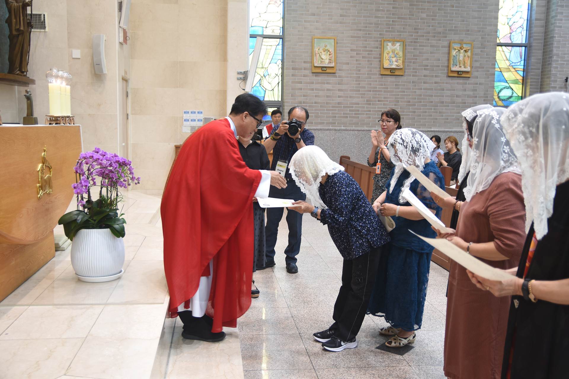 2024년 7월 7일 교중미사 중 여성 구, 반장 축복장 수여식이 진행되었습니다.
