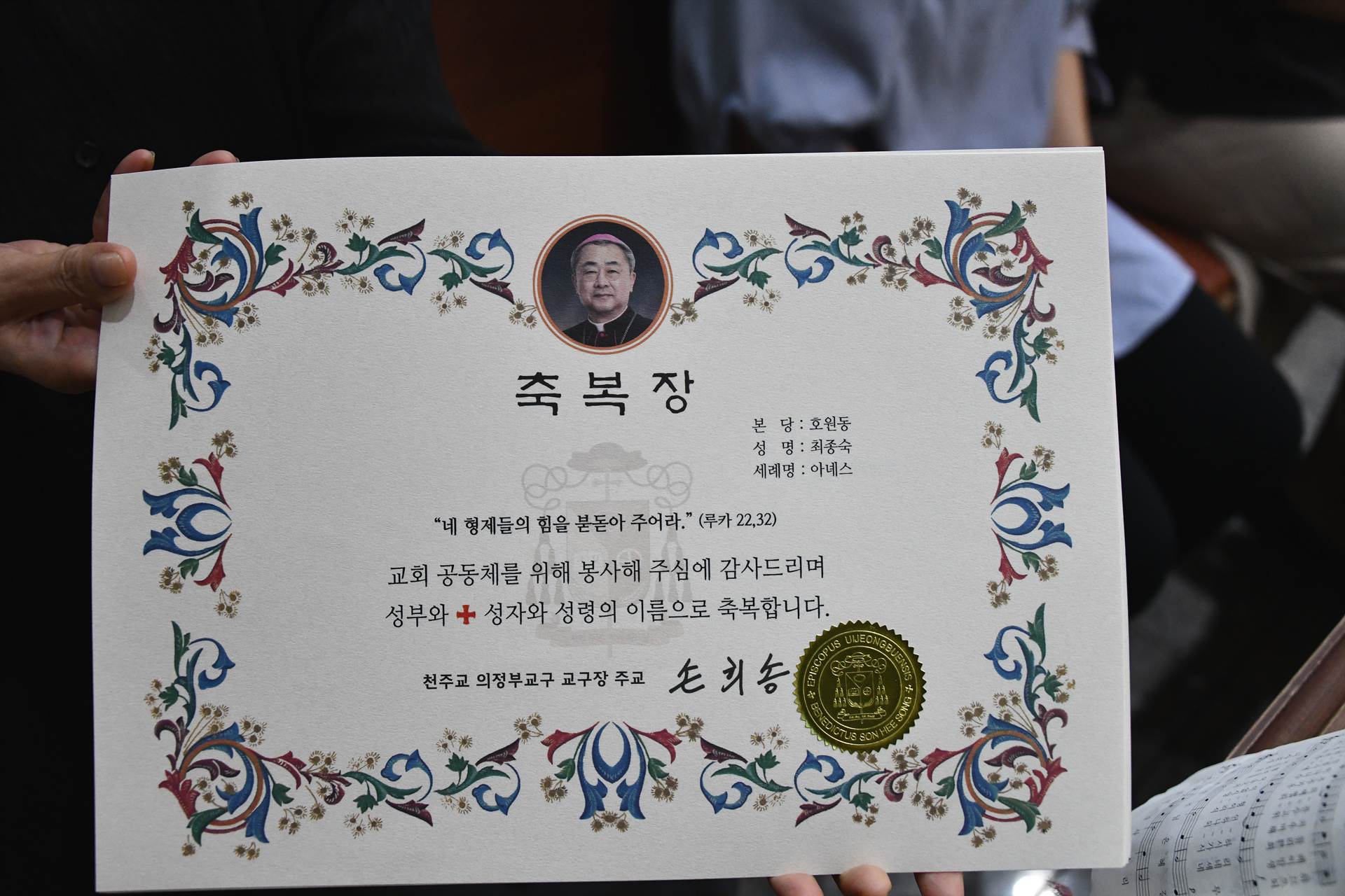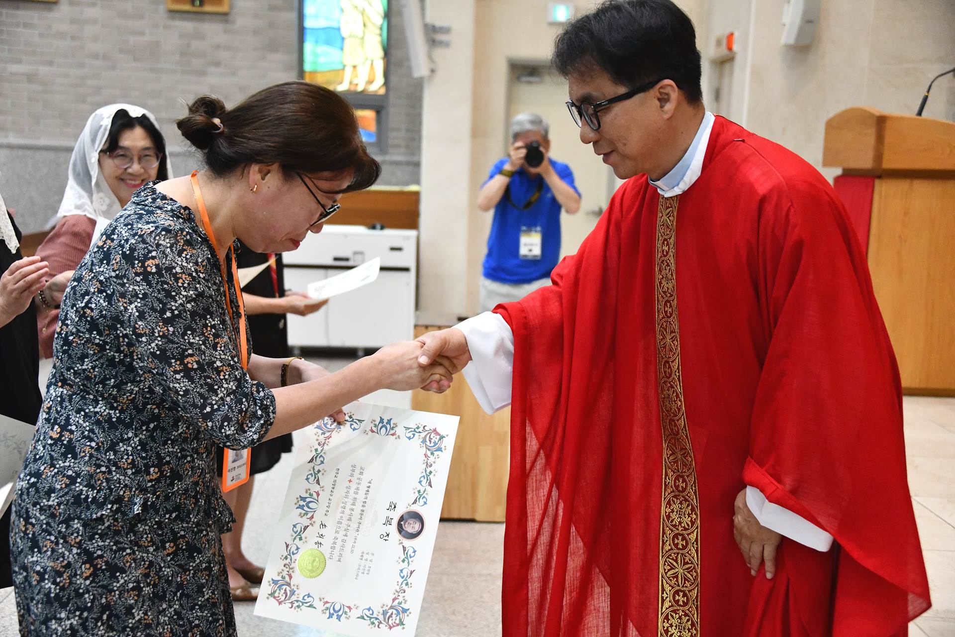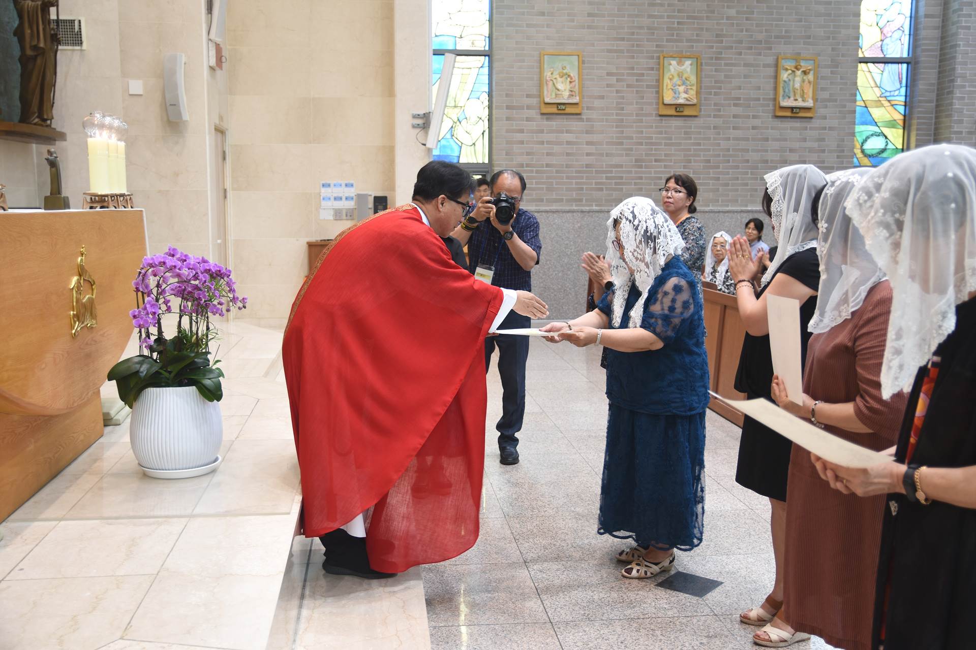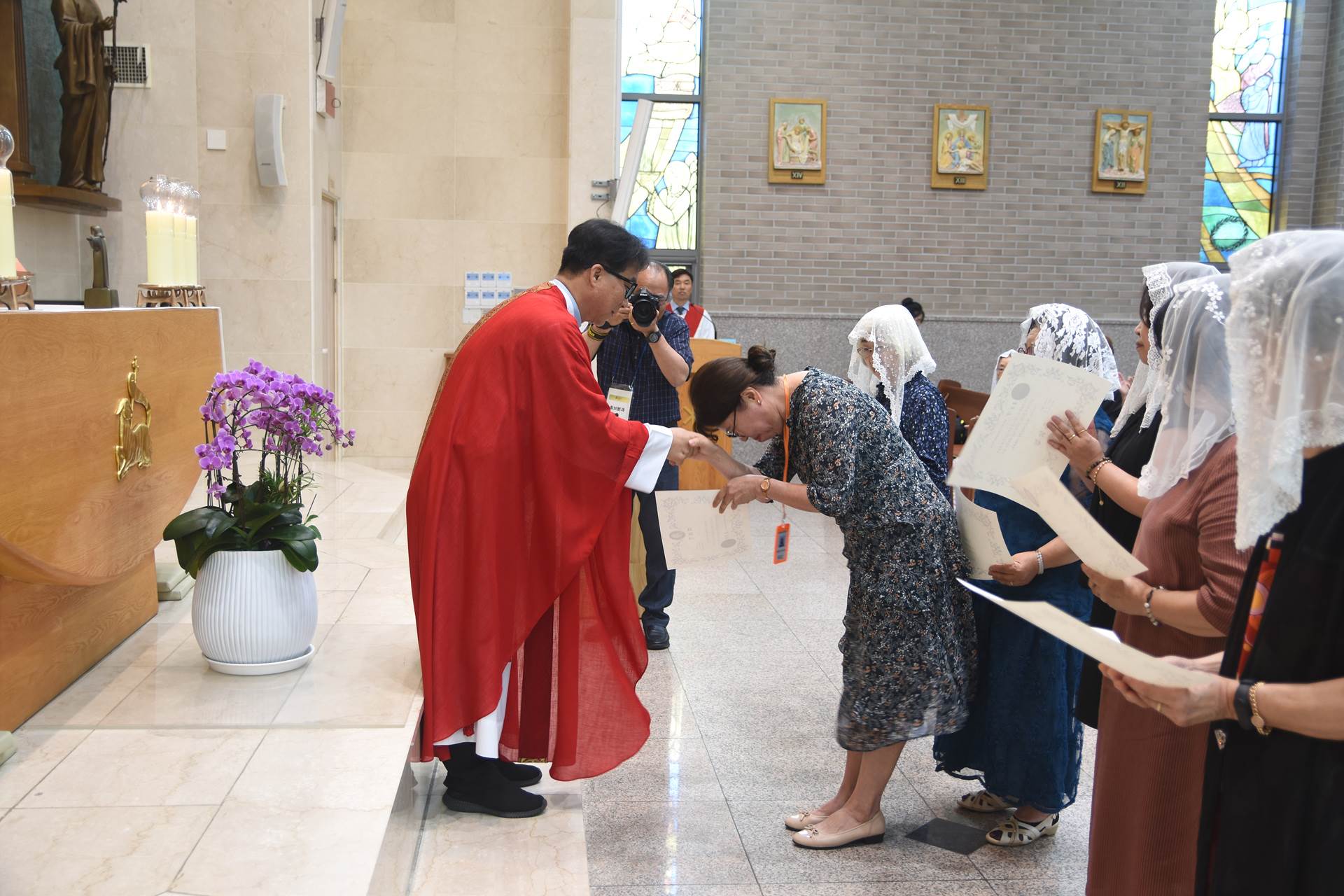 2024년 7월 7일 교중미사 중 여성 구, 반장 축복장 수여식이 진행되었습니다.