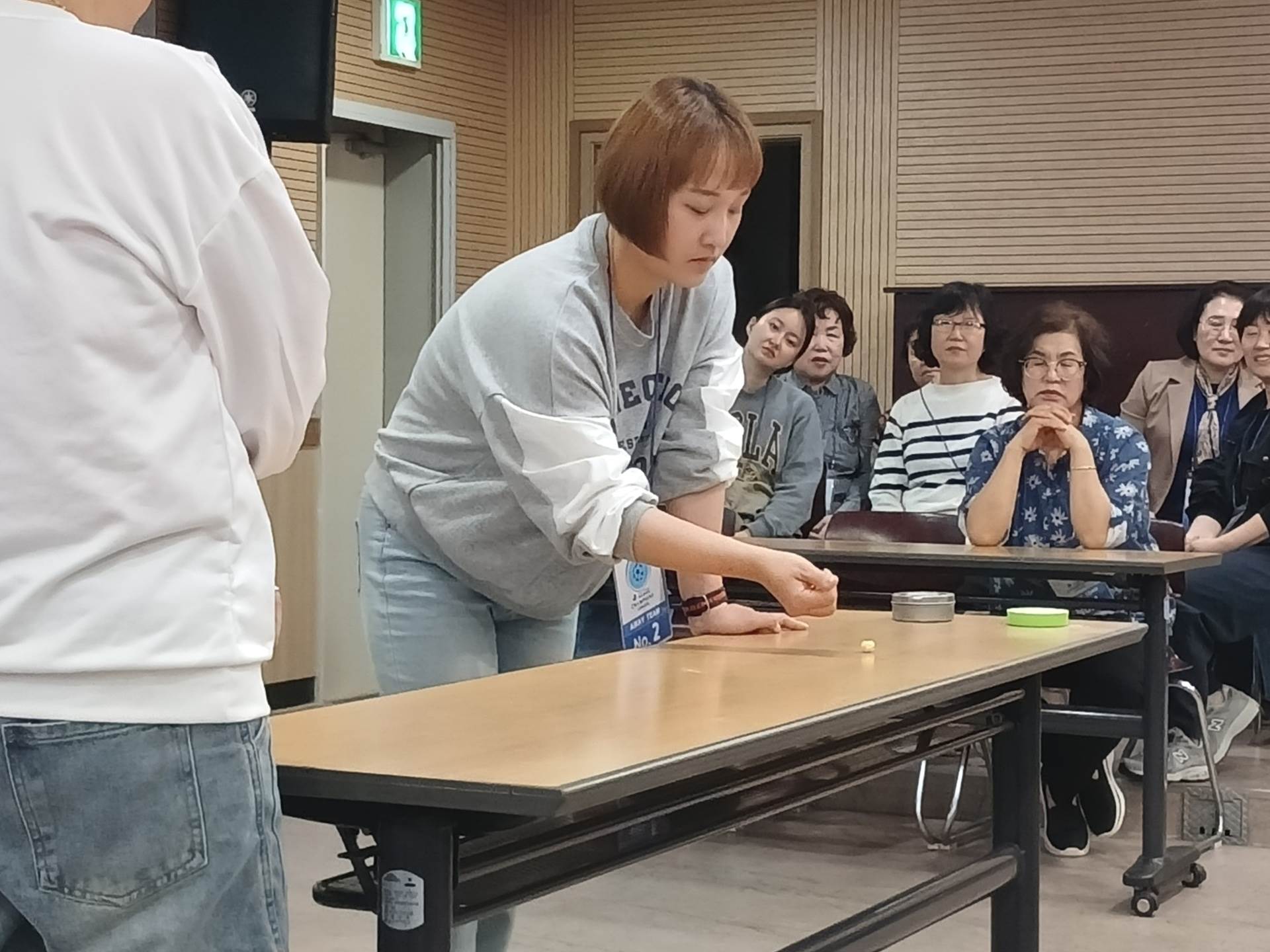 2025년 4월 20일 진행된 호원동 챔피언스리그 공기놀이 예선경기 중 1구역 vs 11구역의 경기 모습입니다.