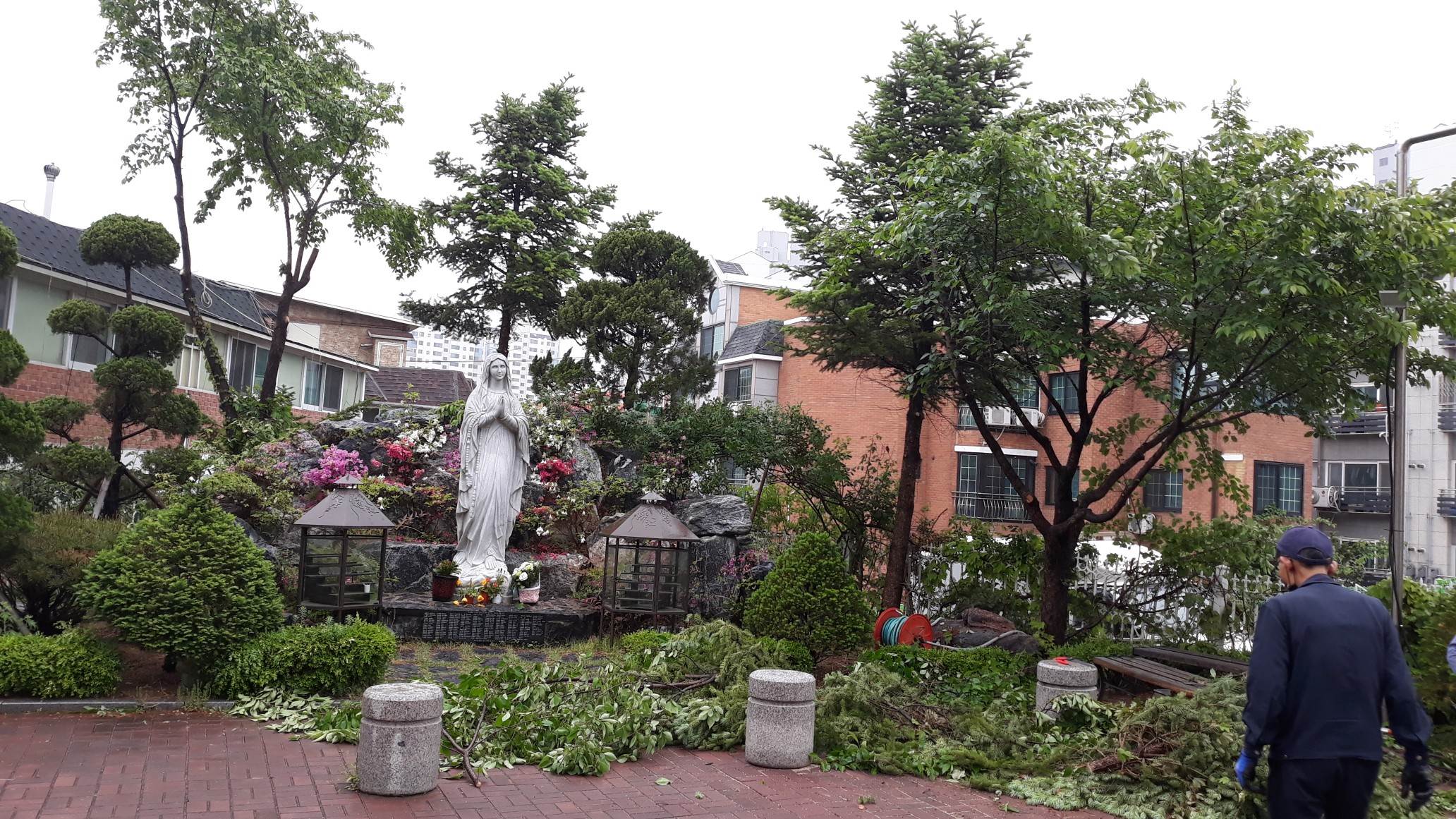 성모님상 주변 나무 정리