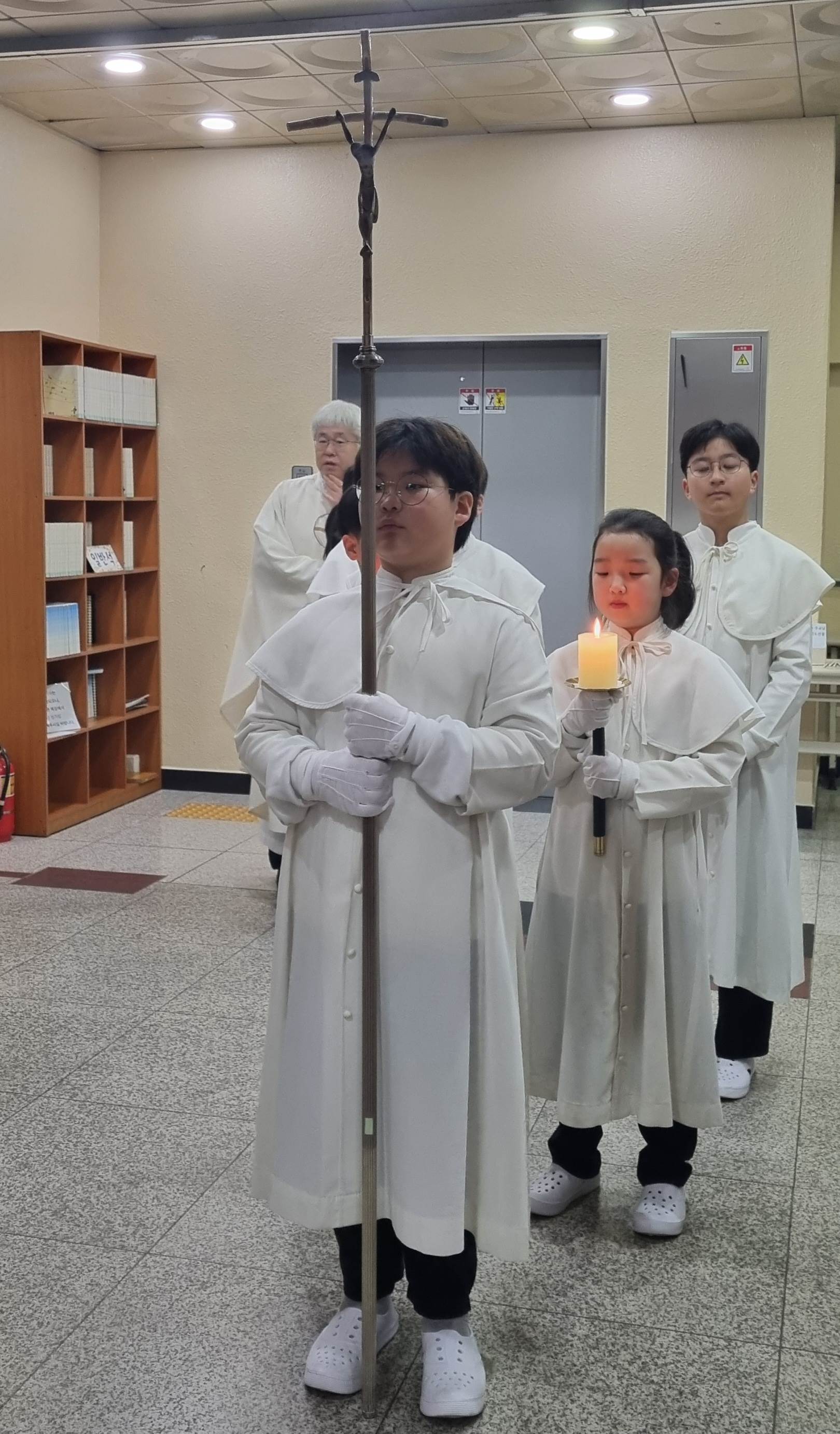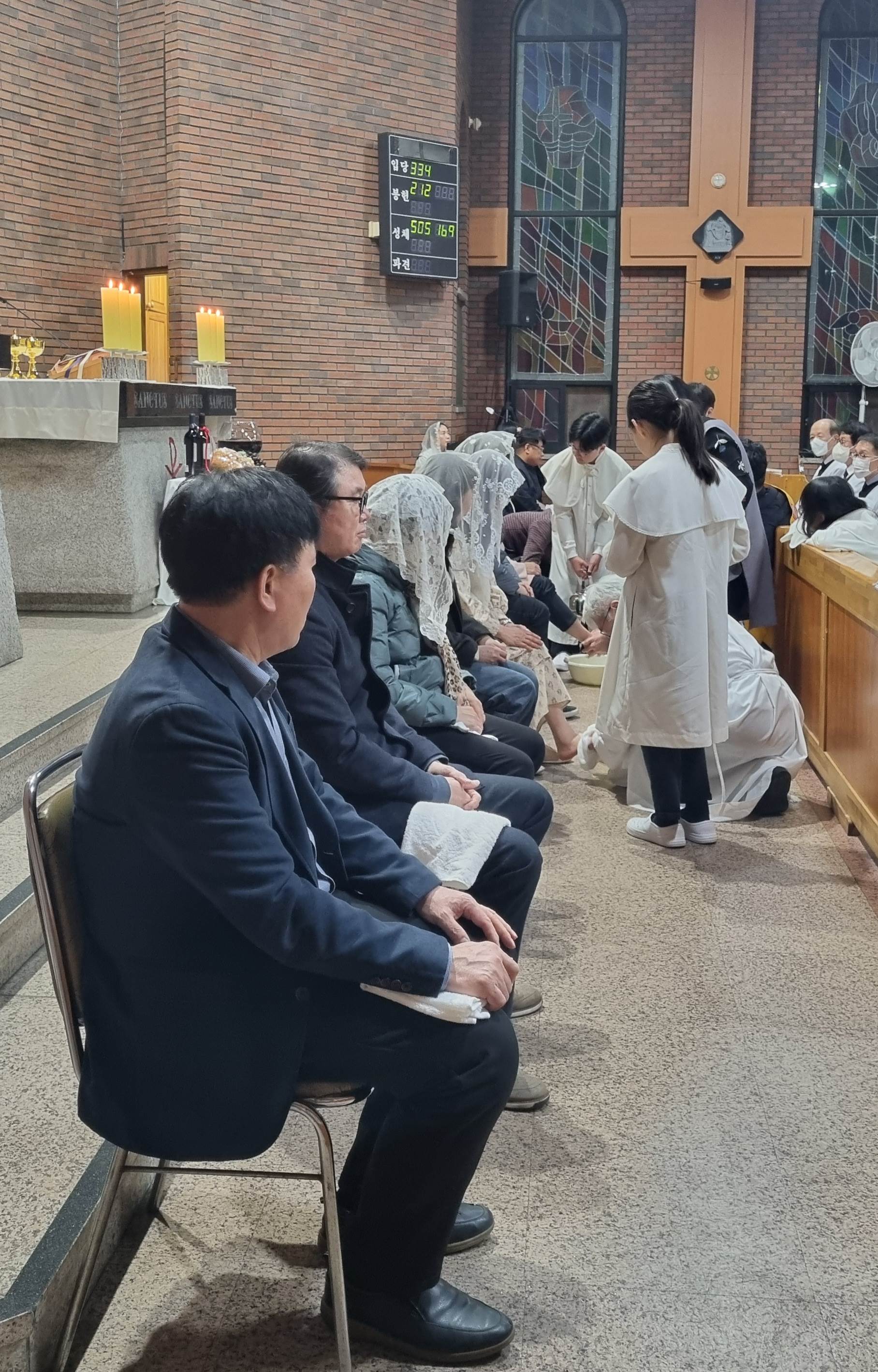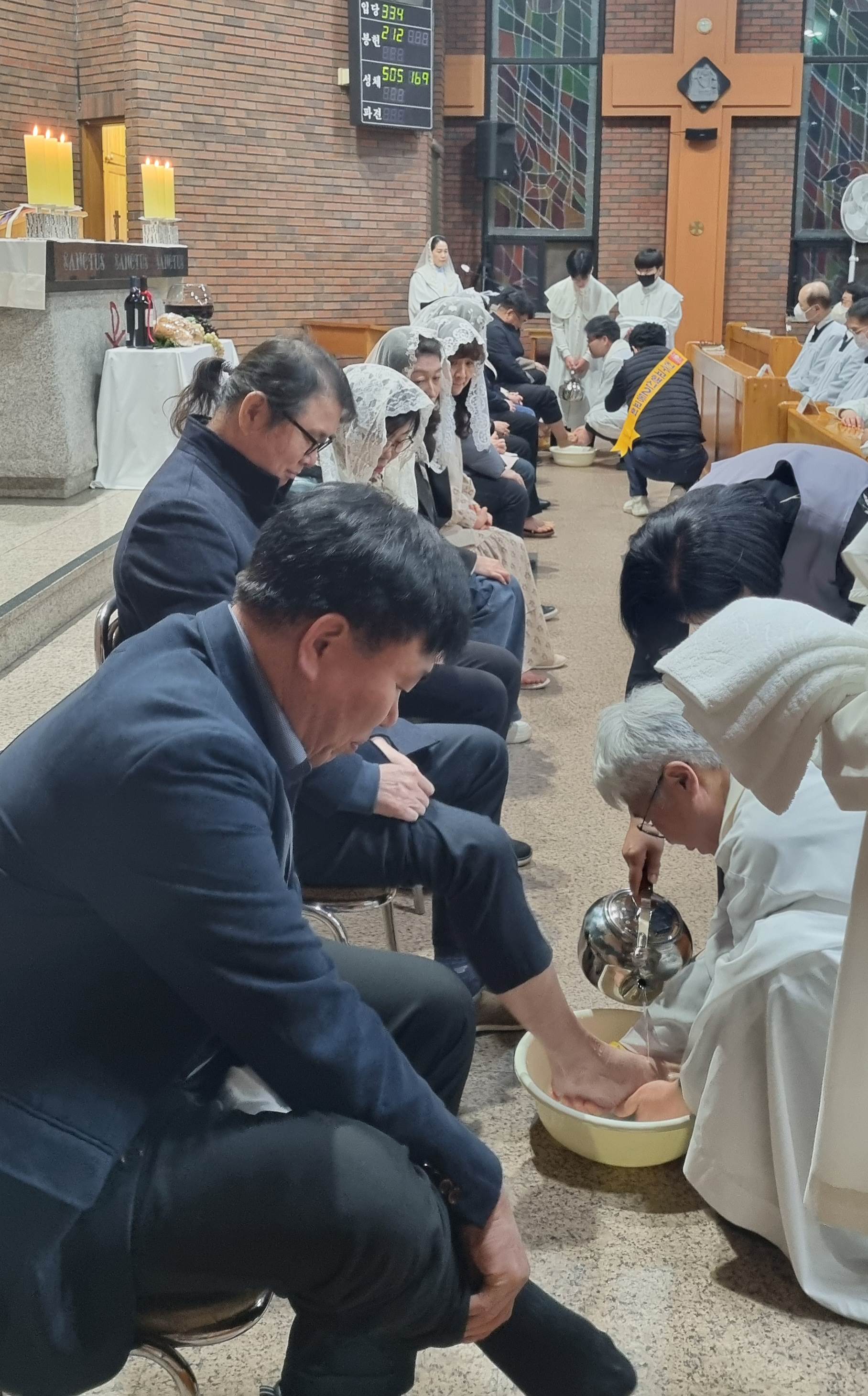 발 씻김 예식에 참여하며, 서로 사랑하고 봉사하며 살아가기로 다짐합시다.