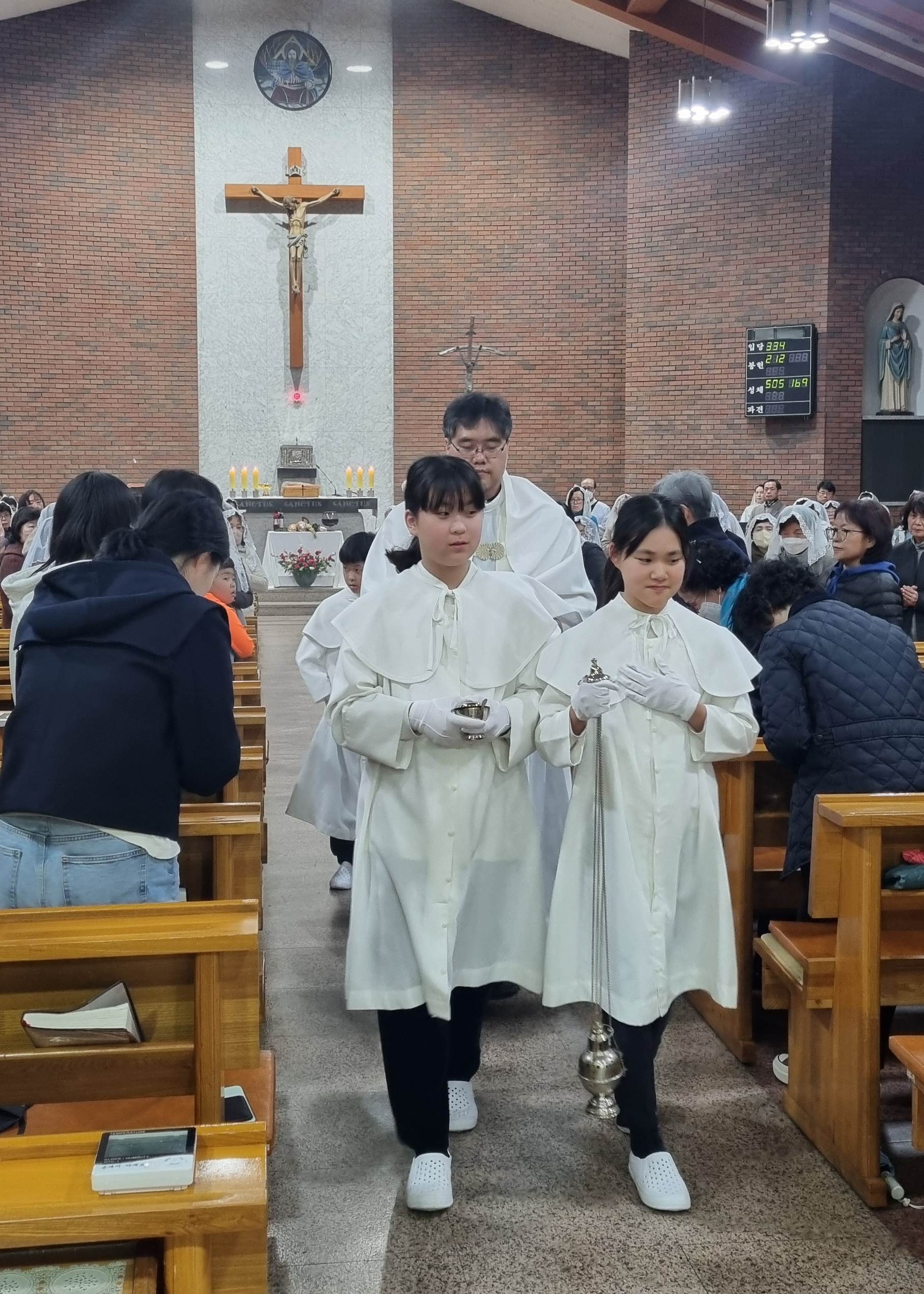 발 씻김 예식에 참여하며, 서로 사랑하고 봉사하며 살아가기로 다짐합시다.