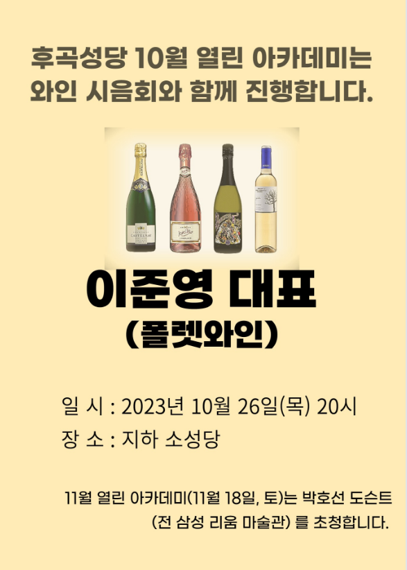 * 10/26 후곡성당 열린 아카데미 (10월) - 이준영 대표 (폴렛와인)