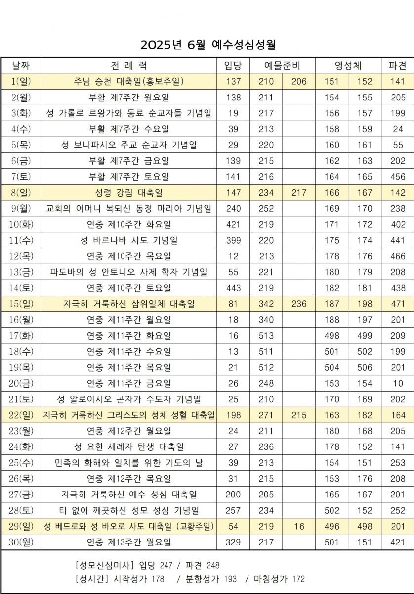 2025년 6월 성가표