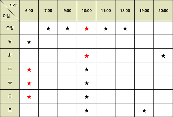 -수, 목, 금 요일 06시